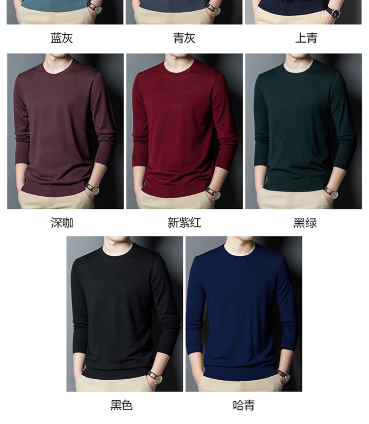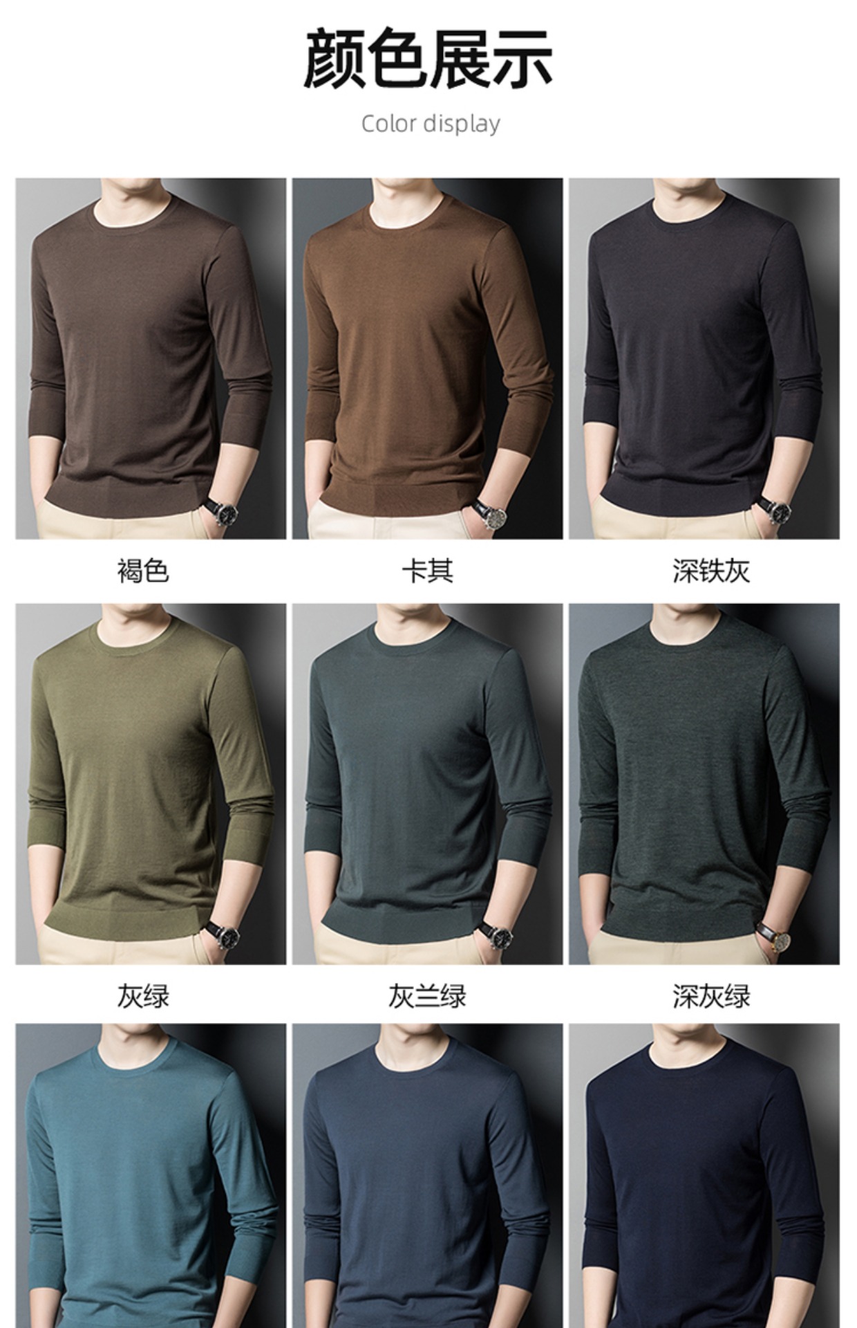 60支精纺纯羊毛衫男长袖春秋高端针织衫贴身细软轻薄毛衣T恤圆领
