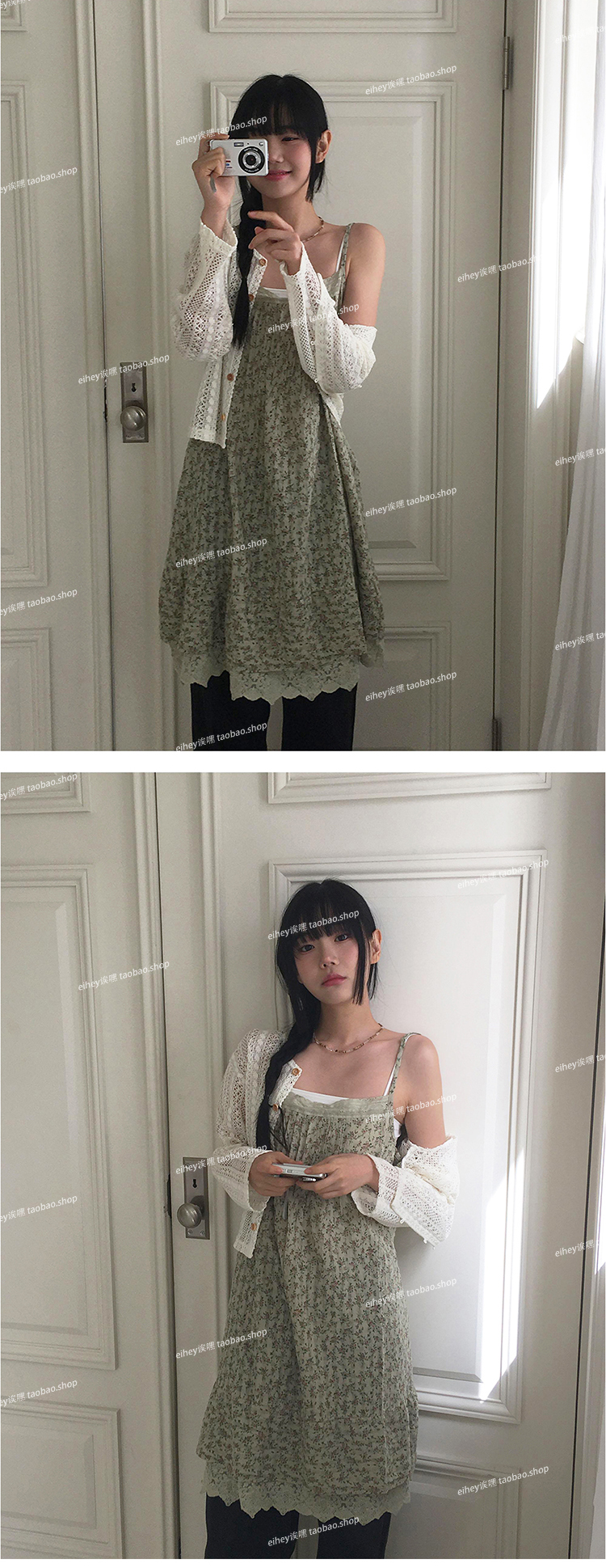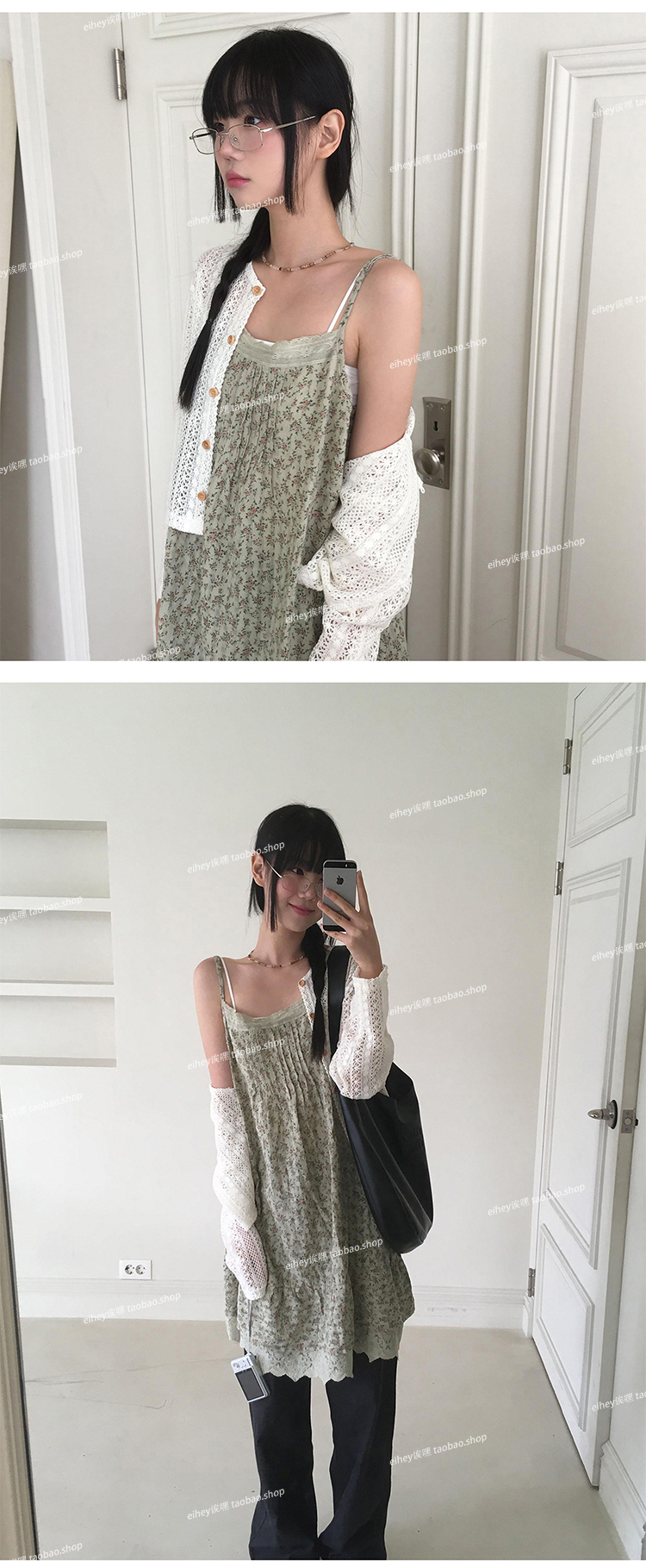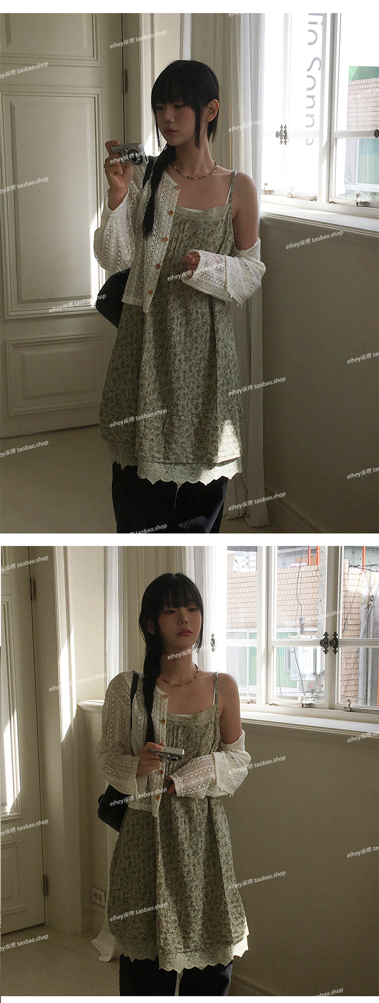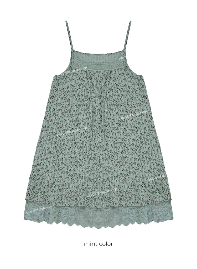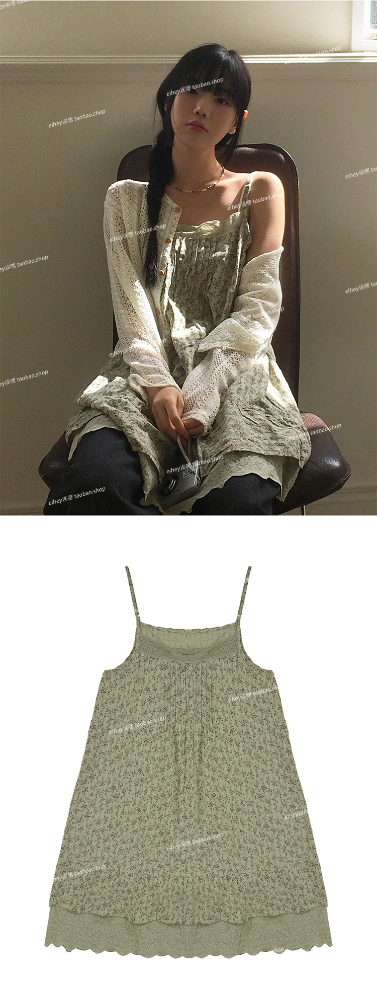 eihey诶嘿杨超越同款甜美森系碎花吊带裙宽松百搭蕾丝花边连衣裙