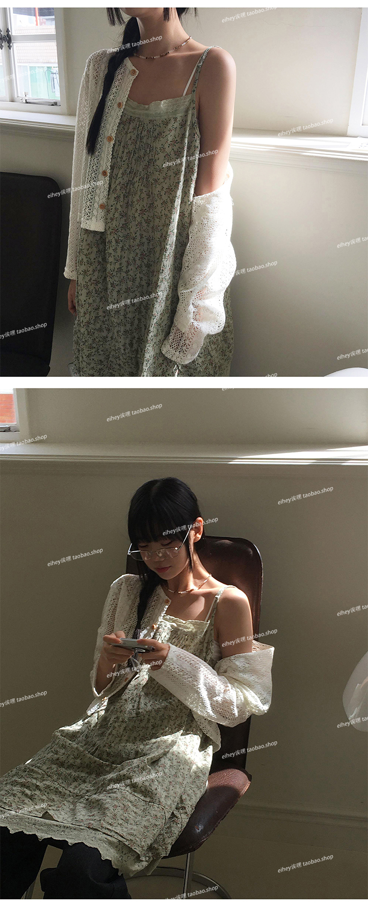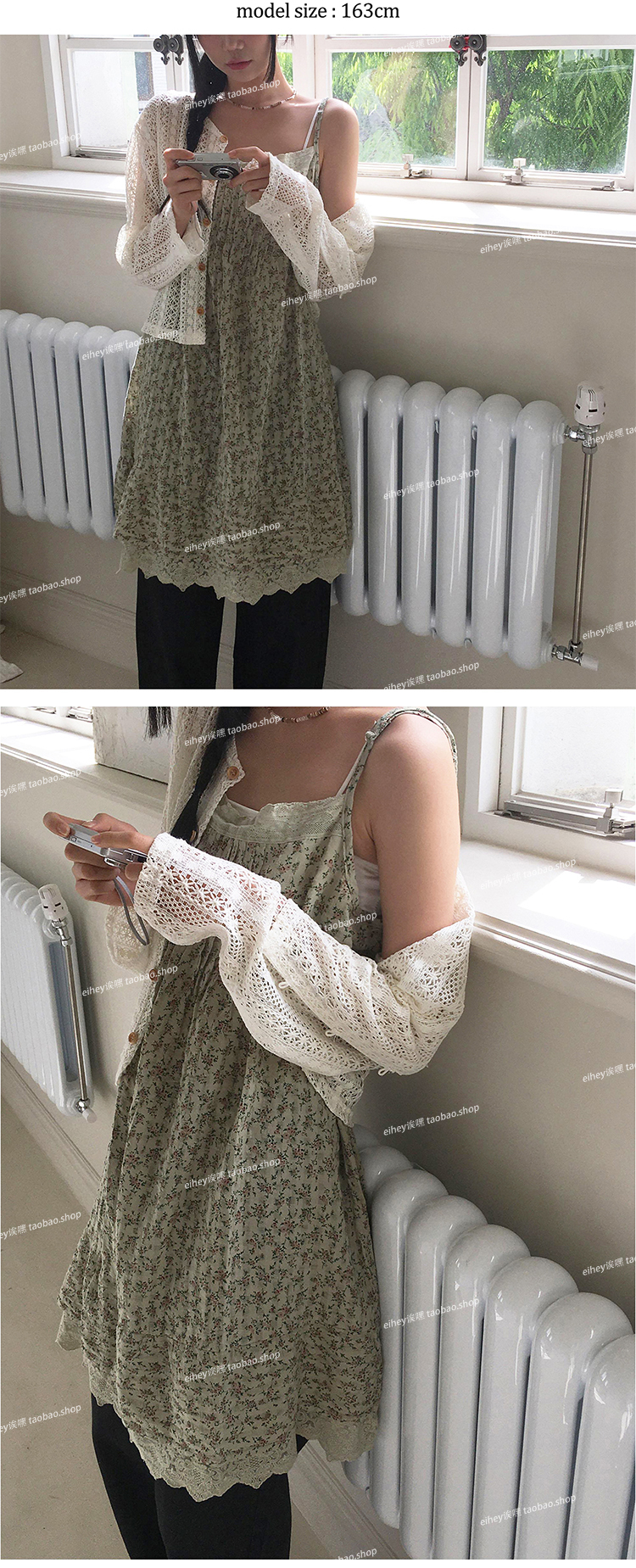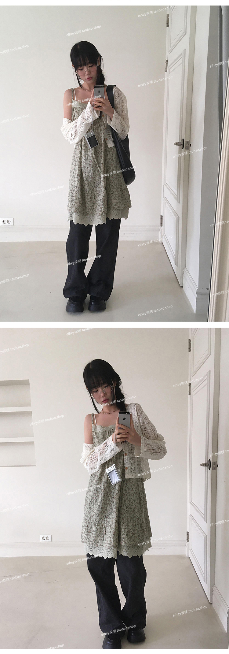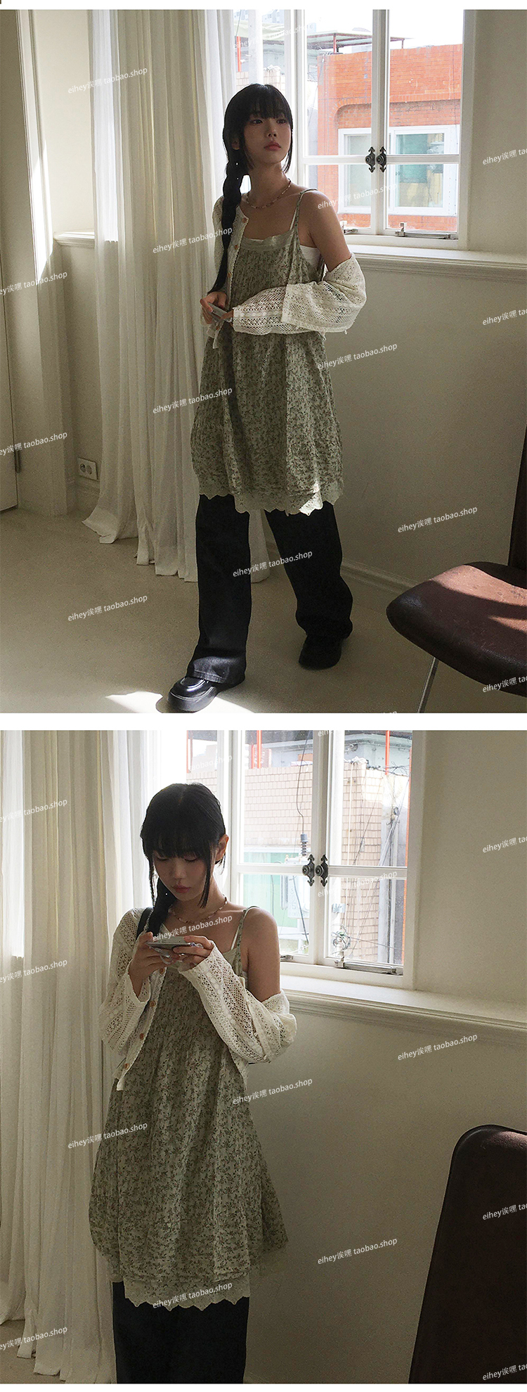 eihey诶嘿杨超越同款甜美森系碎花吊带裙宽松百搭蕾丝花边连衣裙