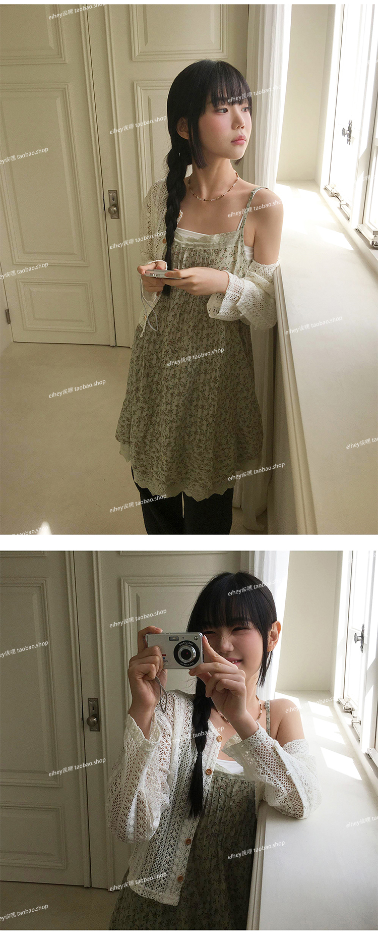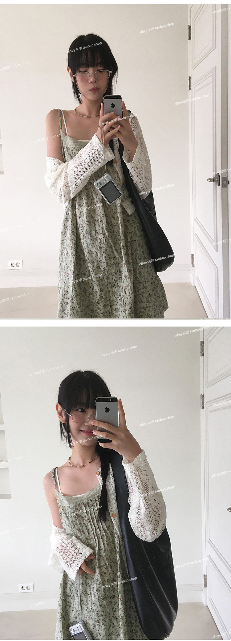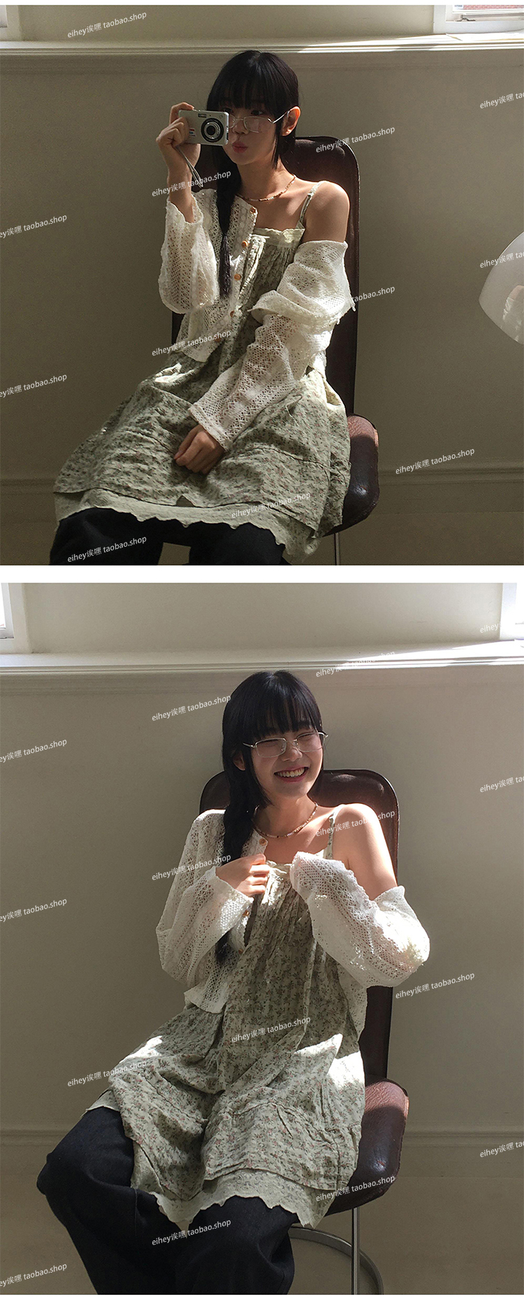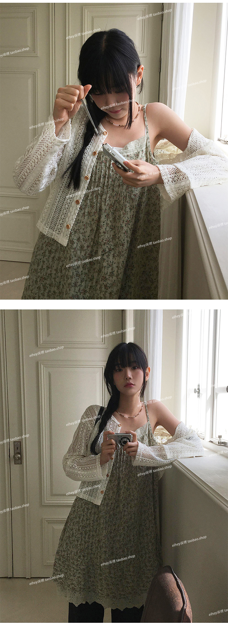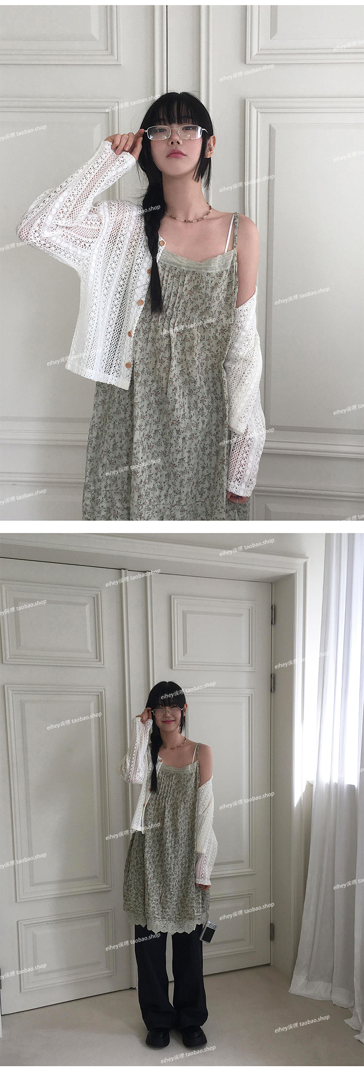 eihey诶嘿杨超越同款甜美森系碎花吊带裙宽松百搭蕾丝花边连衣裙