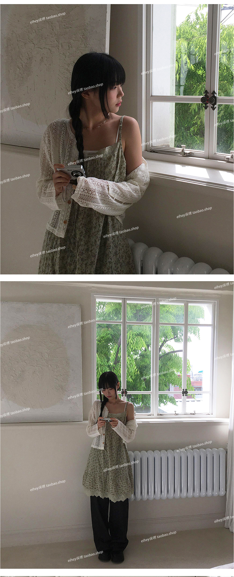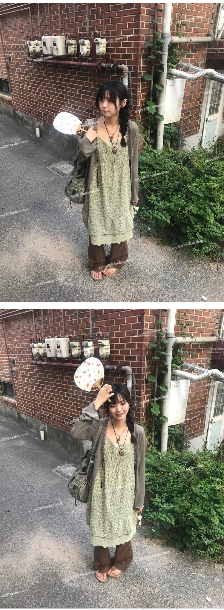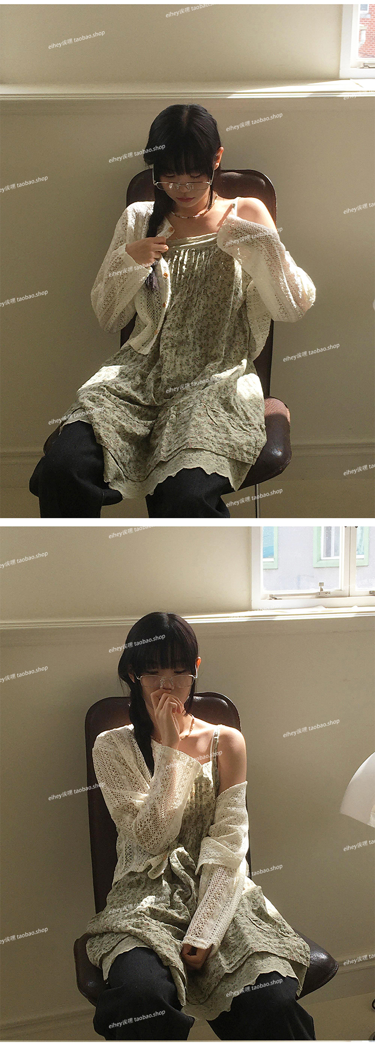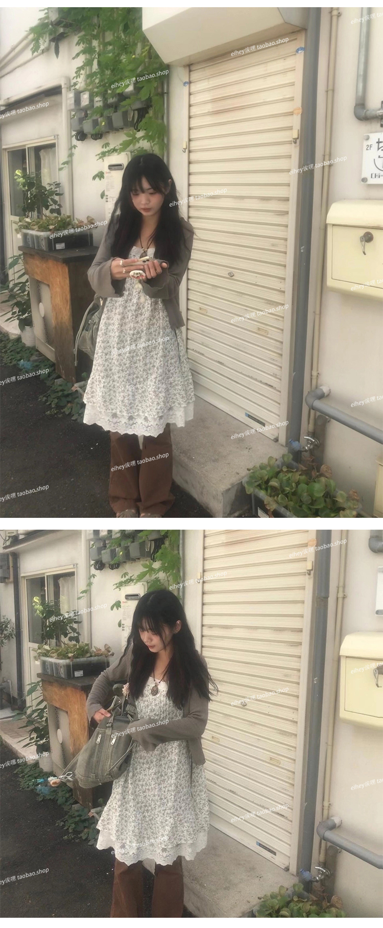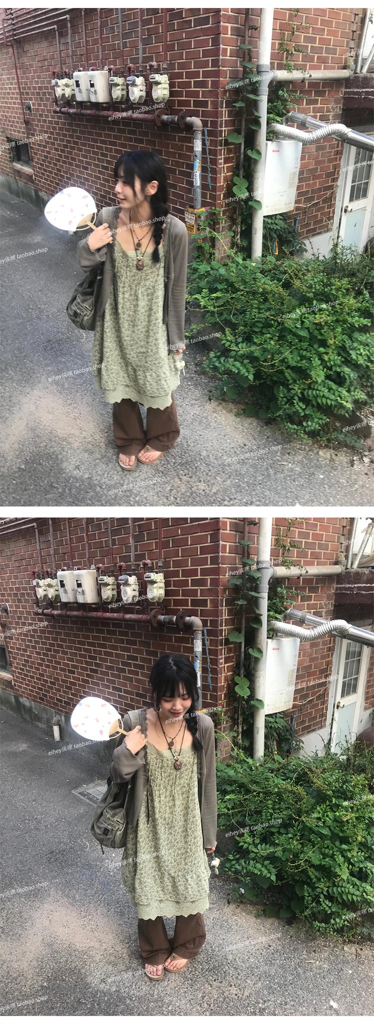 eihey诶嘿杨超越同款甜美森系碎花吊带裙宽松百搭蕾丝花边连衣裙