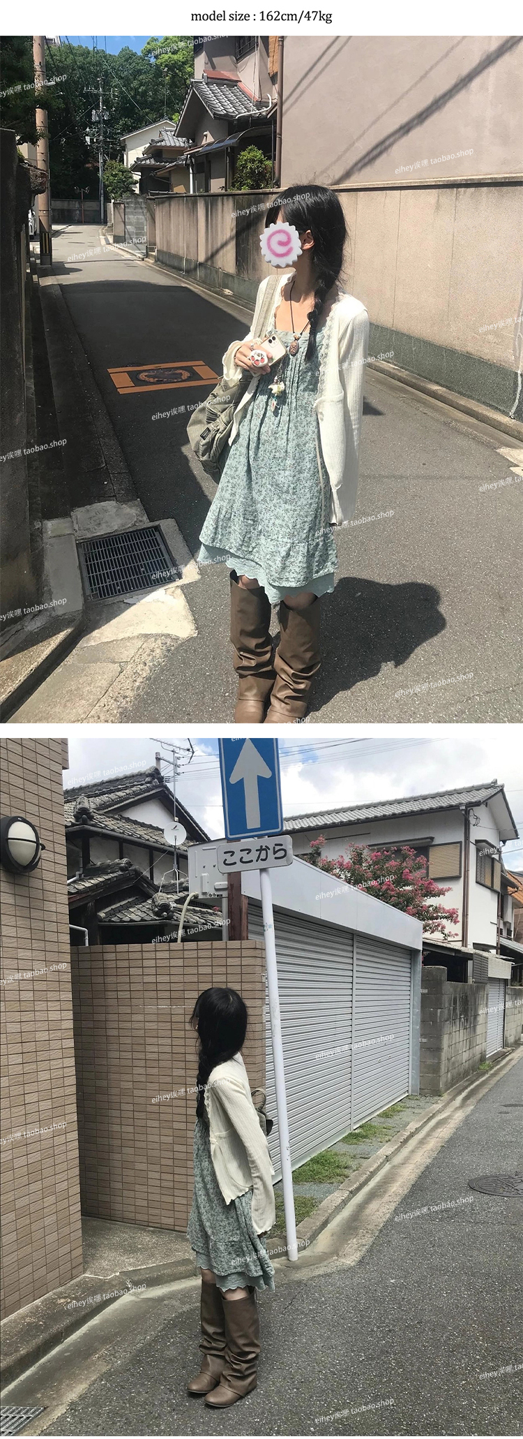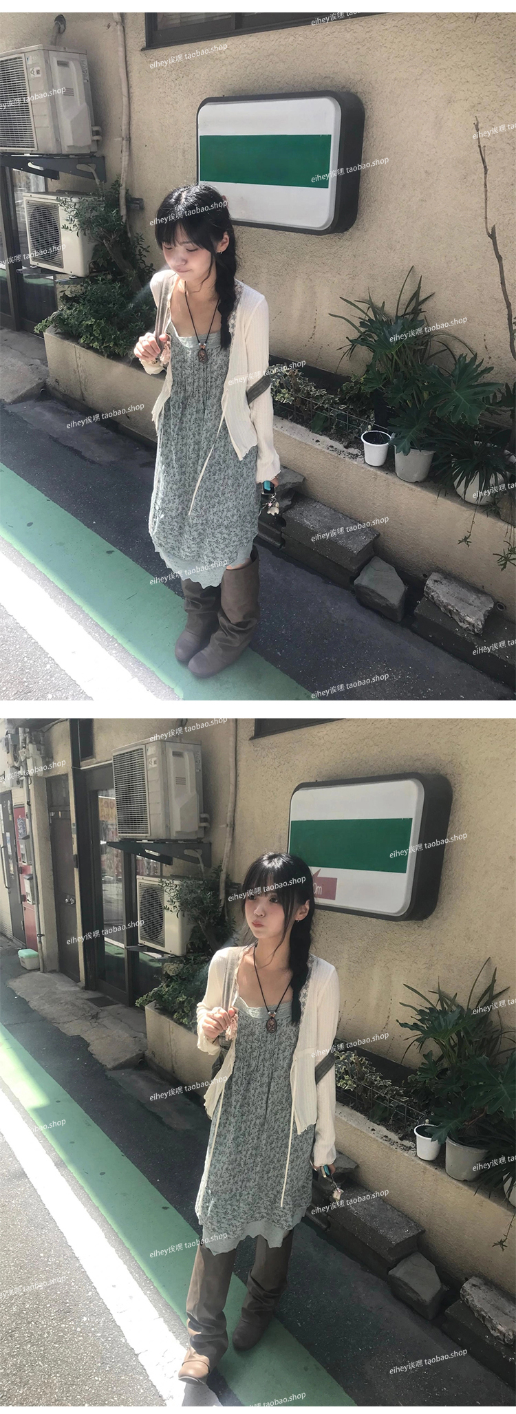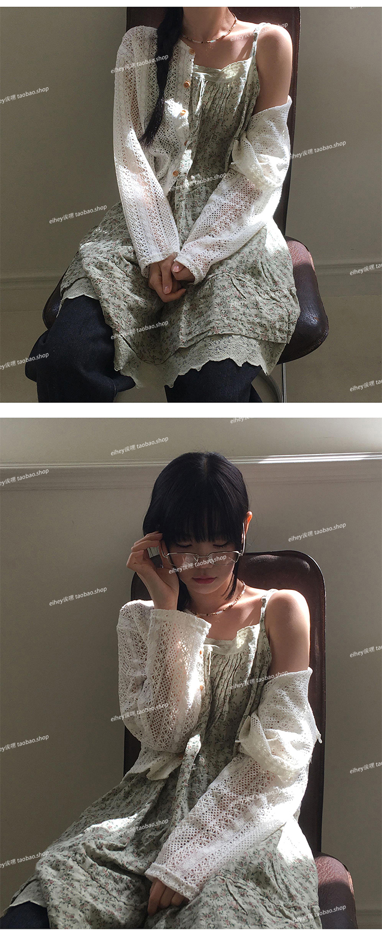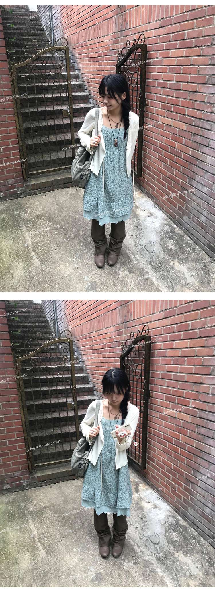 eihey诶嘿杨超越同款甜美森系碎花吊带裙宽松百搭蕾丝花边连衣裙