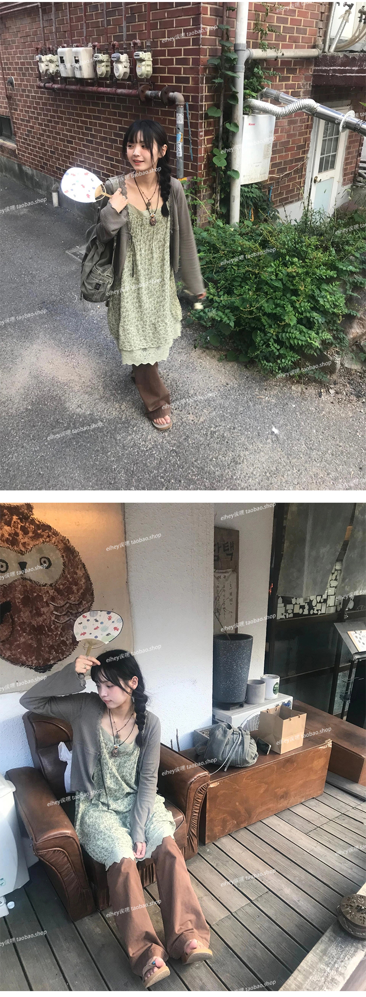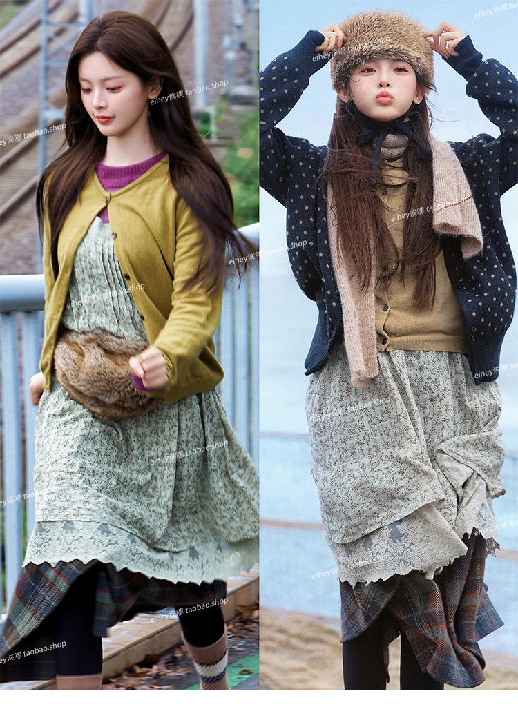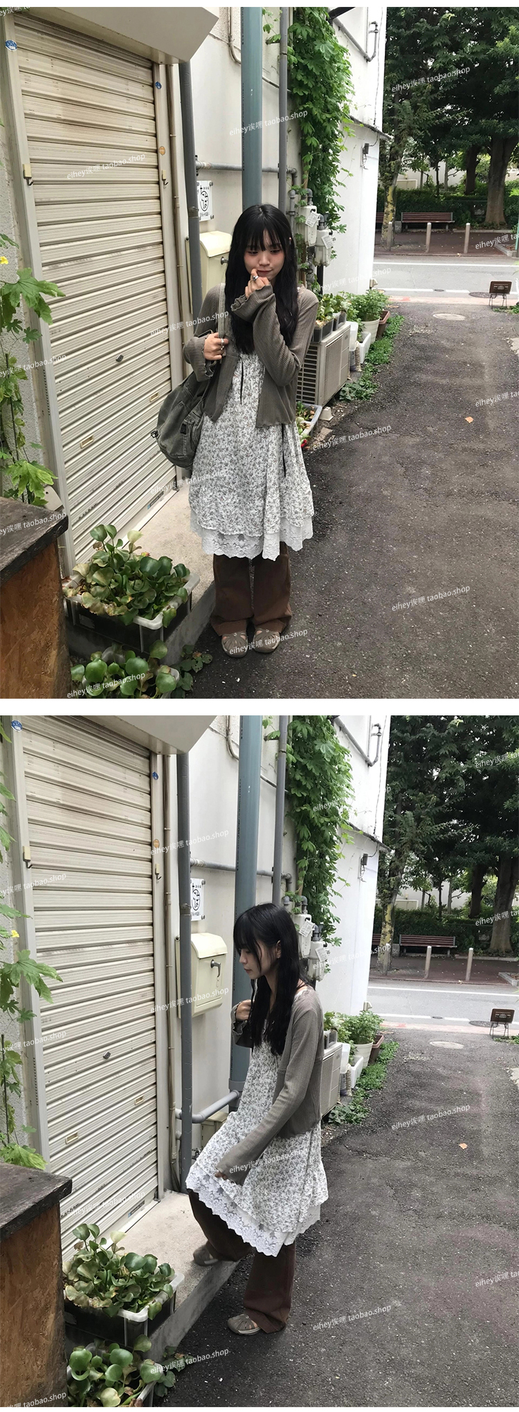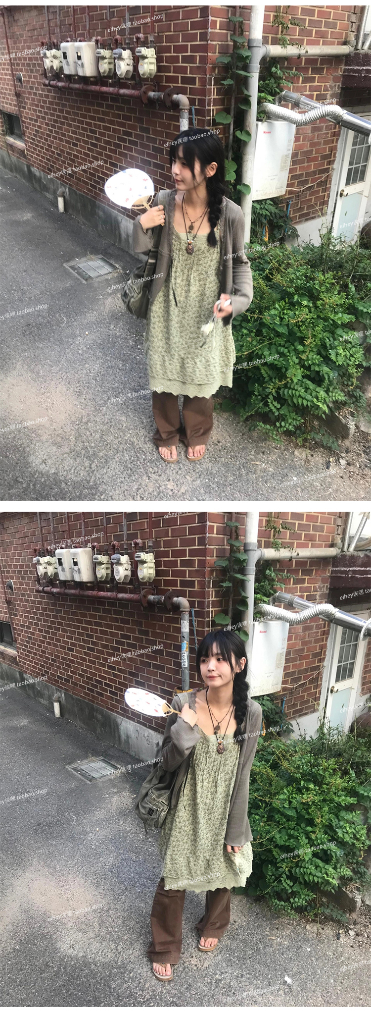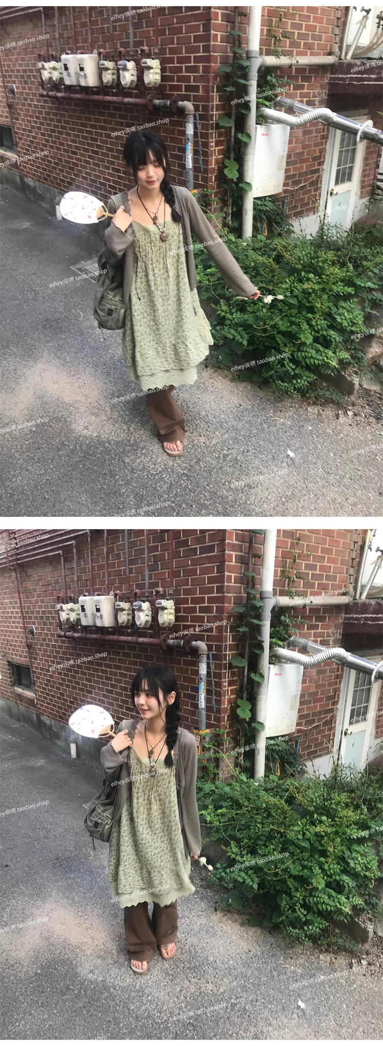 eihey诶嘿杨超越同款甜美森系碎花吊带裙宽松百搭蕾丝花边连衣裙