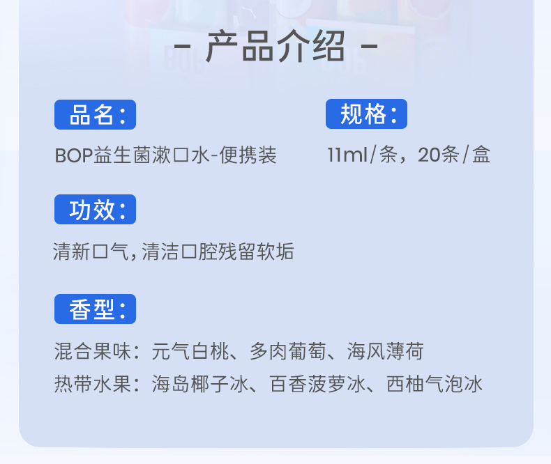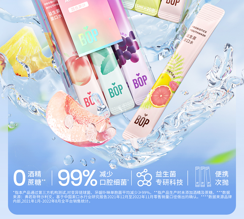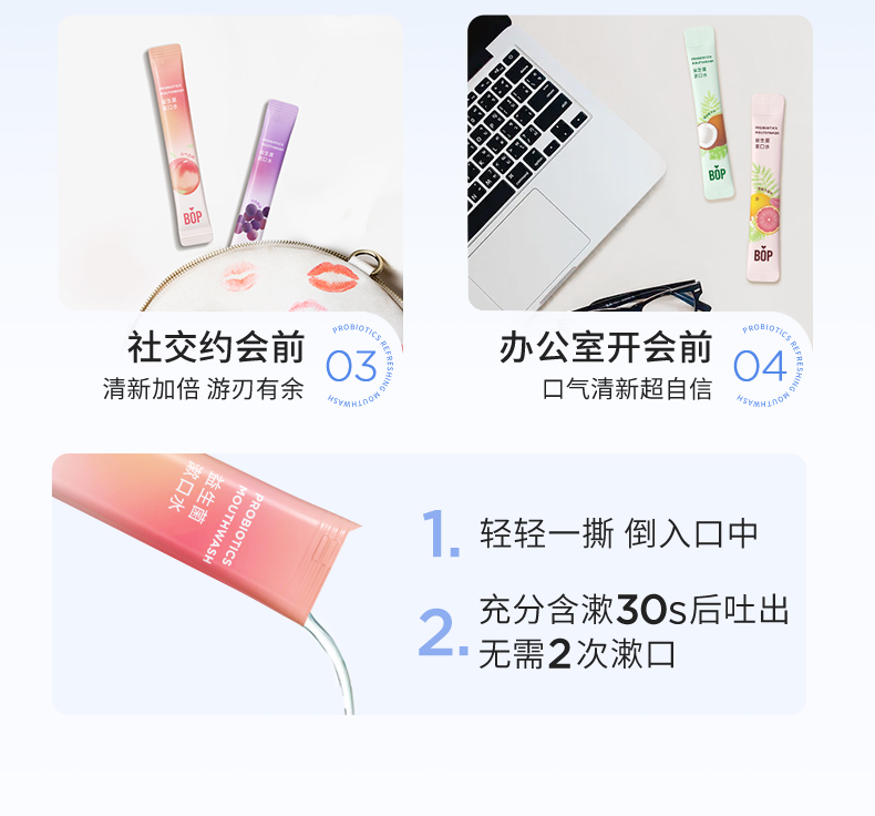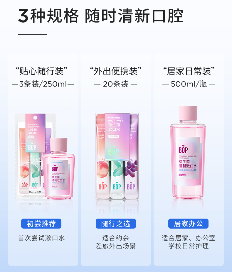 BOP益生菌条装漱口水一次性漱口液便携式小支装男士女生清新口气