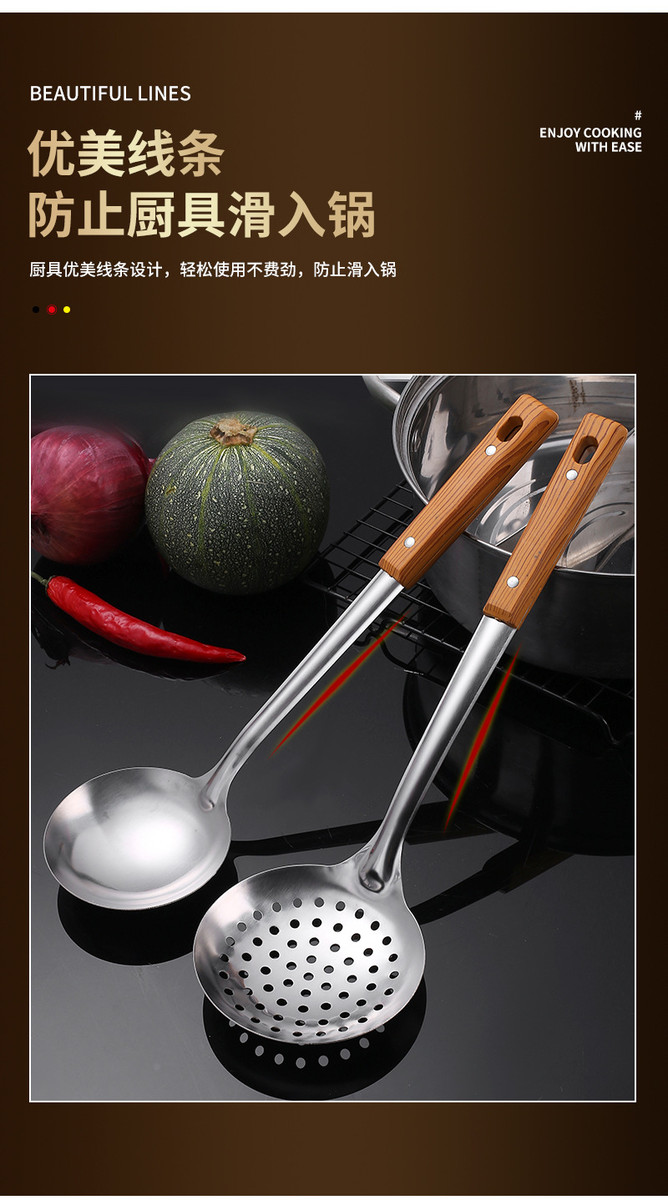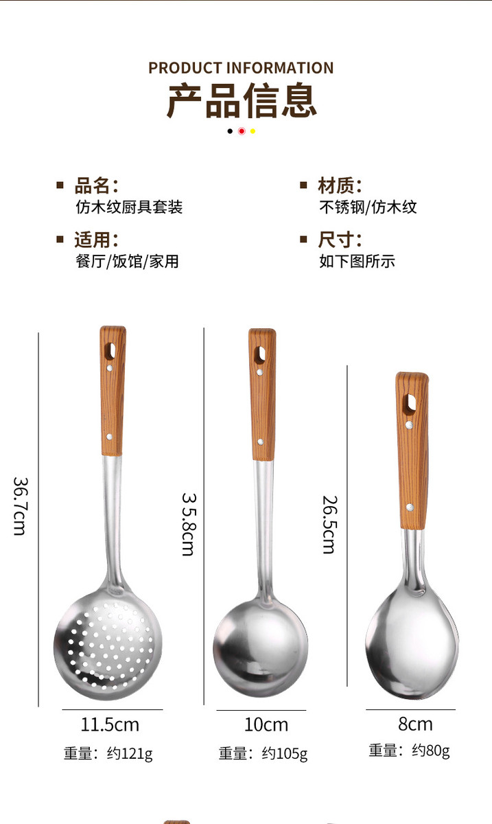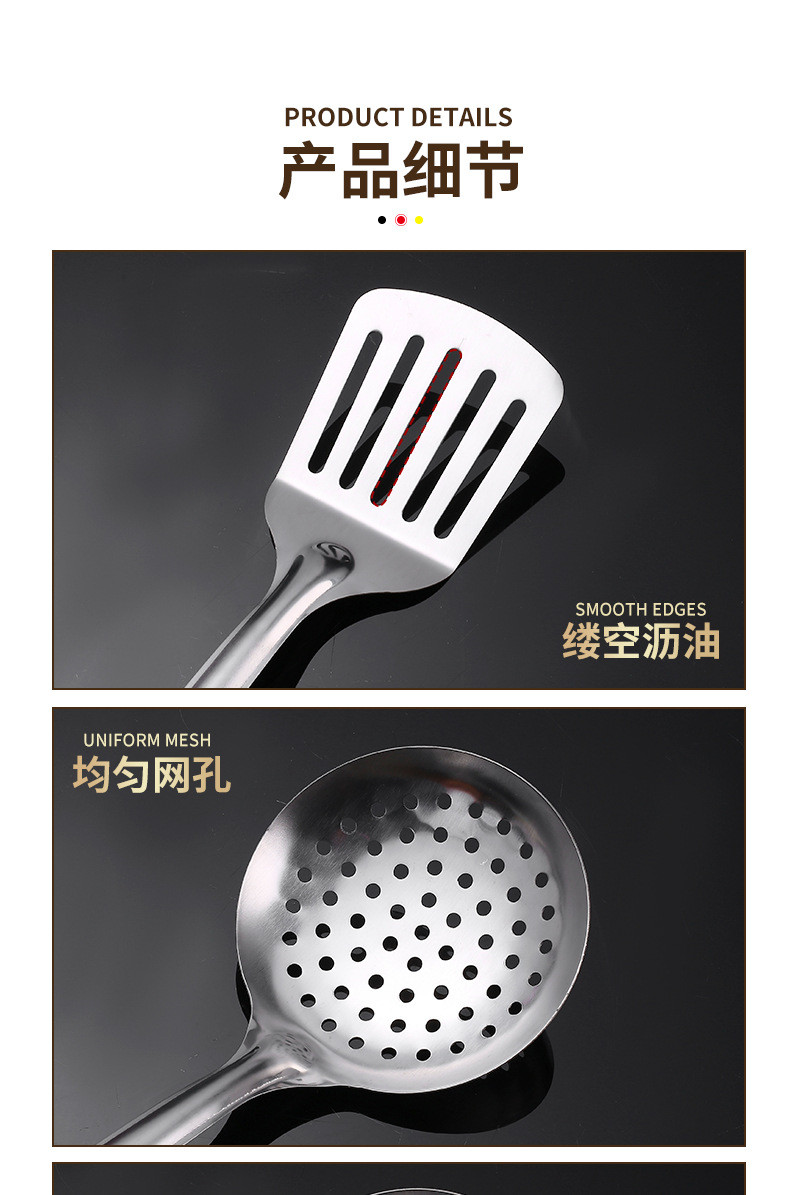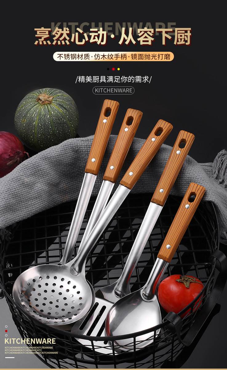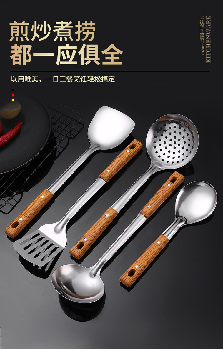不锈钢铲漏勺煎锅铲汤漏全套家用厨房用具烹饪厨具套装勺五件套