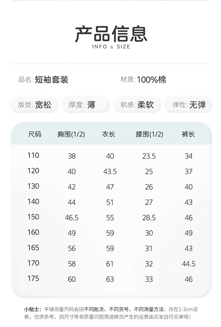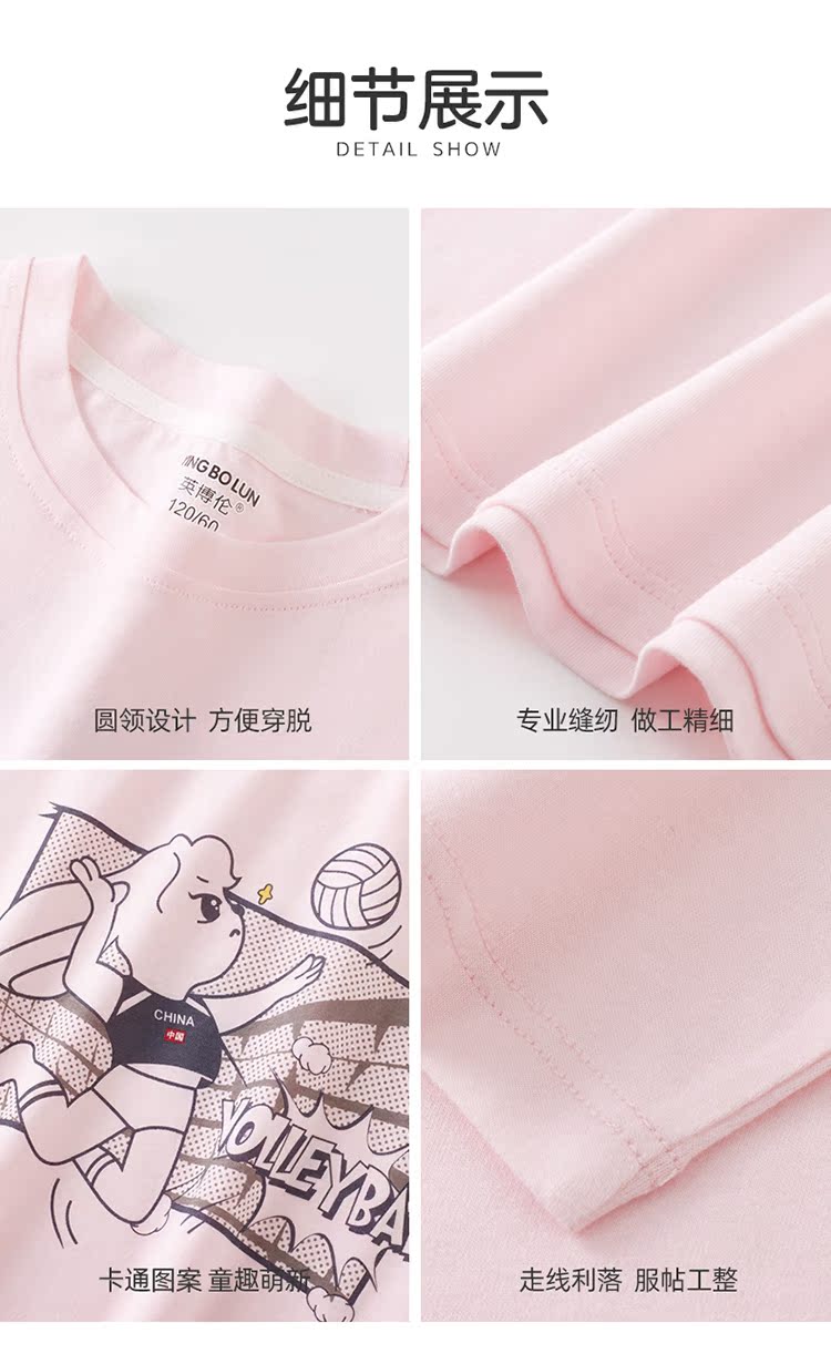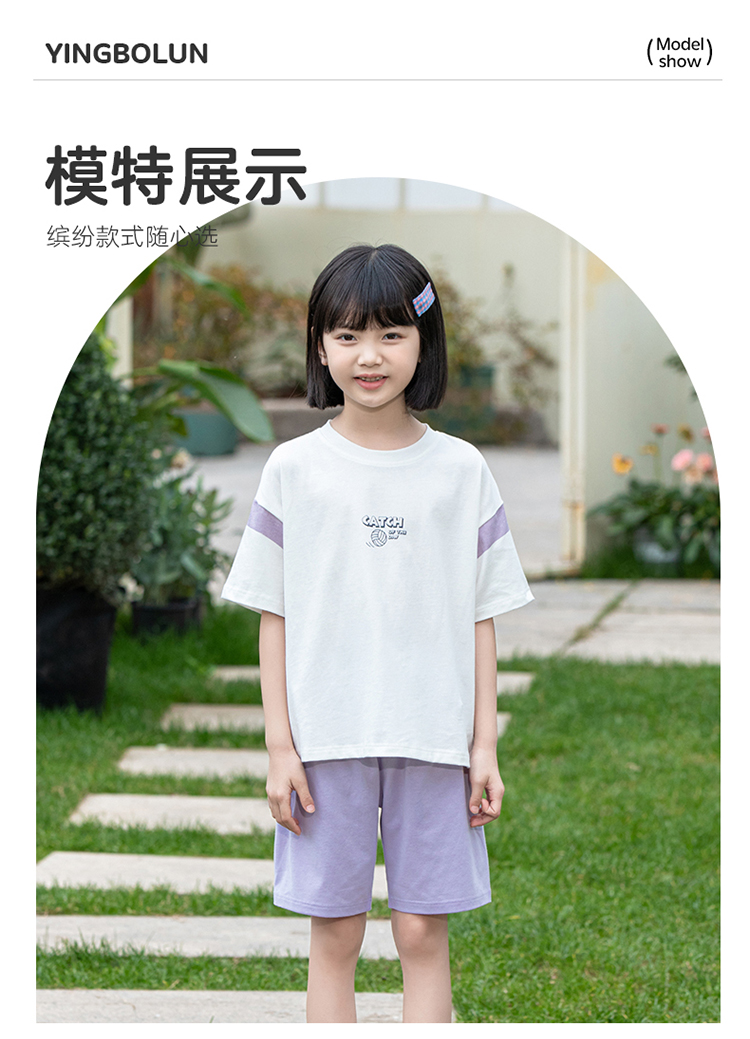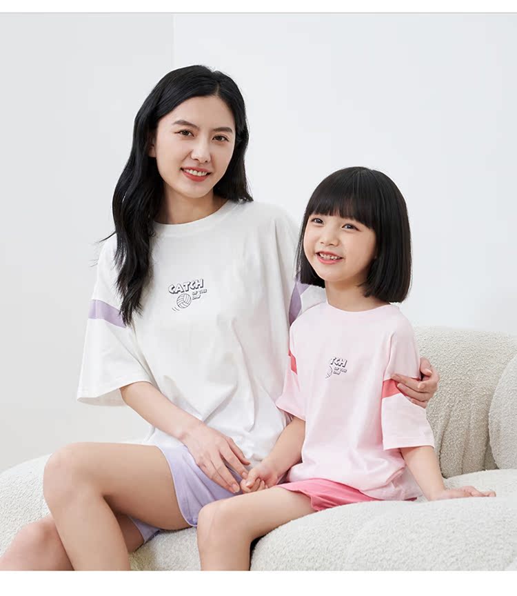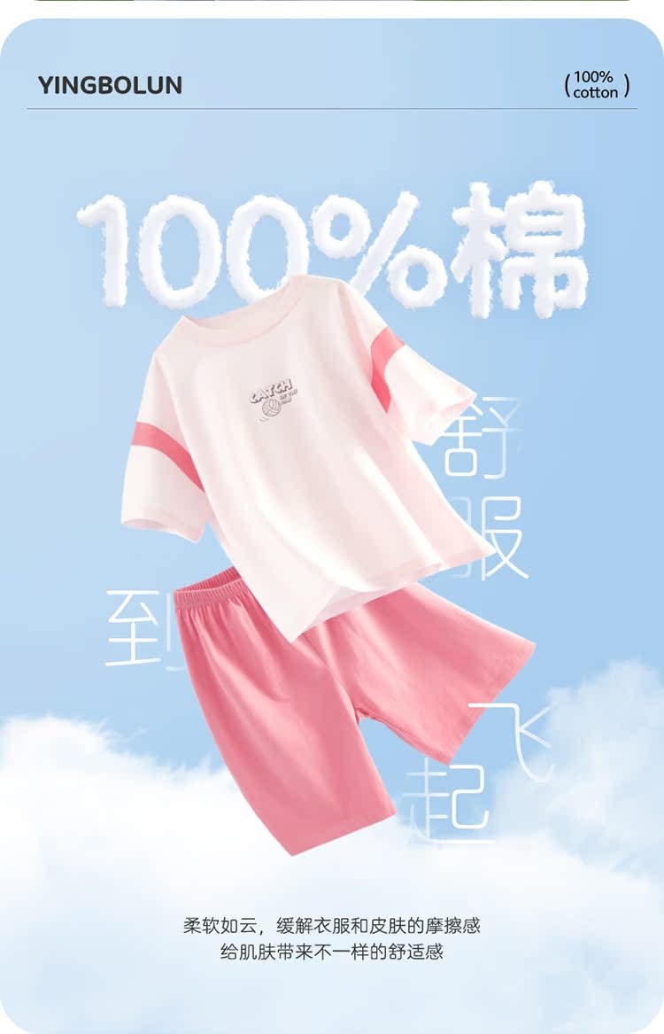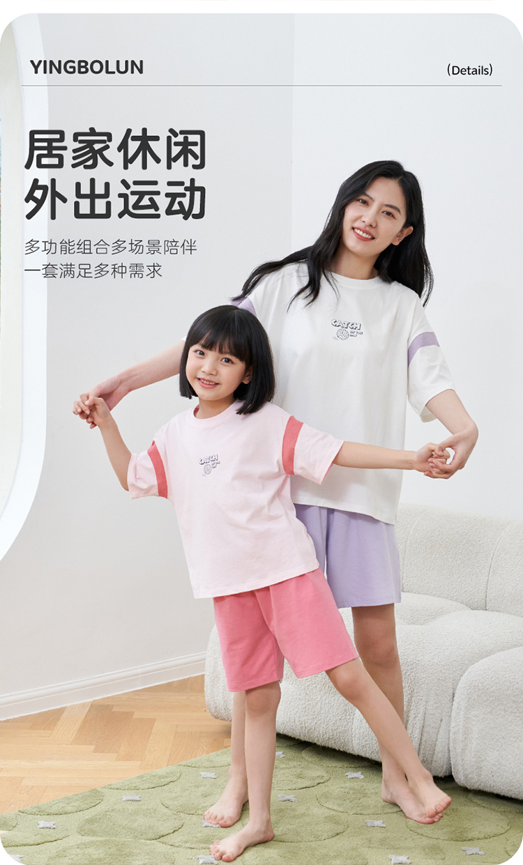 英博伦女童睡衣全棉薄款夏季短袖套中大童女孩纯棉亲子家居服套装