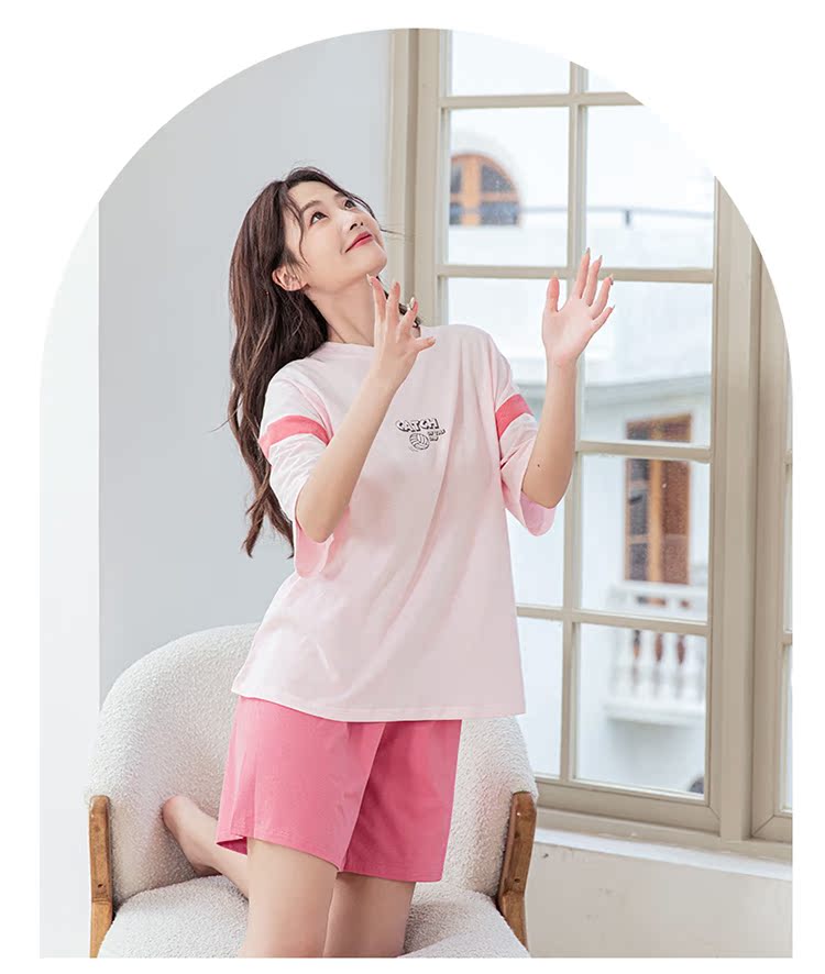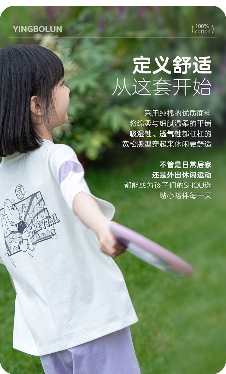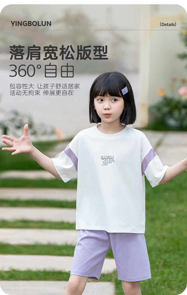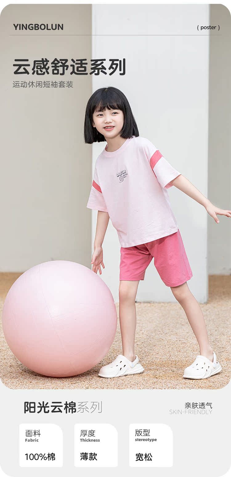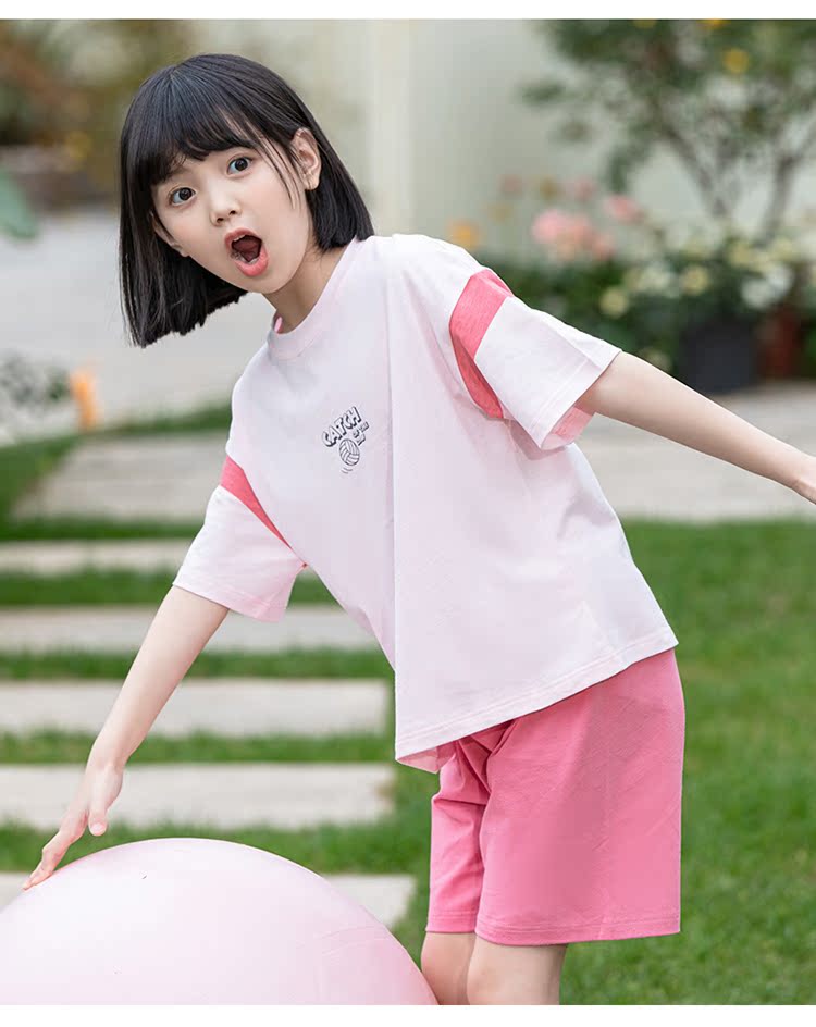 英博伦女童睡衣全棉薄款夏季短袖套中大童女孩纯棉亲子家居服套装