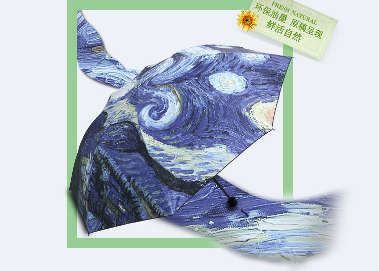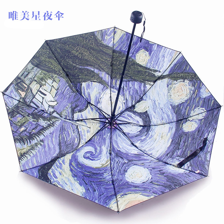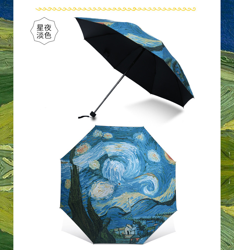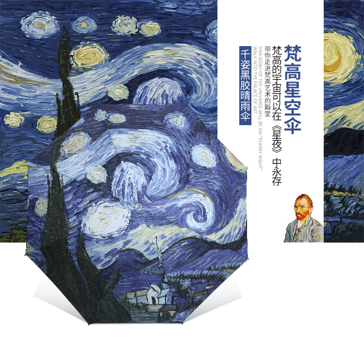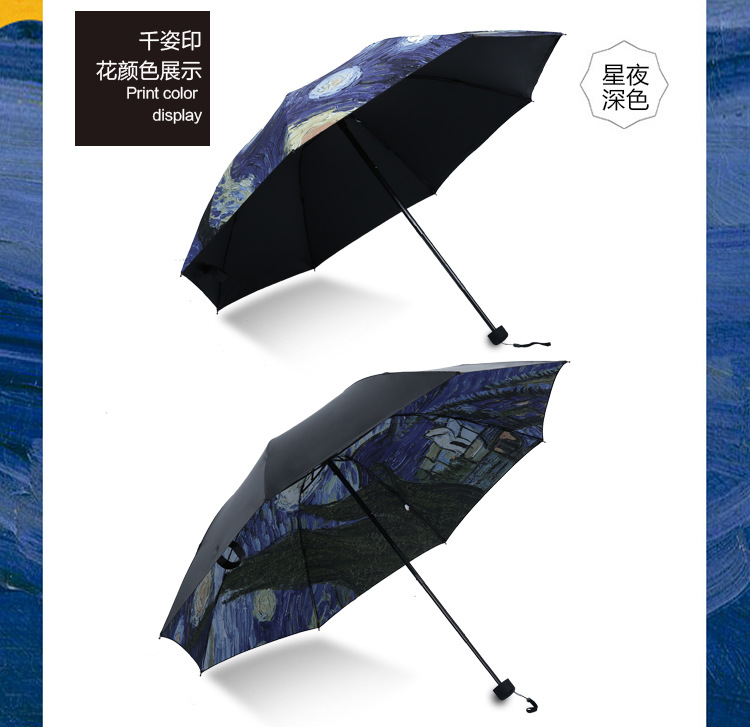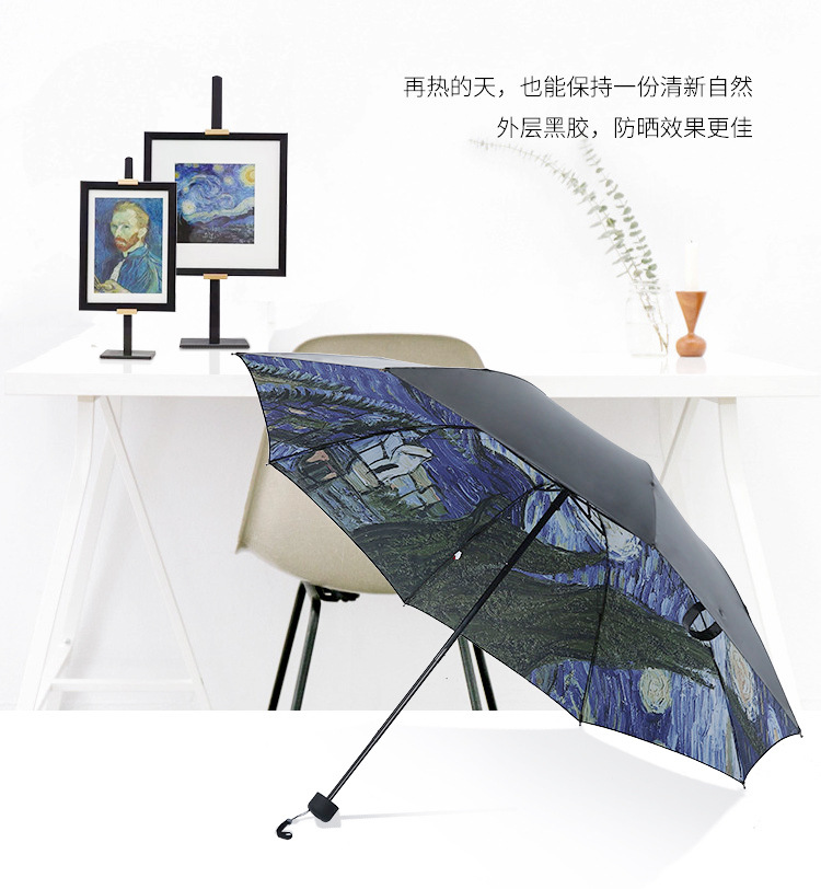 梵高油画晴雨伞黑胶防晒防紫外线晴雨两用太阳伞女户外三折遮阳伞