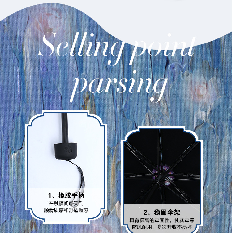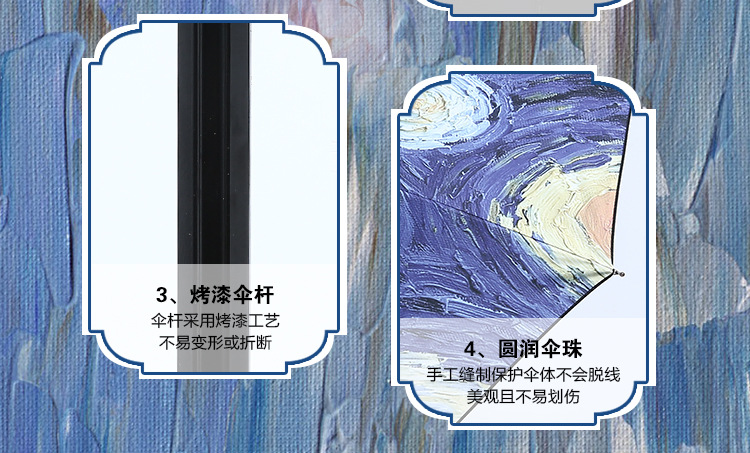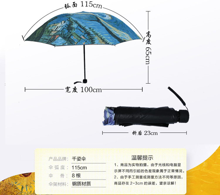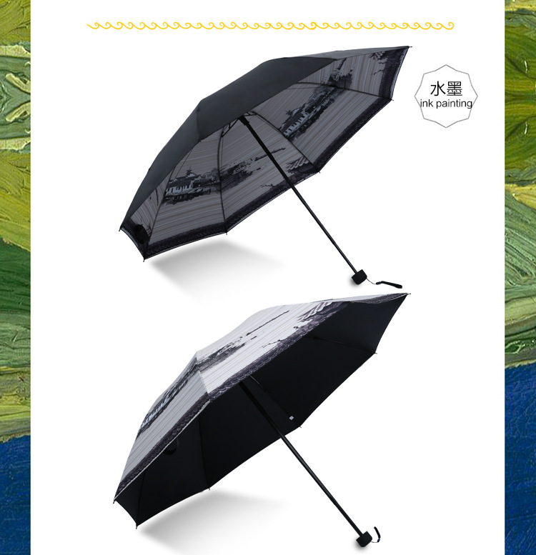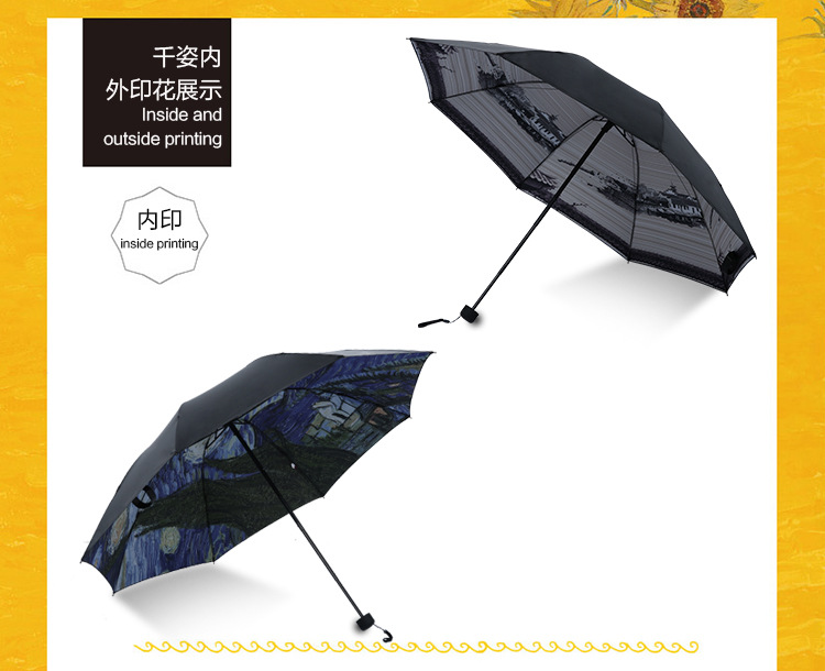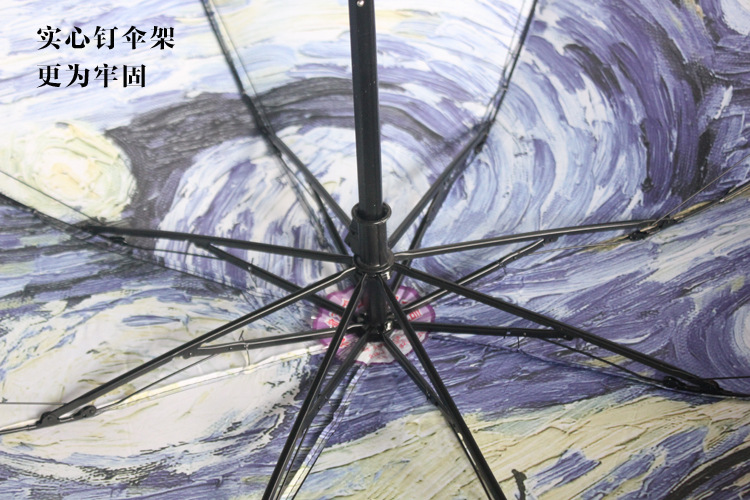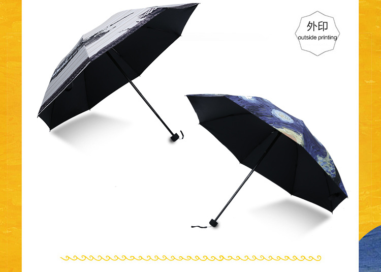 梵高油画晴雨伞黑胶防晒防紫外线晴雨两用太阳伞女户外三折遮阳伞