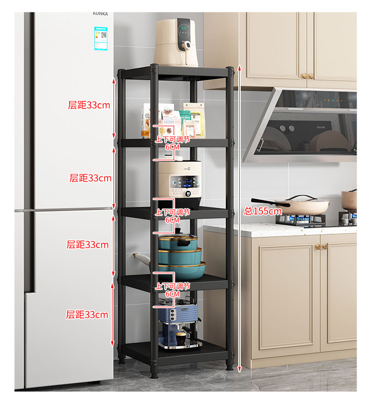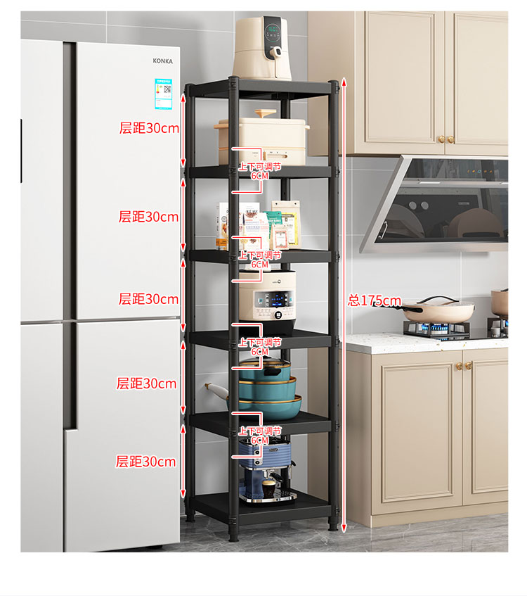 厨房架子碳钢置物架落地多层夹缝储物架微波炉调料架多层收纳货架