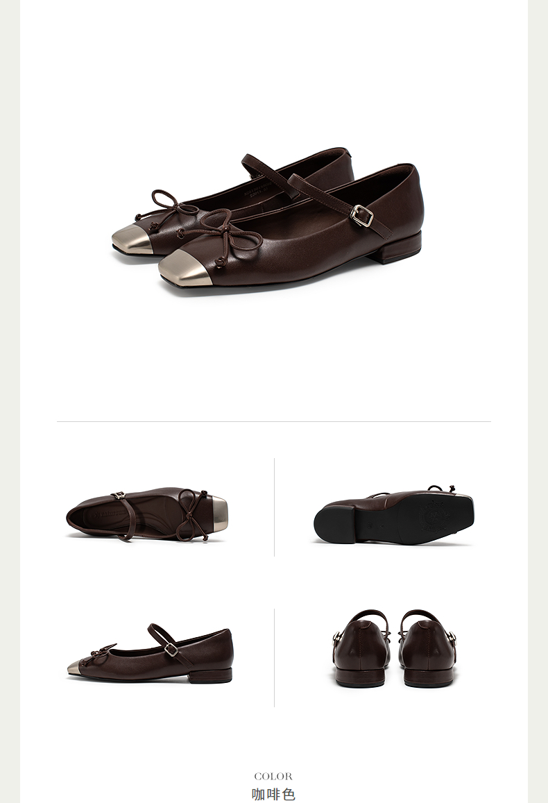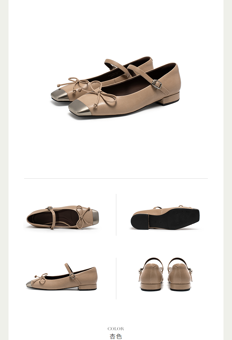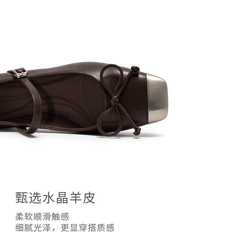 natursun新中式玛丽珍鞋女2025春季新款超软小羊皮蝴蝶结浅口单鞋