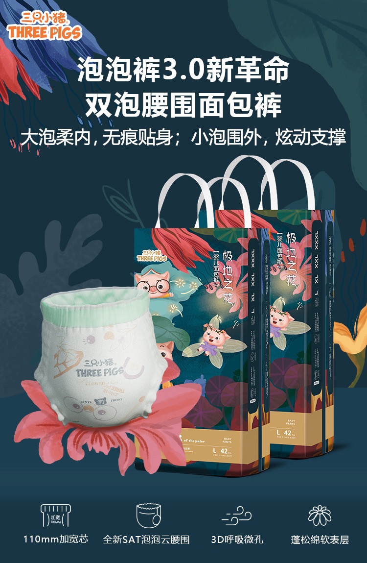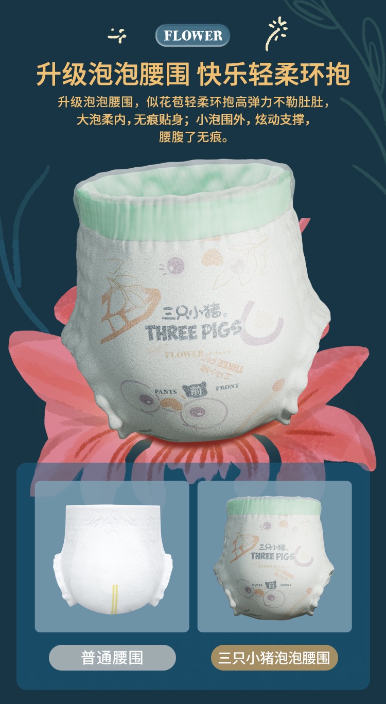 三只小猪拉拉裤极地之花纸尿裤泡泡腰围一体裤超薄柔软亲肤尿不湿