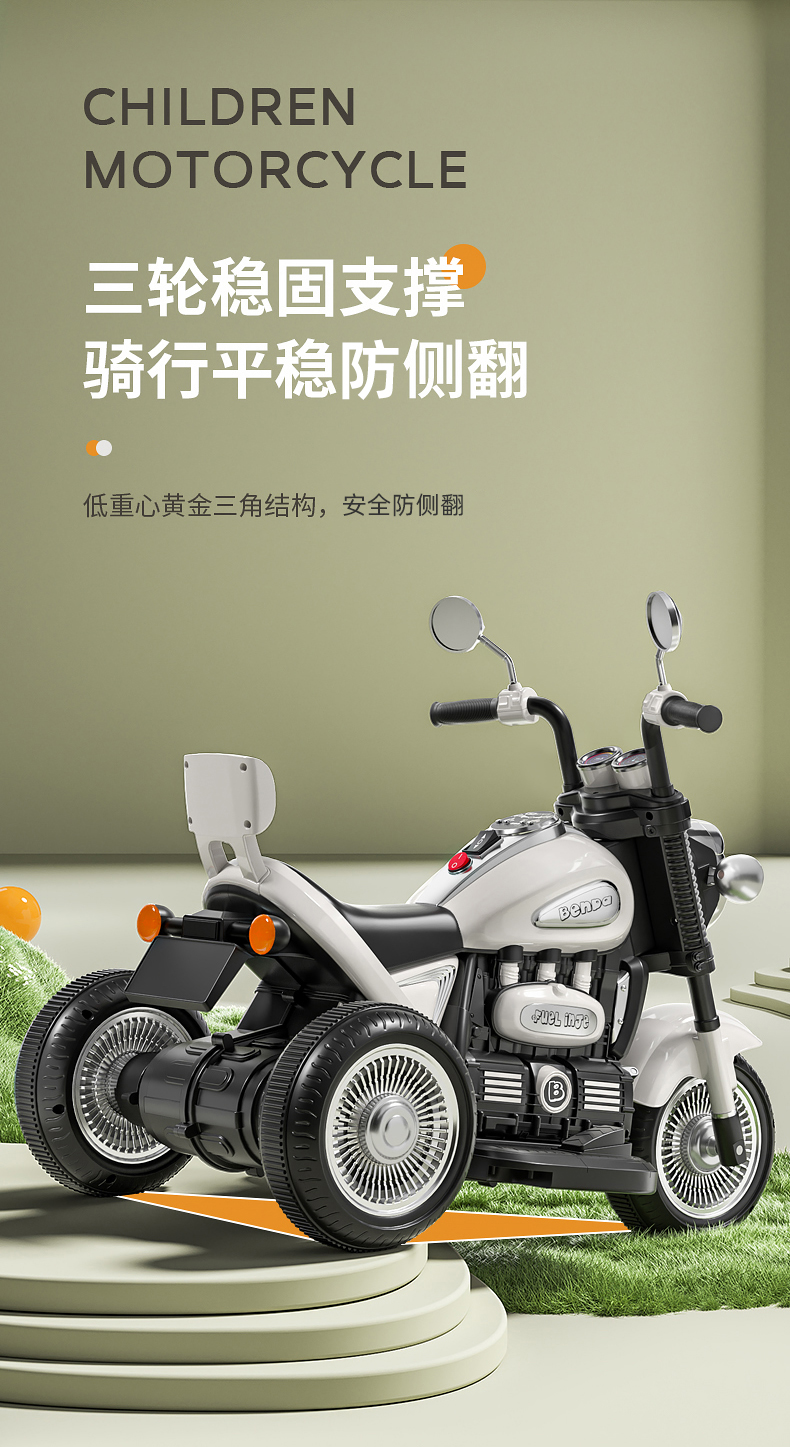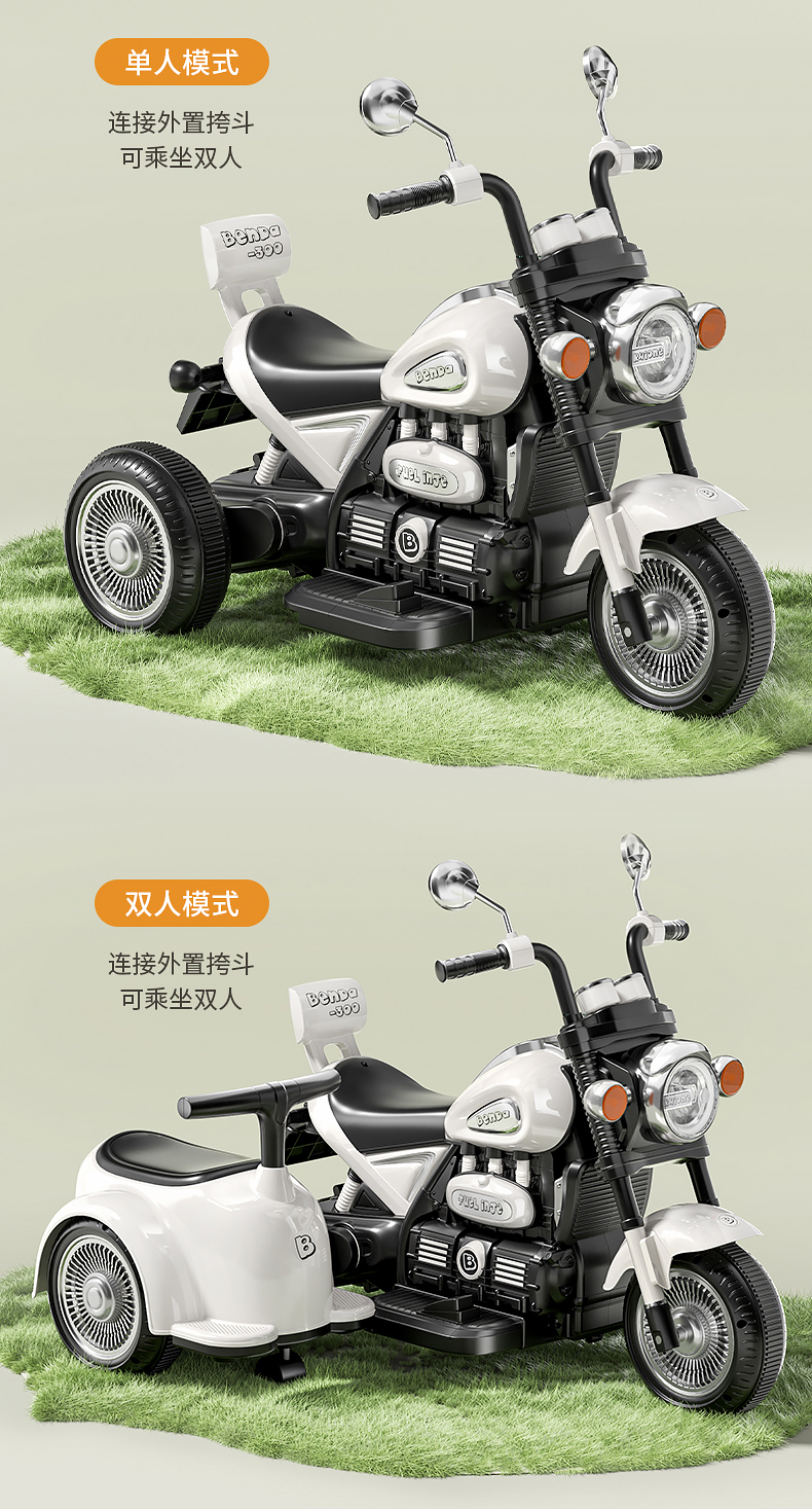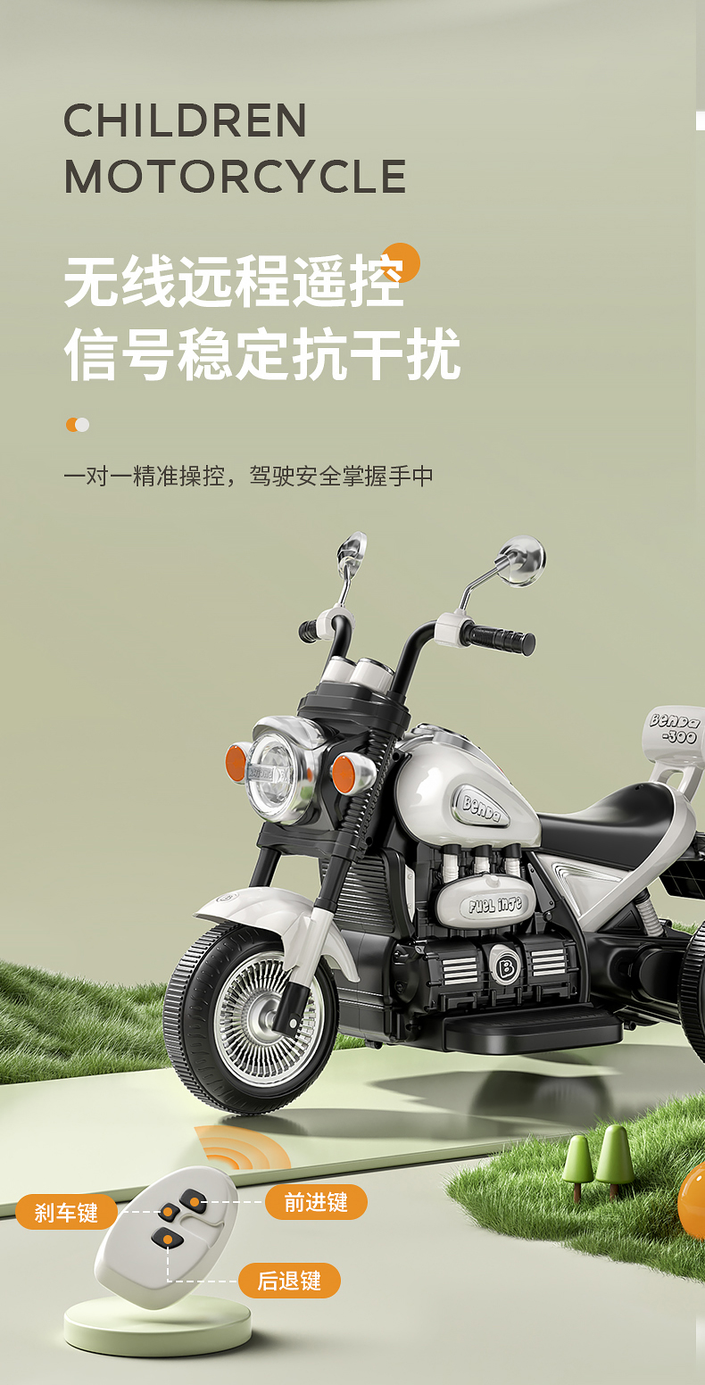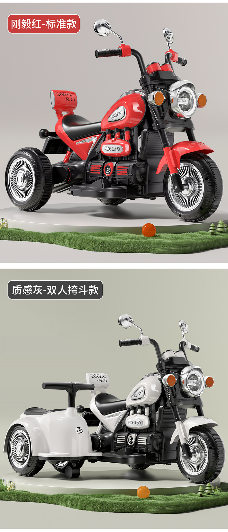 儿童电动摩托车三轮车男女孩宝宝车小孩可坐人充电双人遥控玩具车