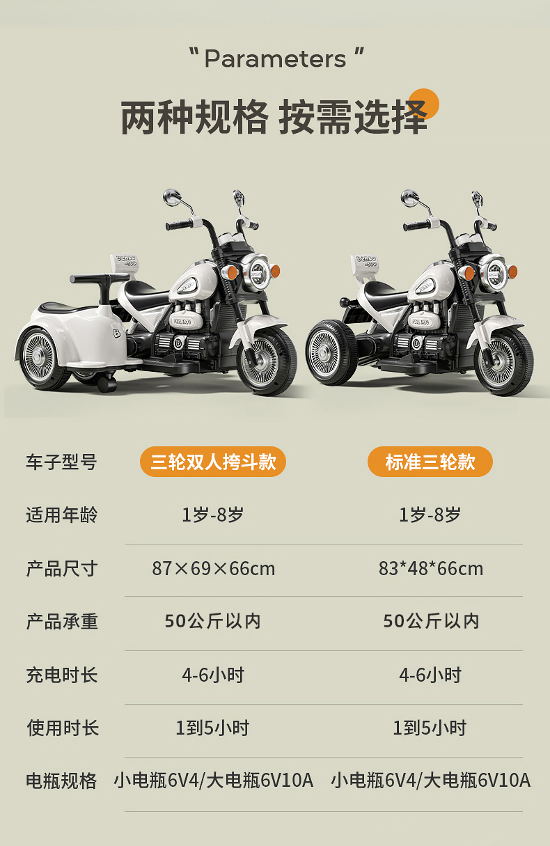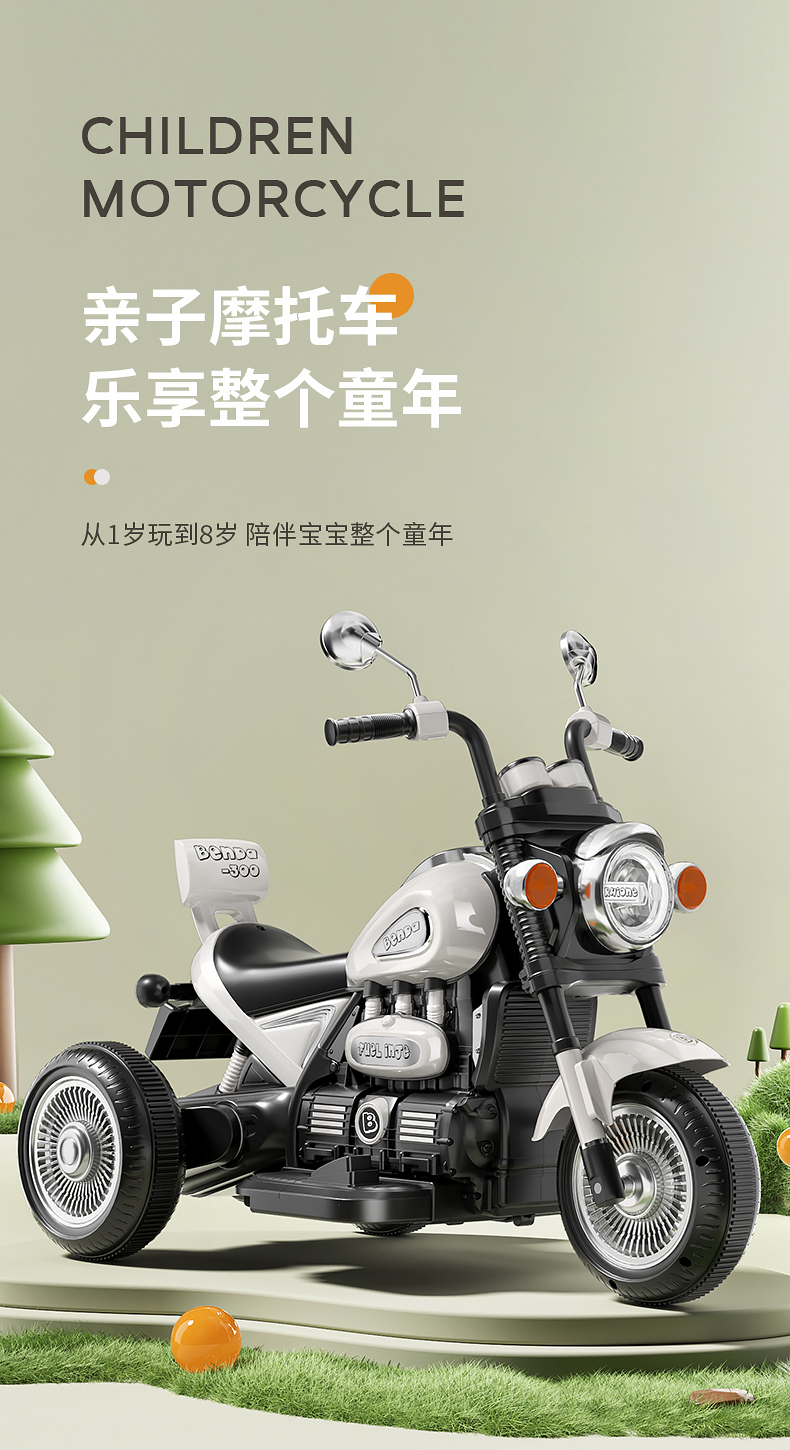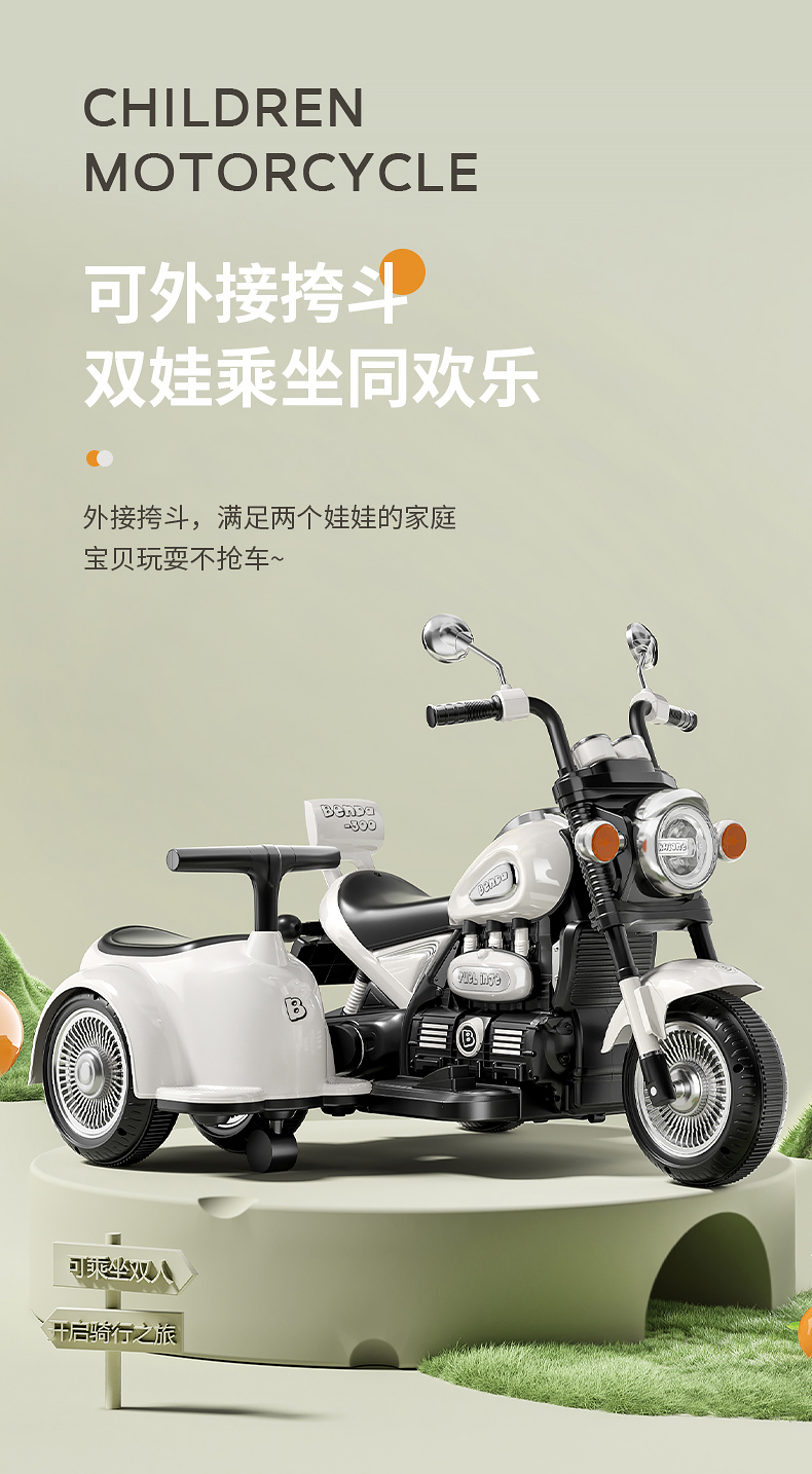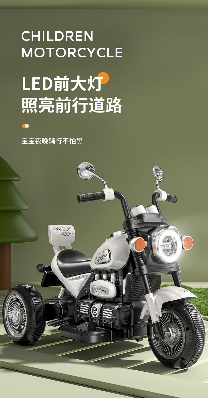 儿童电动摩托车三轮车男女孩宝宝车小孩可坐人充电双人遥控玩具车