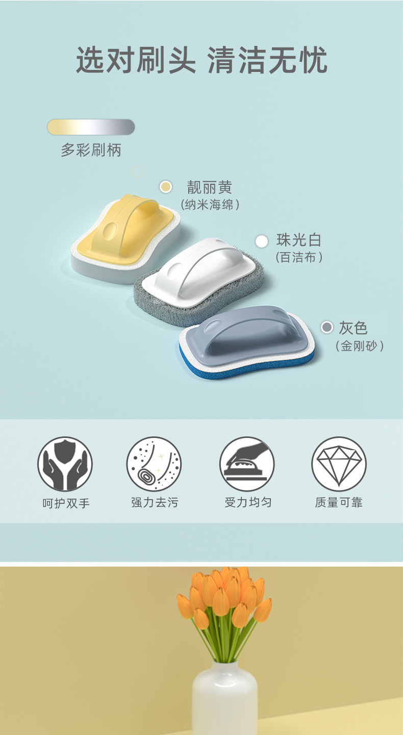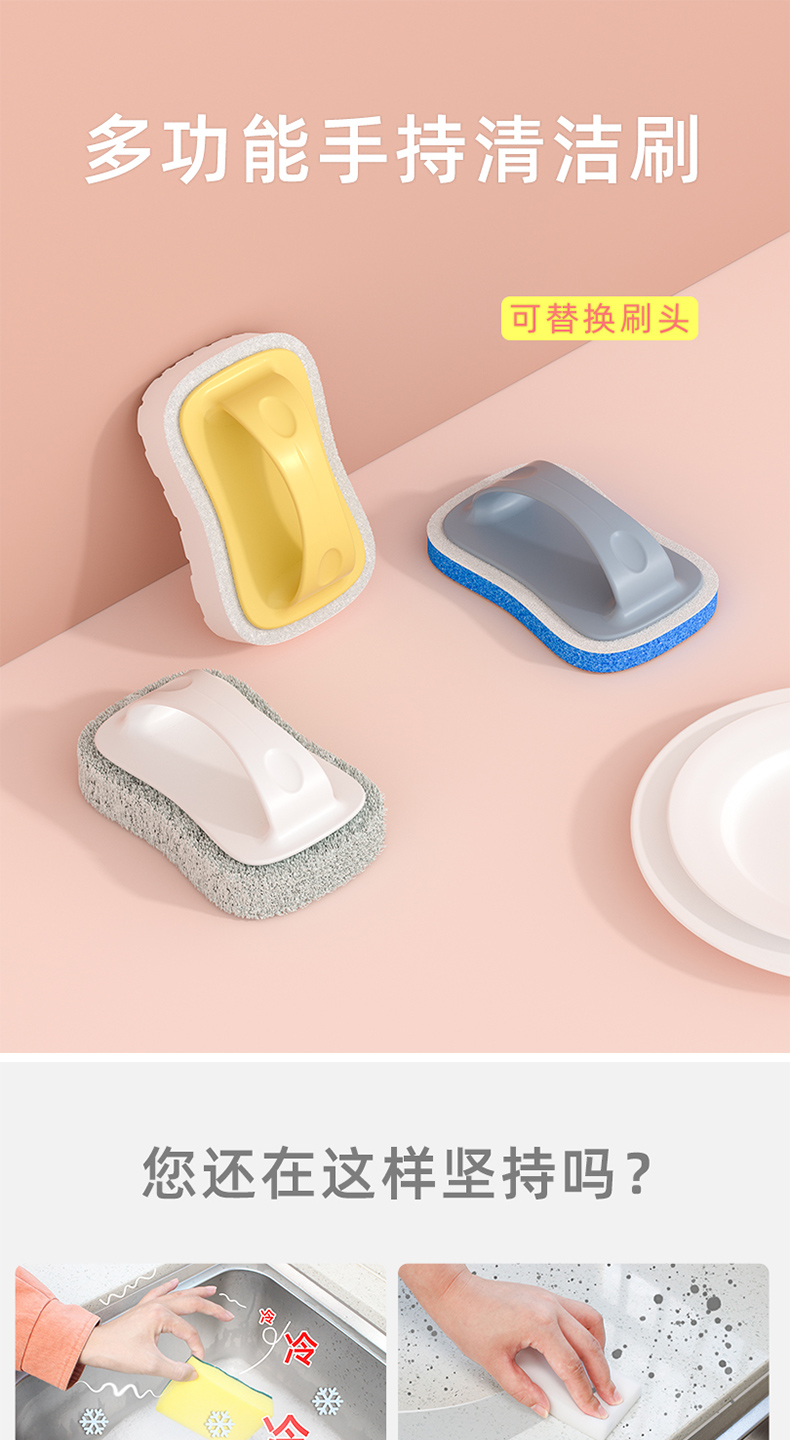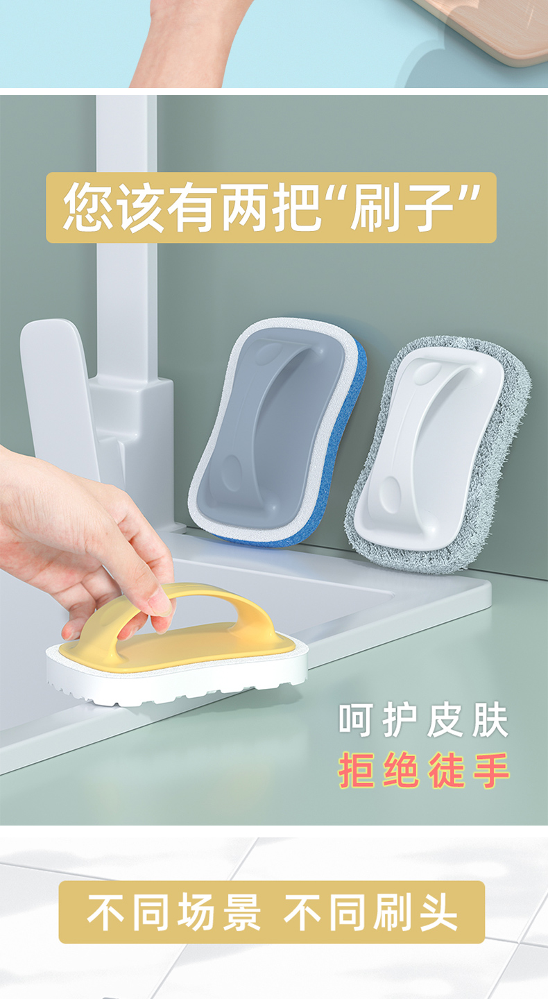 卫生间手持清洁刷洗手台墙面瓷砖刷子淋浴房浴缸刷海绵擦清洁神器