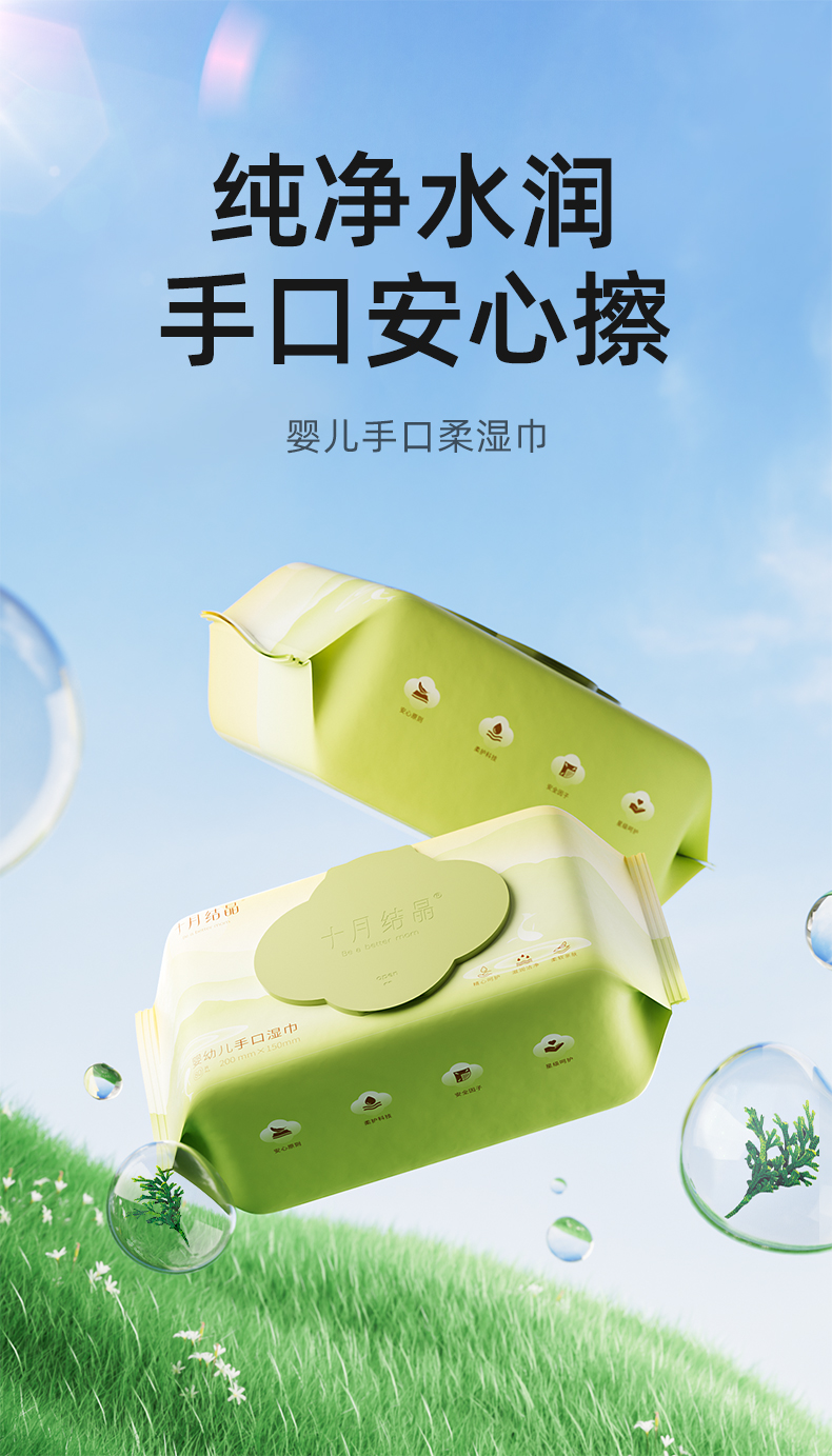 包邮十月结晶婴儿湿巾手口专用新生宝宝擦脸纯水湿纸巾实惠装80抽