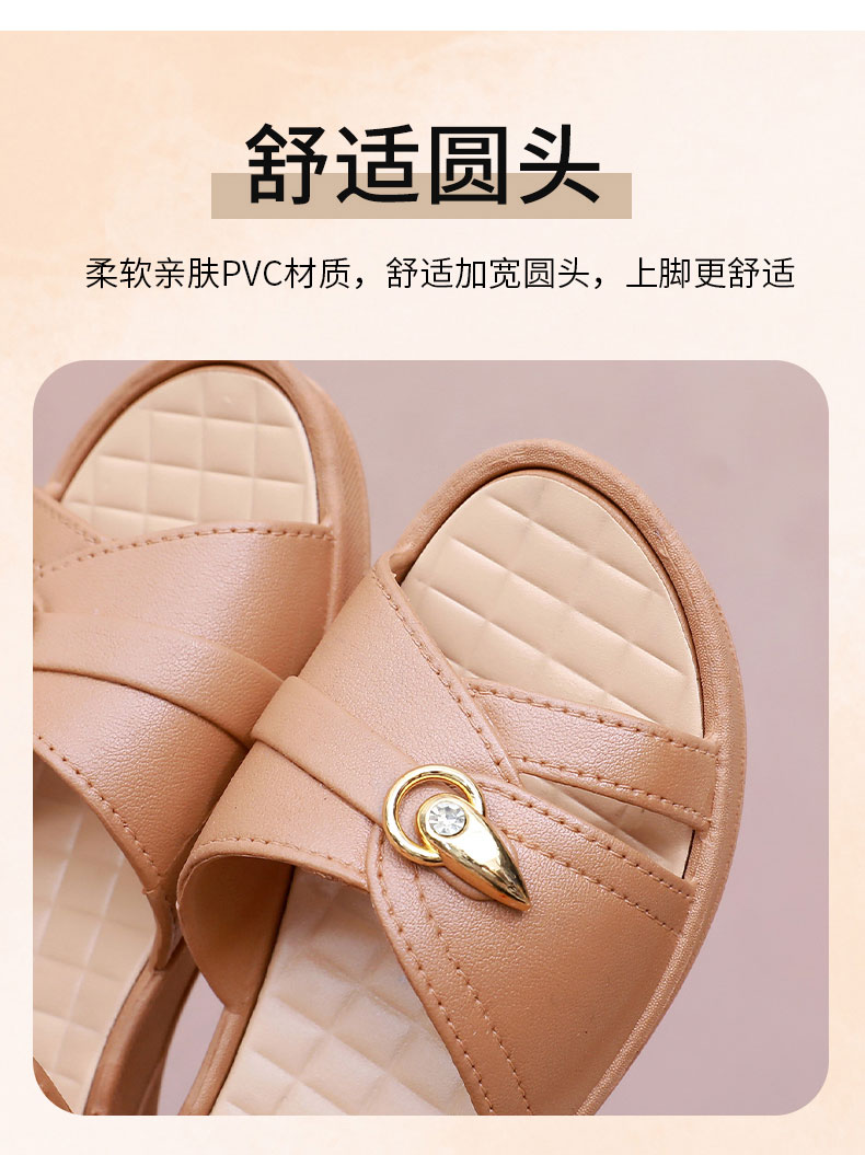 厚底凉拖鞋女夏季外穿防滑软底时尚简约坡跟妈妈凉鞋休闲沙滩凉拖
