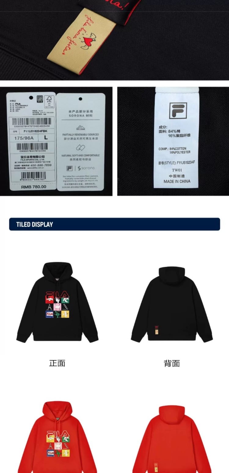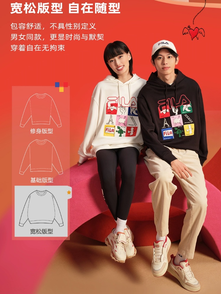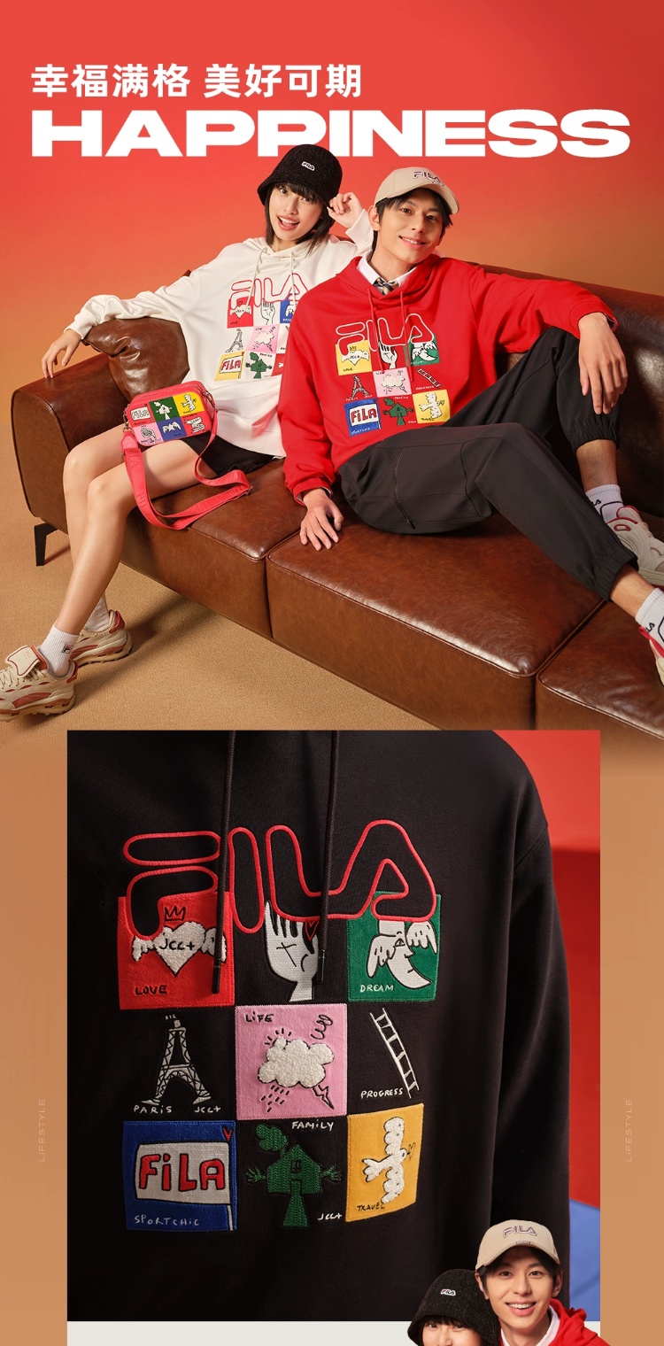 FILA 叕运蛇斐乐情侣连帽新年红色氧气卫衣男女连帽卫衣