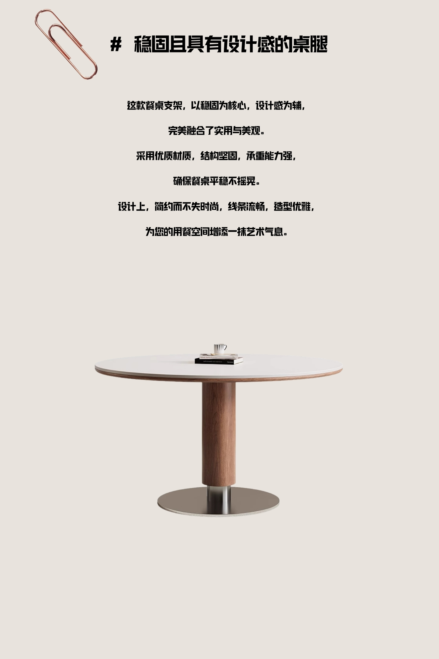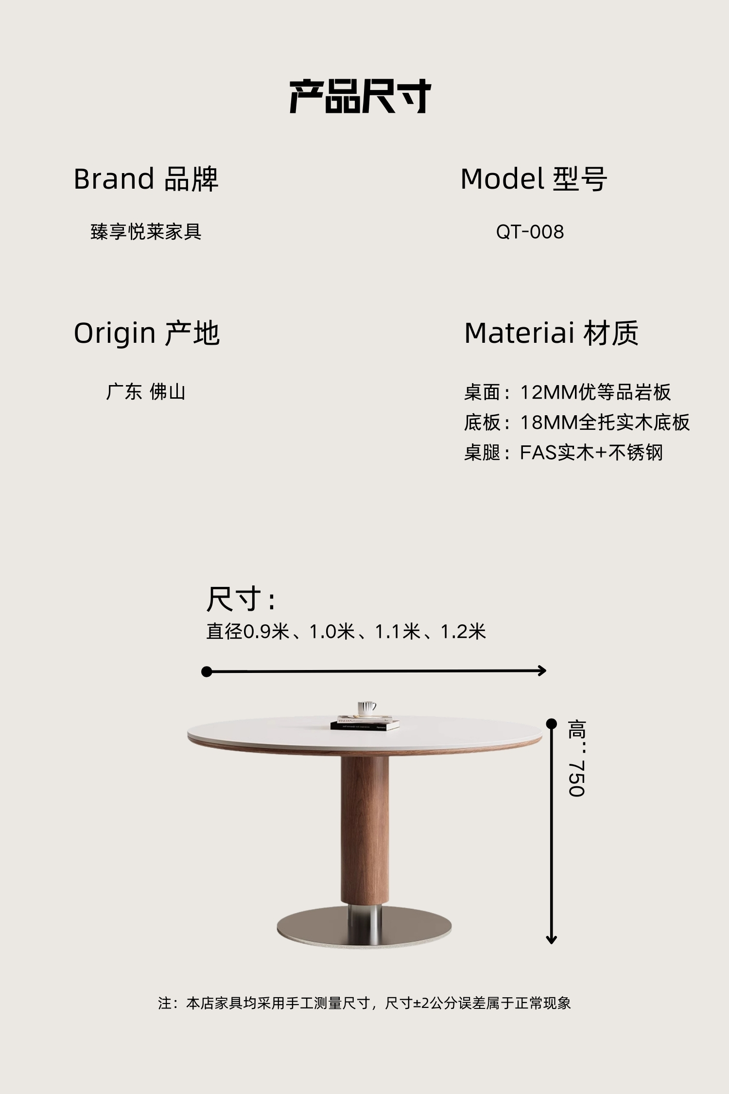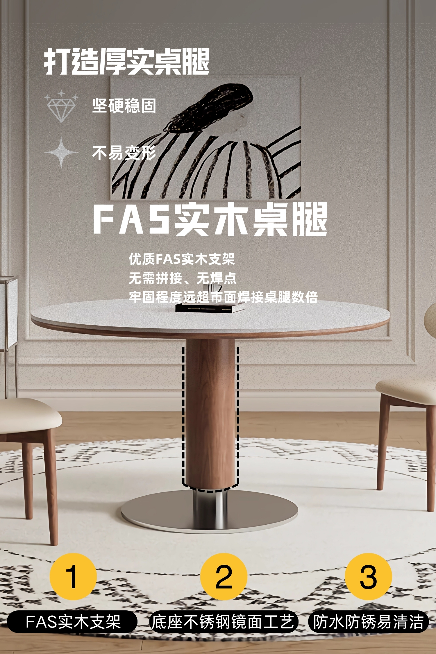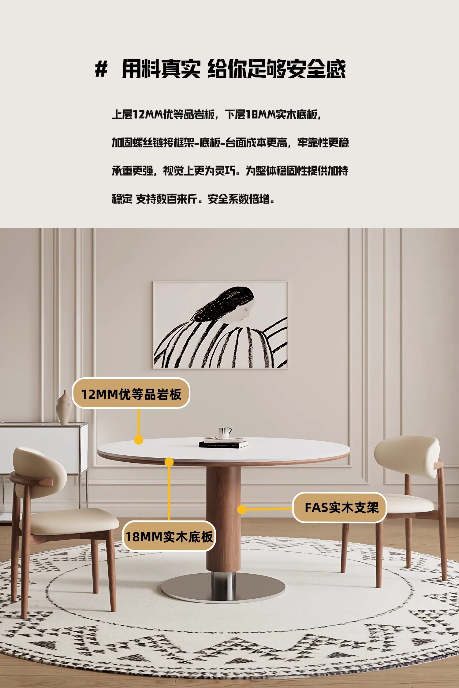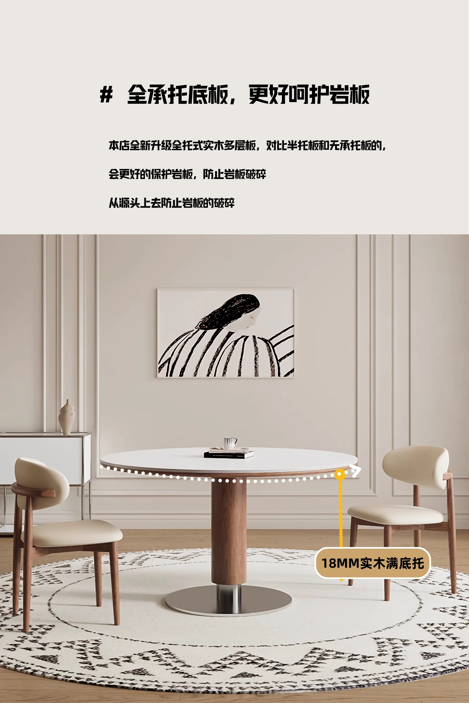 中古风实木岩板餐桌椅组合家用圆形饭桌法式复古胡桃色实木餐桌
