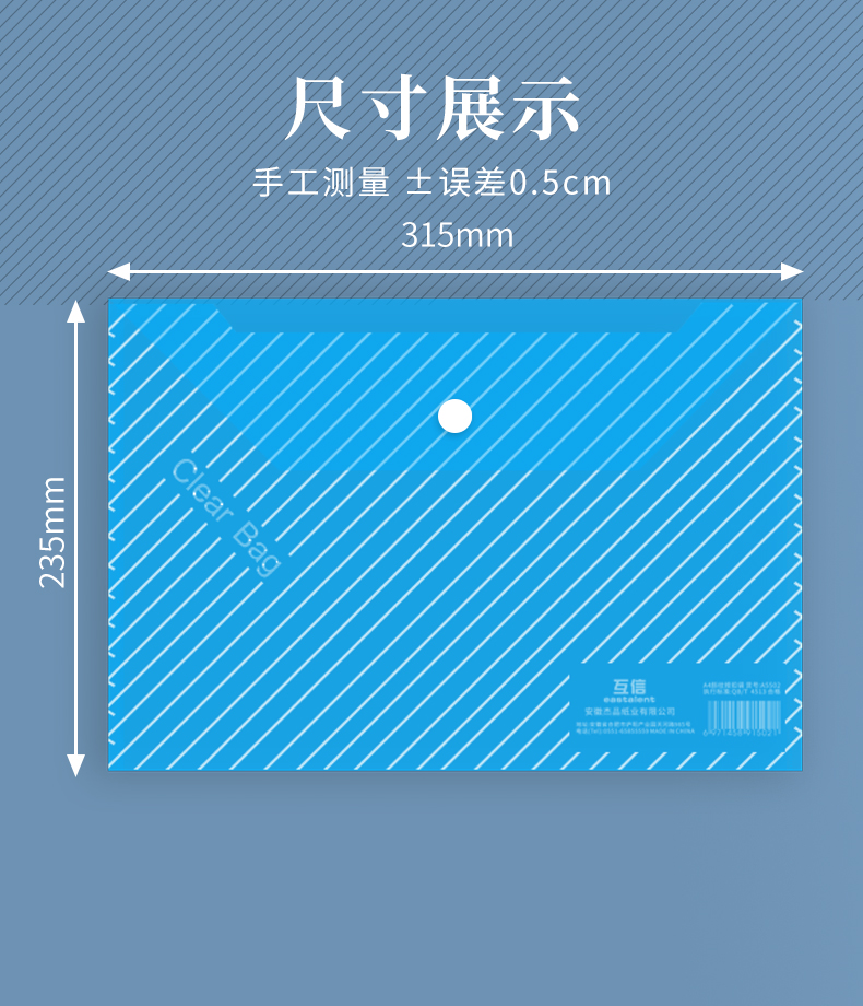 互信a4文件袋10个装透明塑料加厚大容量按扣学生用试卷收纳袋资料档案袋办公用品文具按扣考试专用袋子公文袋