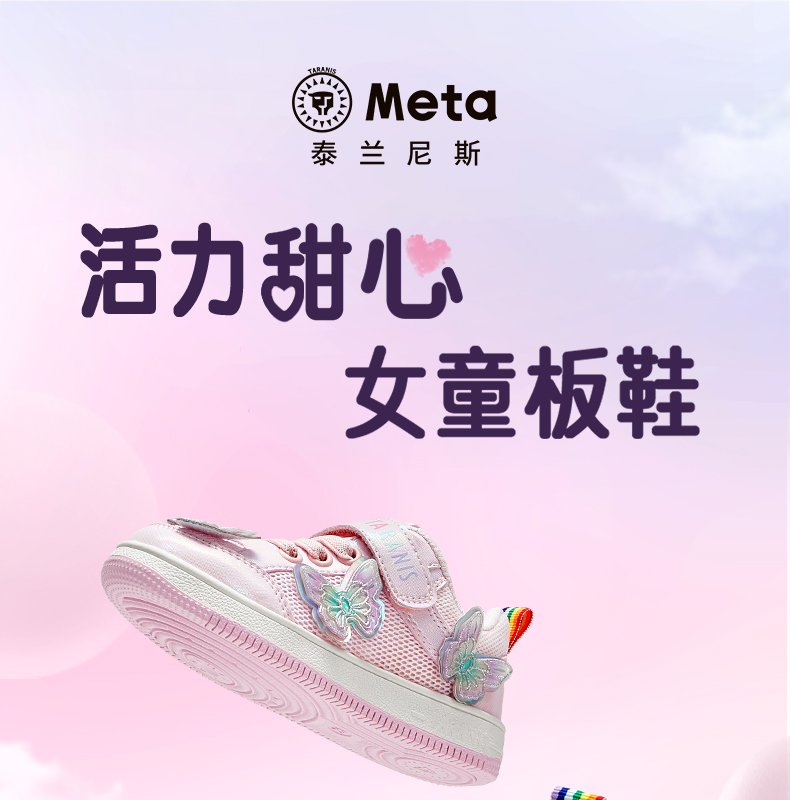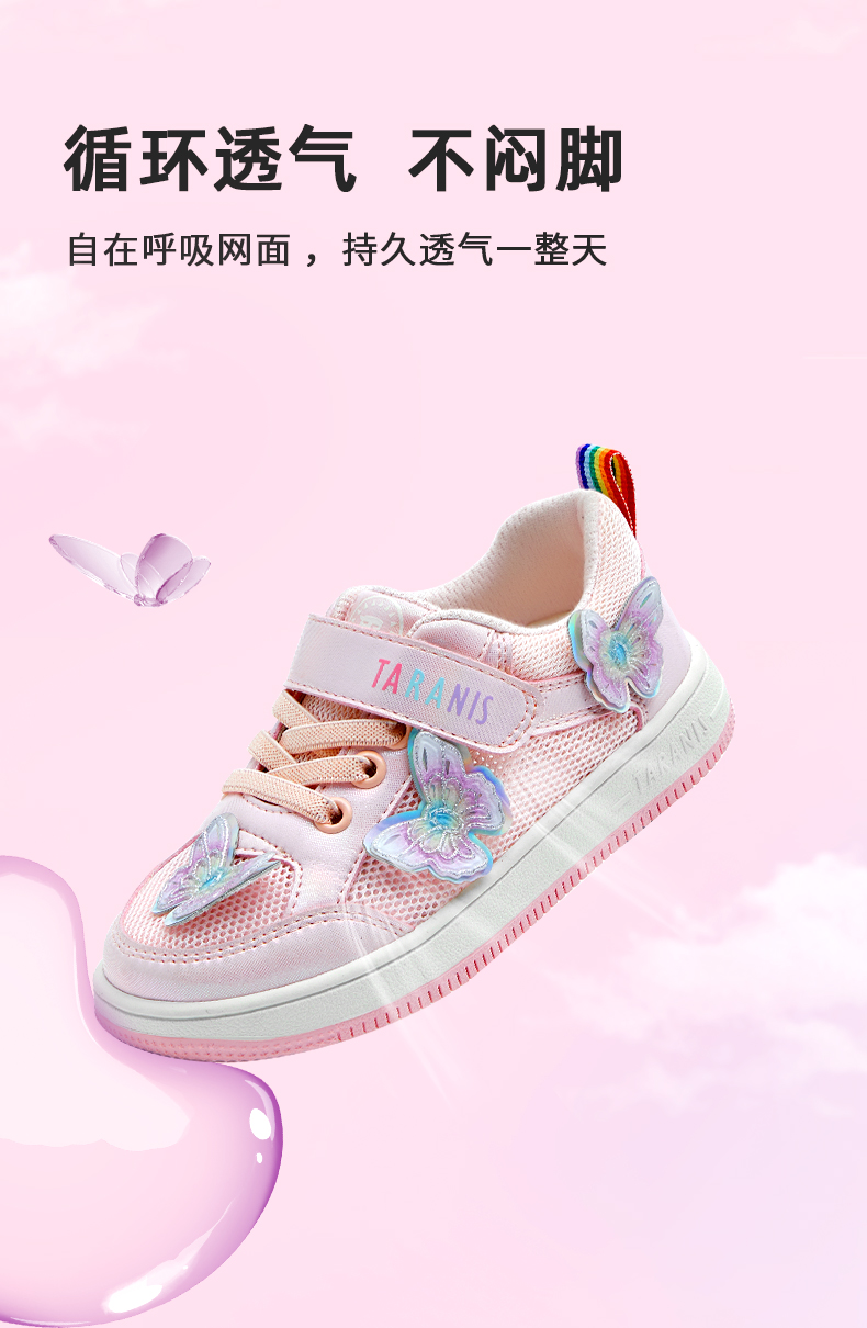 泰兰尼斯Meta女童板鞋儿童运动鞋夏季新款女宝宝软底网布透气鞋子