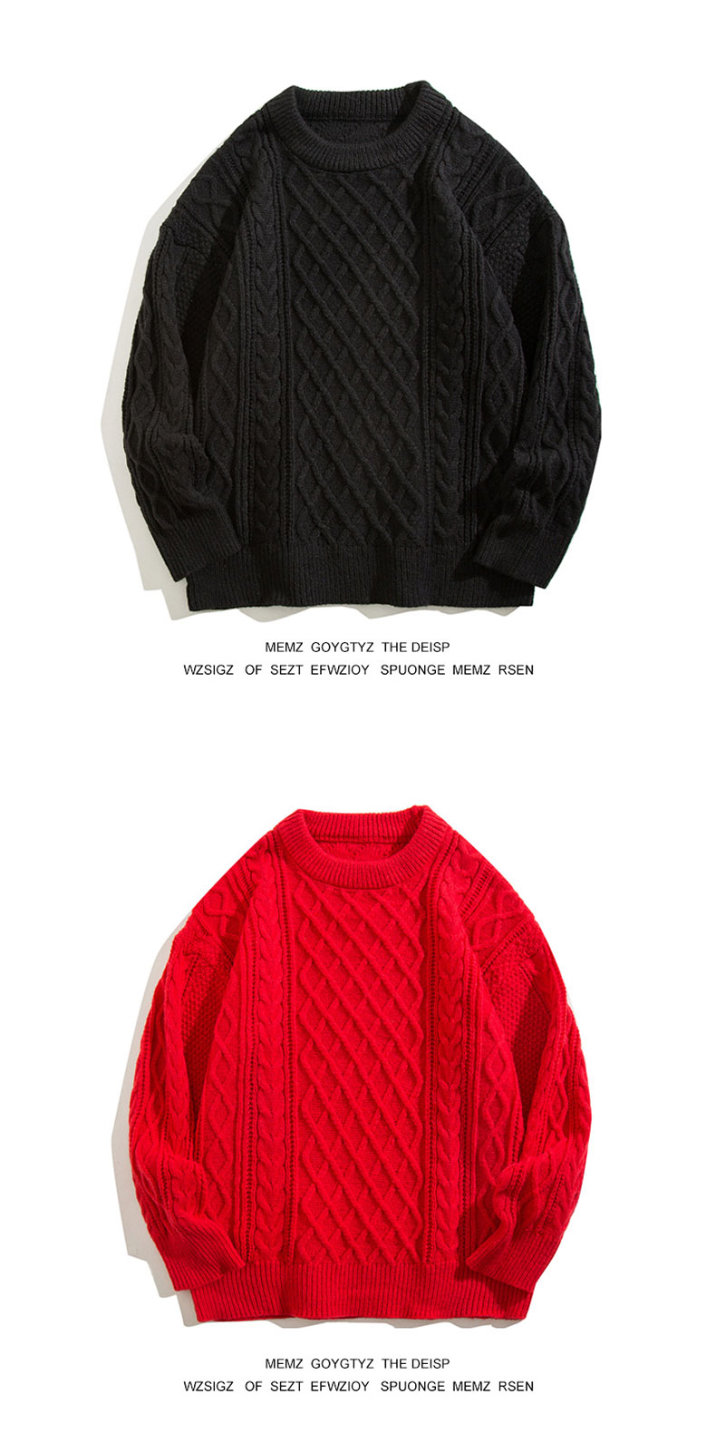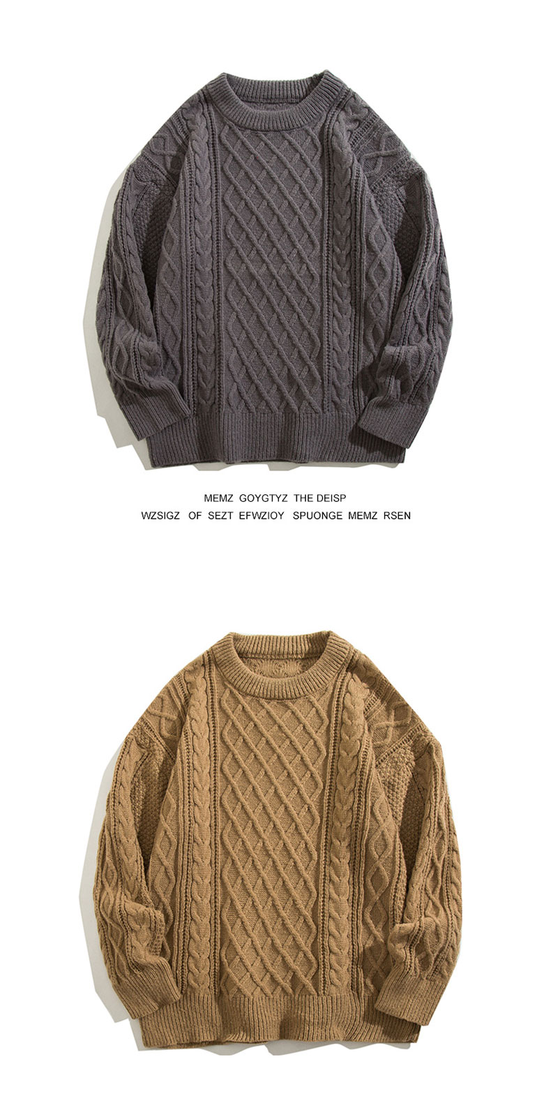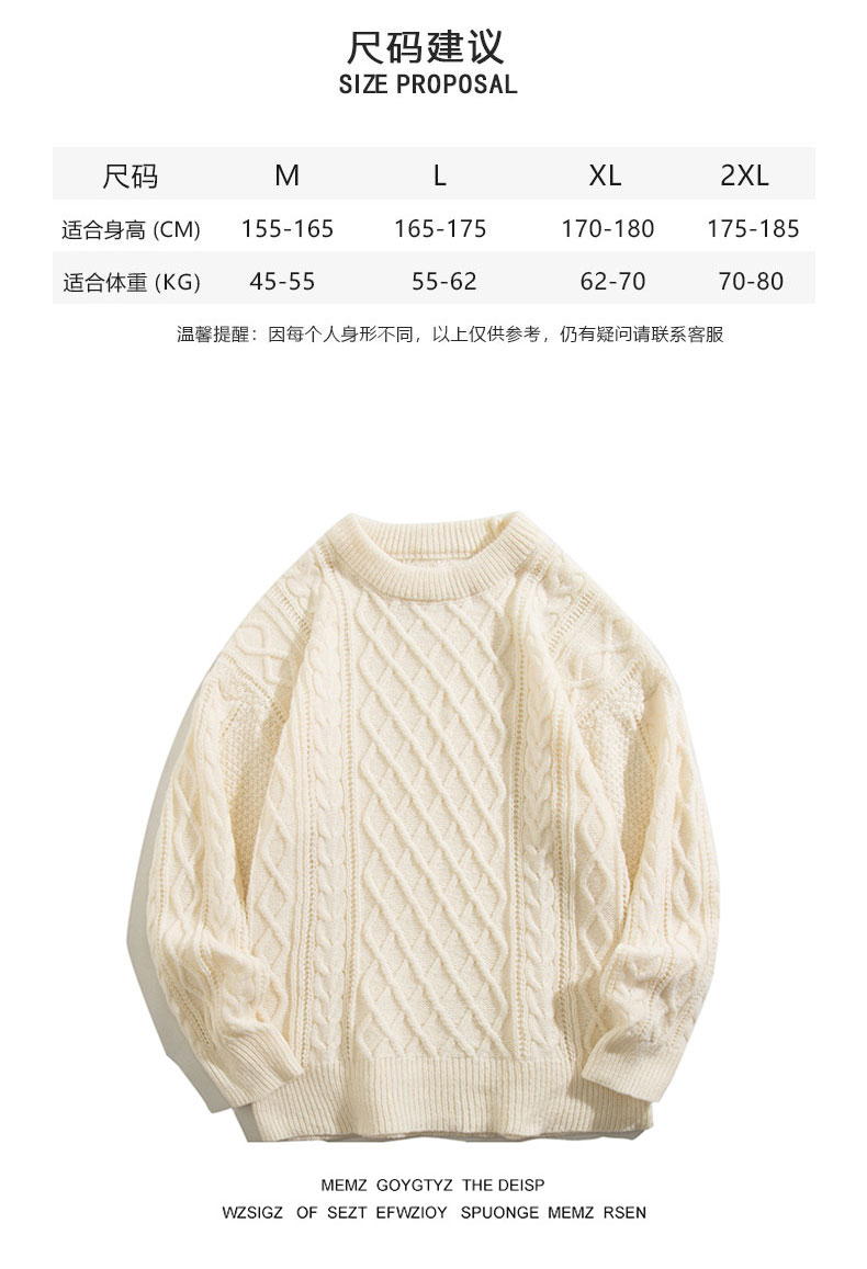2024秋冬新款毛衣男麻花圆领毛衫百搭慵懒风宽松情侣落肩针织衫潮