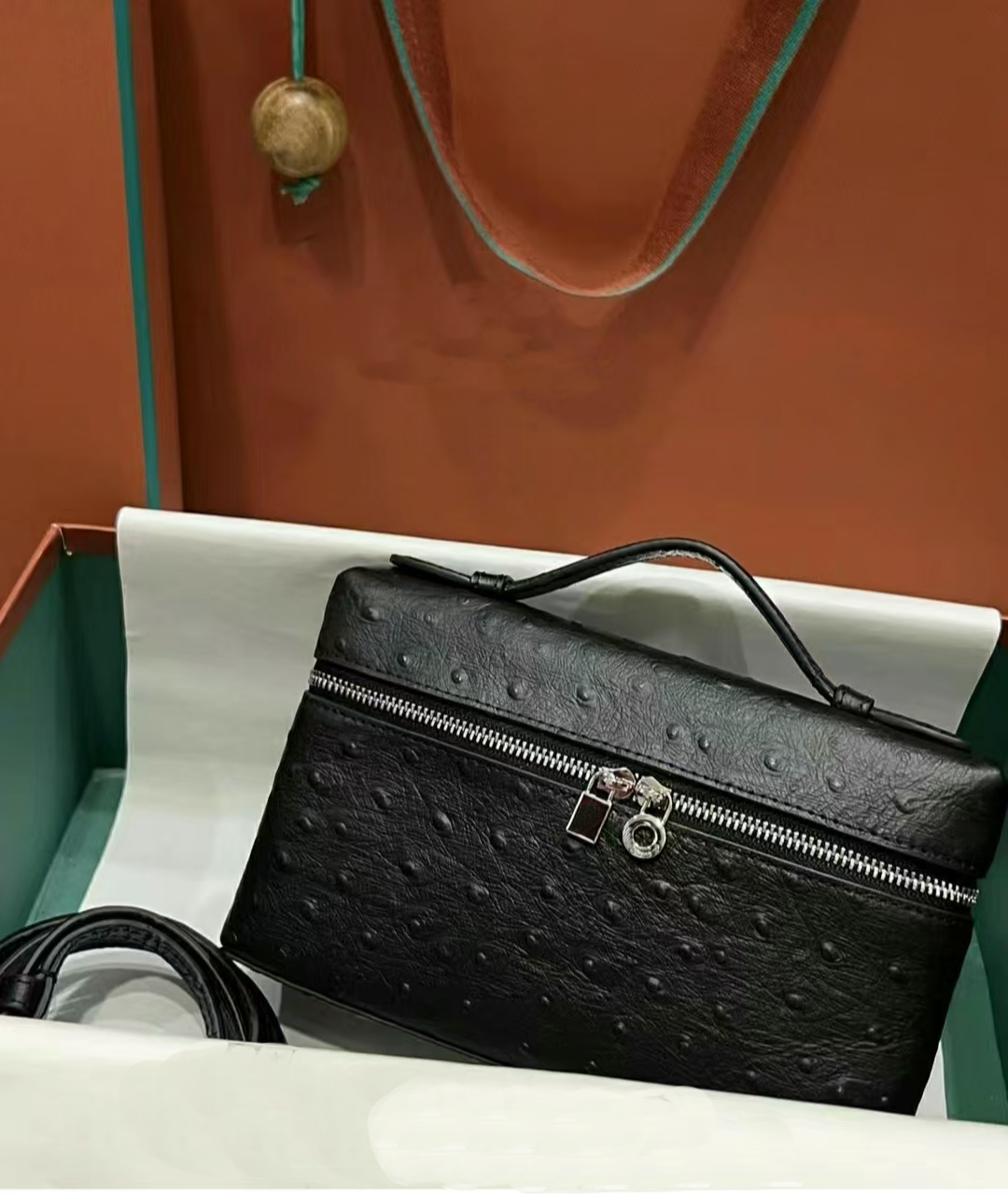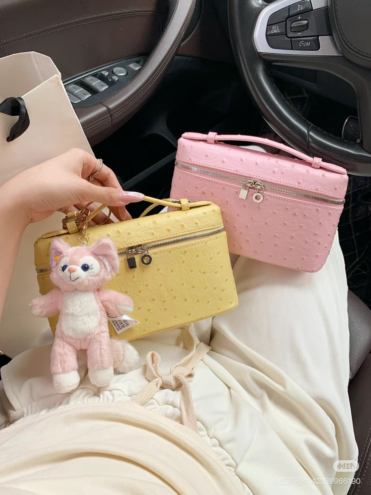 lp19饭盒包鸵鸟纹学生单肩包女2025新款小方包旅行真皮小众设计感