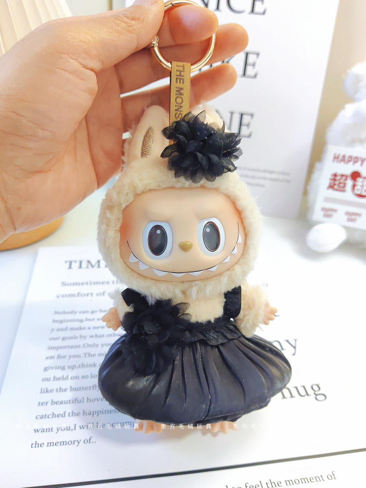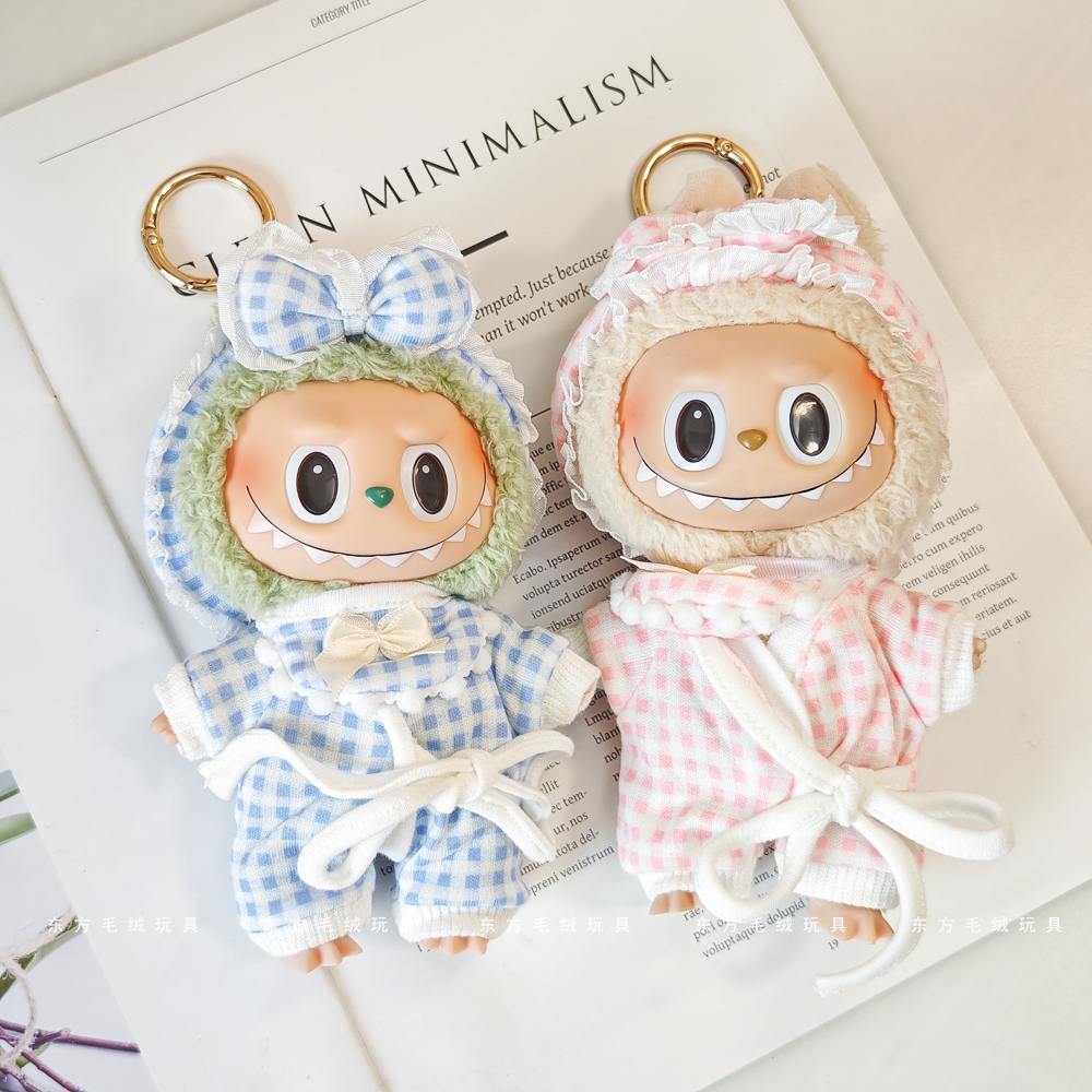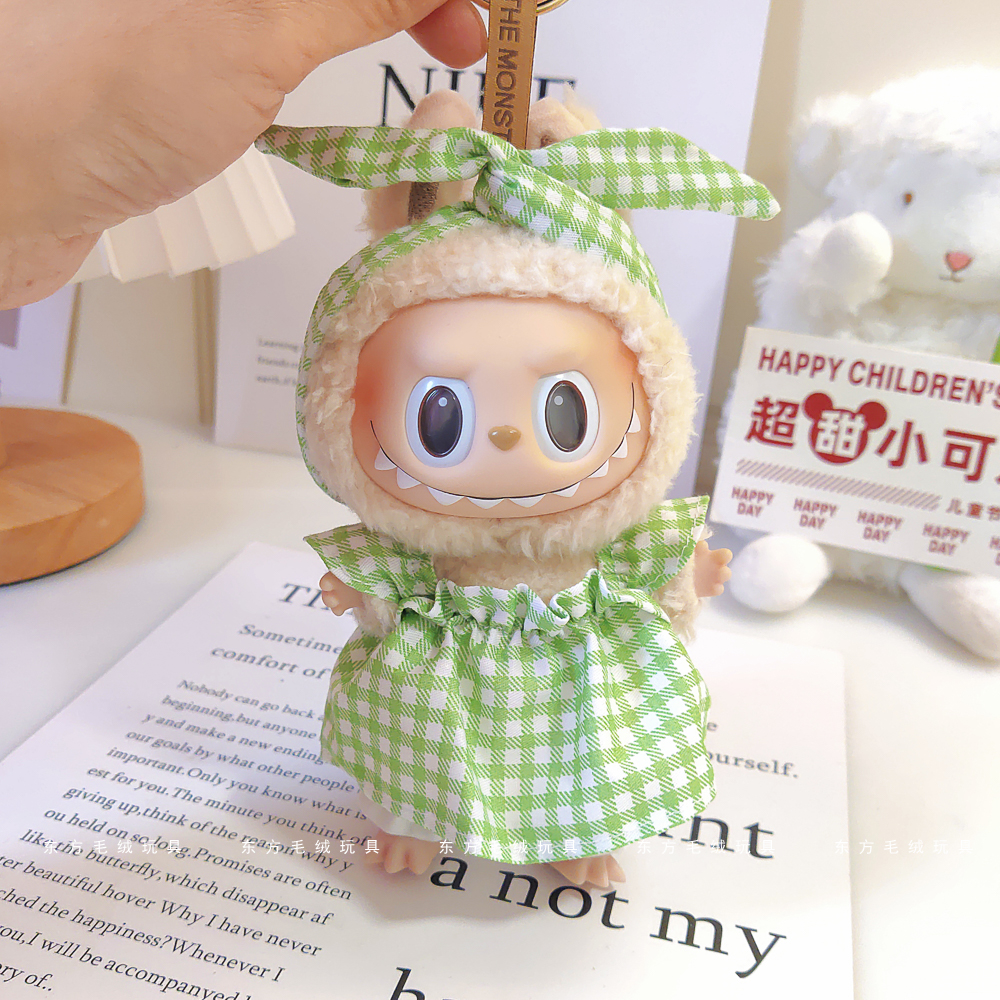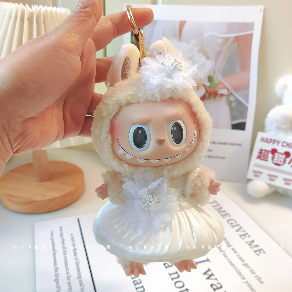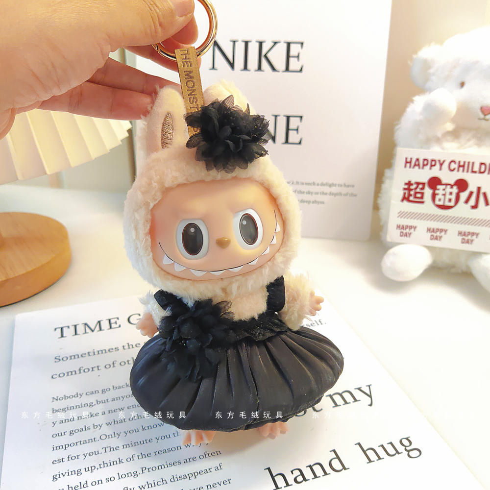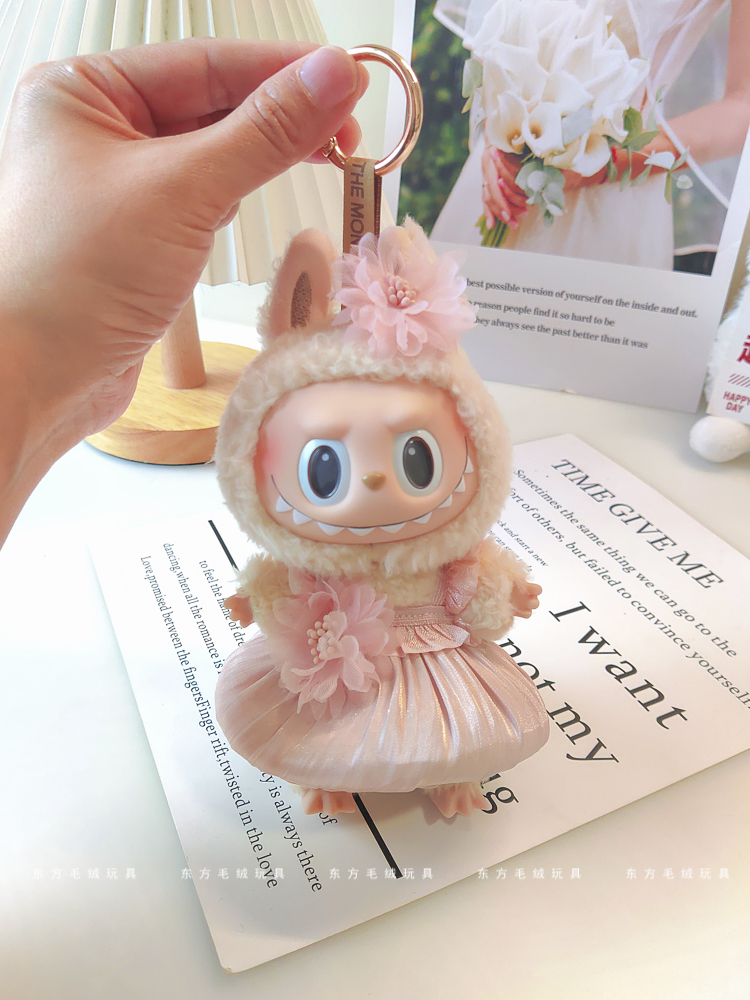 labubu拉布布马卡龙盲盒挂件衣服着替换装搪胶毛绒钥匙扣娃衣粉裙