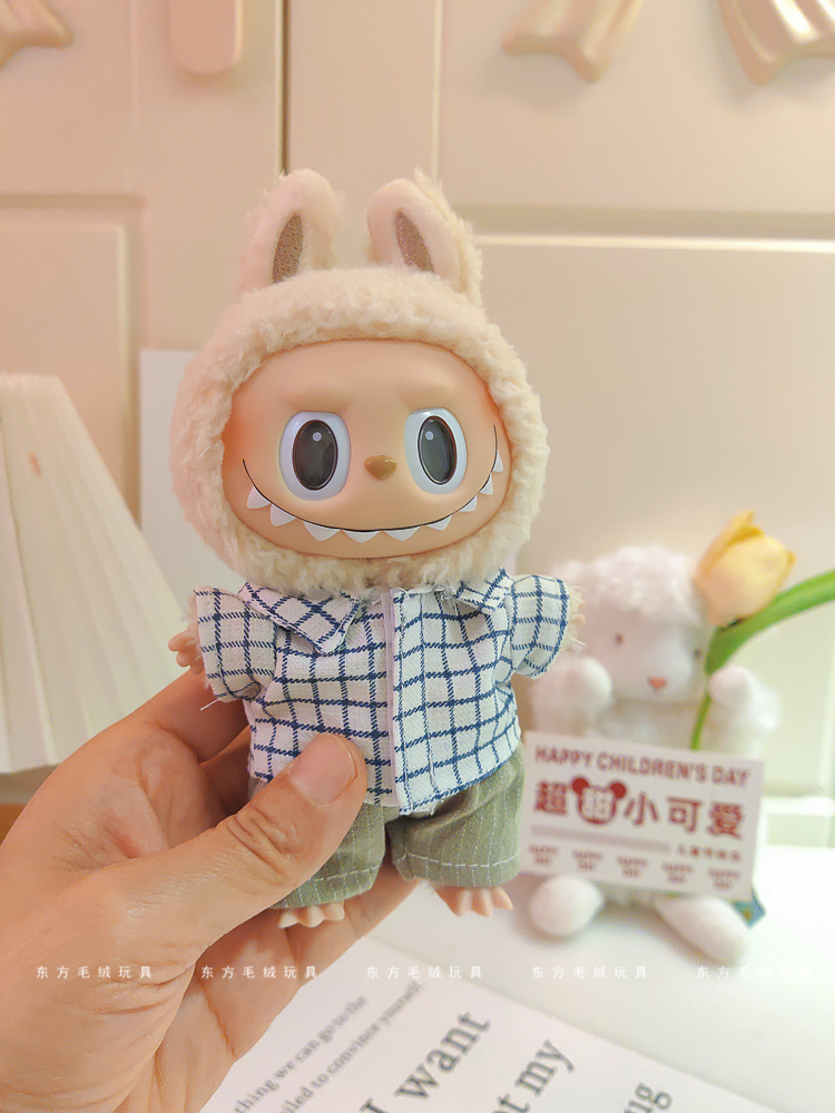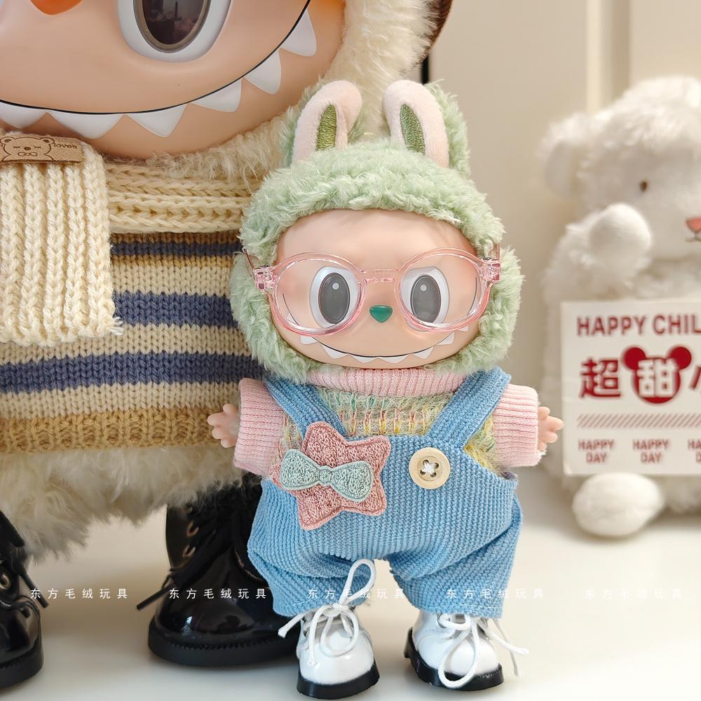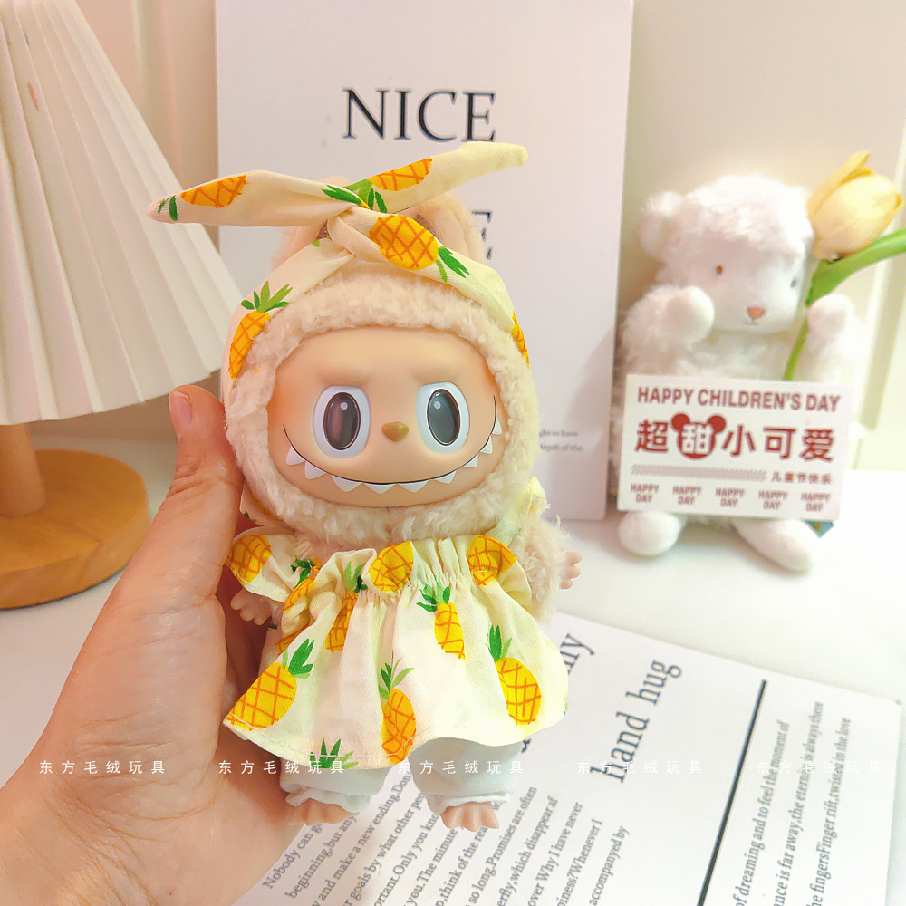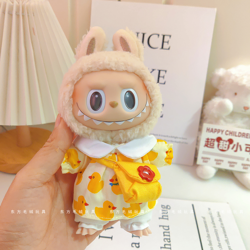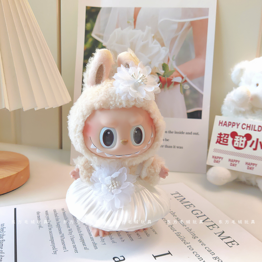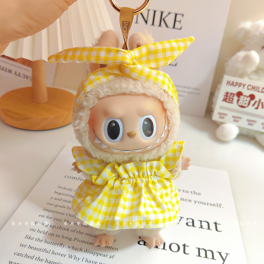 labubu拉布布马卡龙盲盒挂件衣服着替换装搪胶毛绒钥匙扣娃衣粉裙