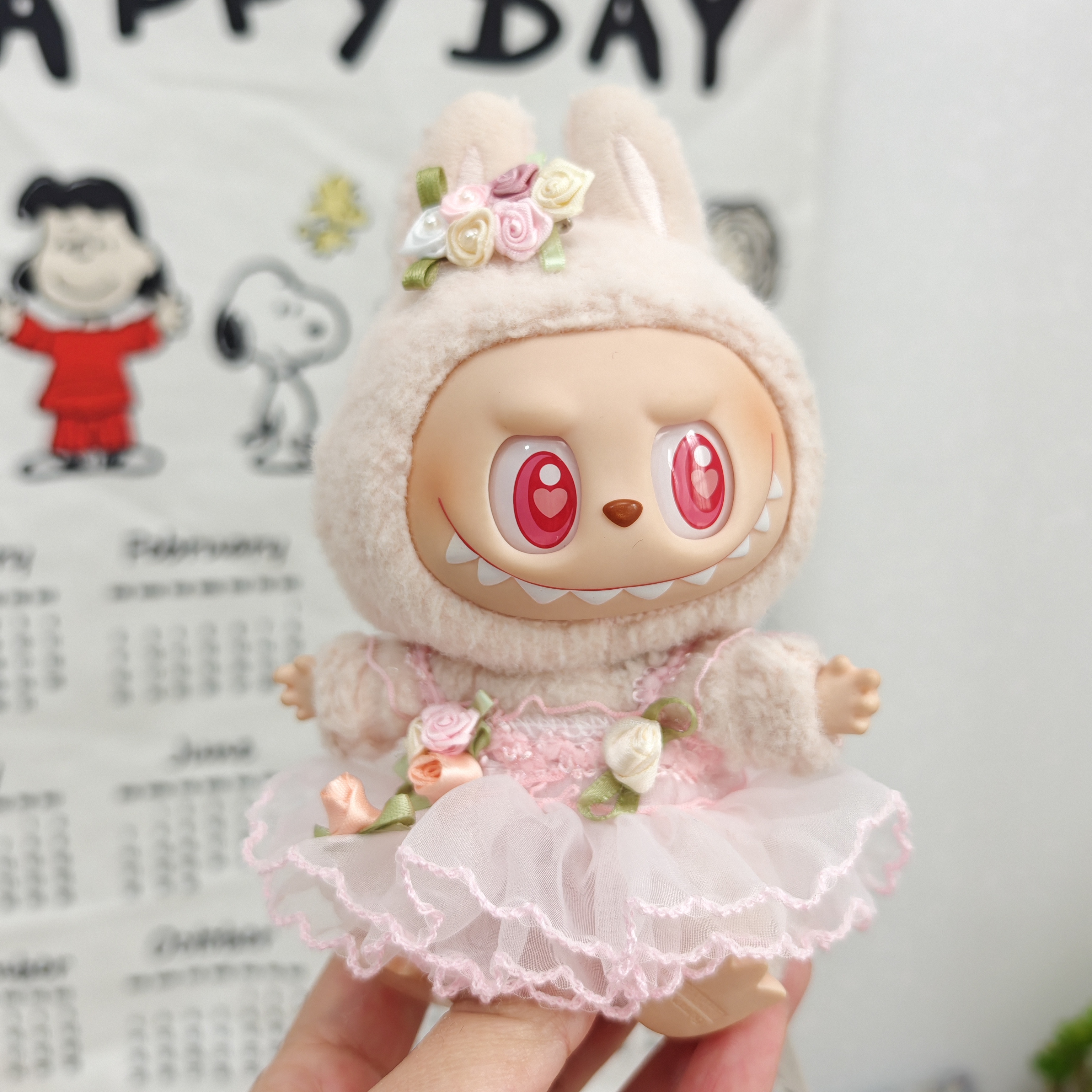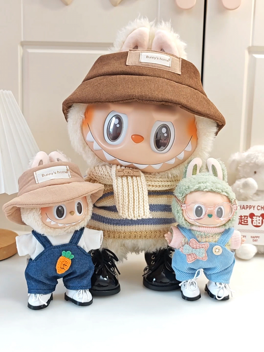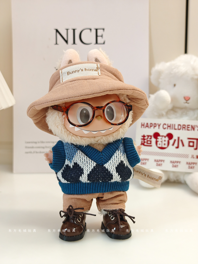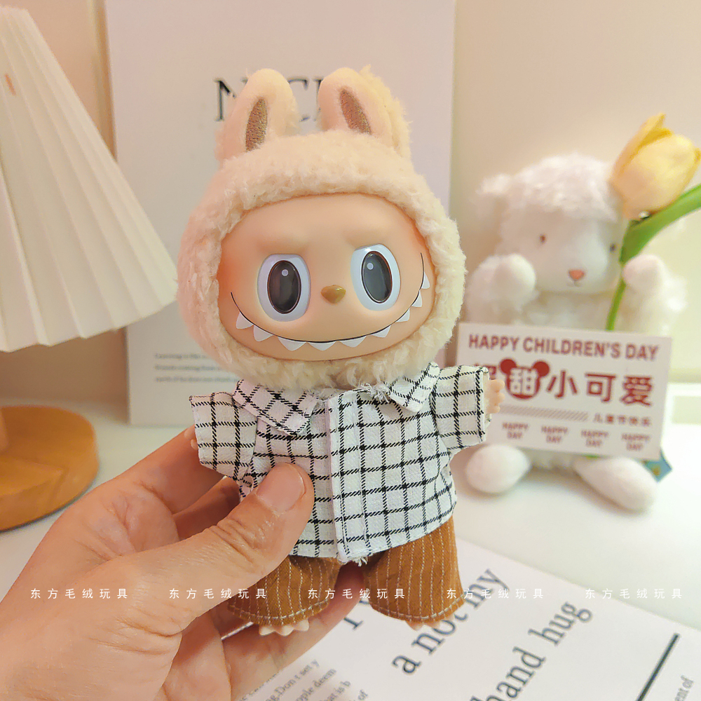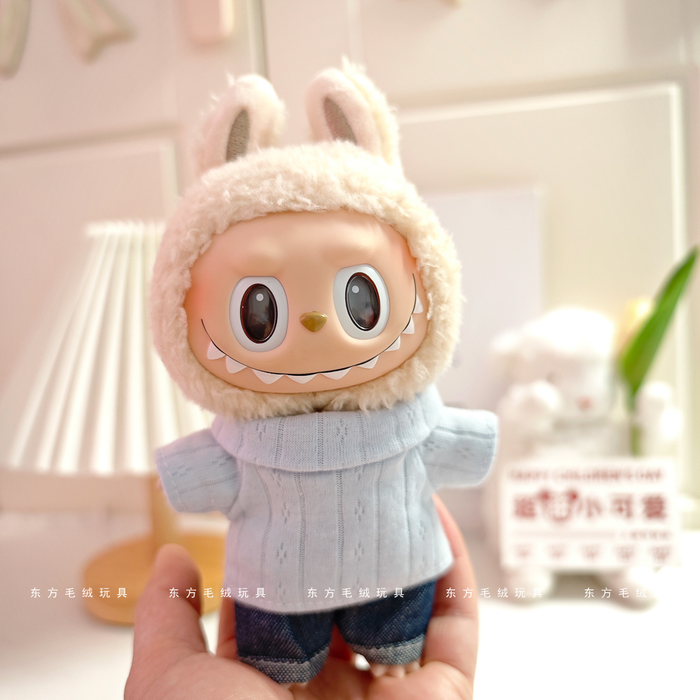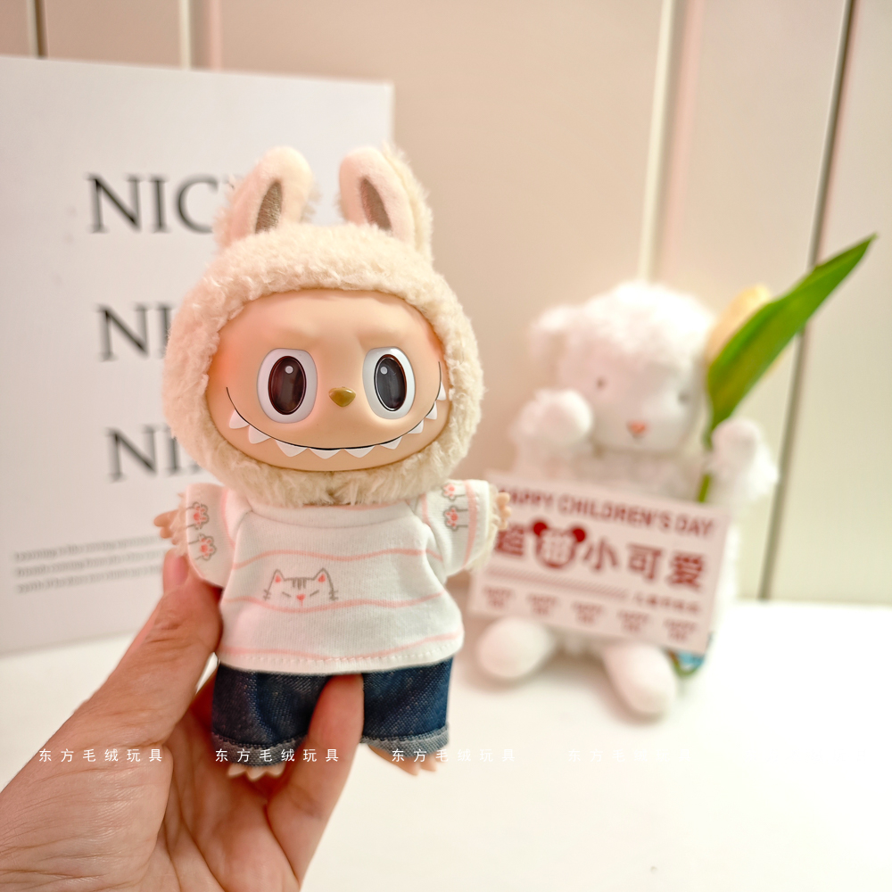 labubu拉布布马卡龙盲盒挂件衣服着替换装搪胶毛绒钥匙扣娃衣粉裙
