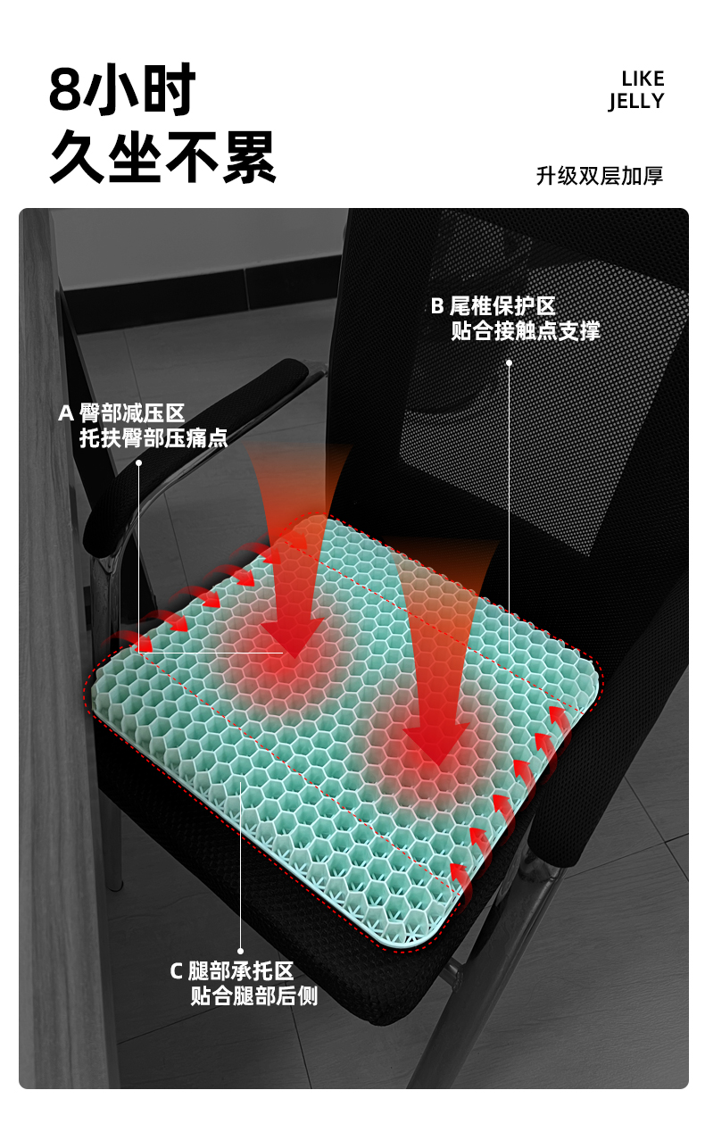 坐垫加厚TPE蜂窝凝胶家用椅子垫办公室久坐夏季防屁股痛冰垫透气