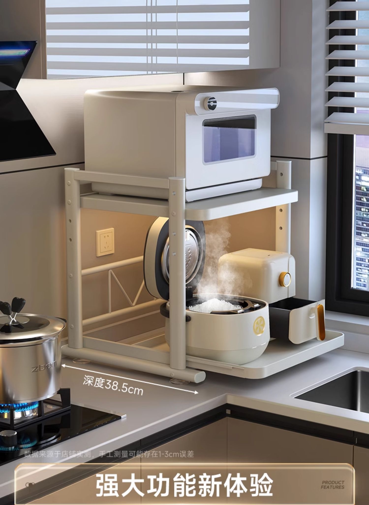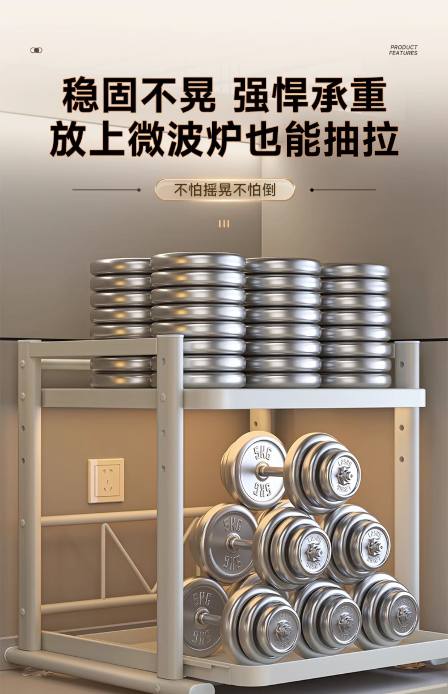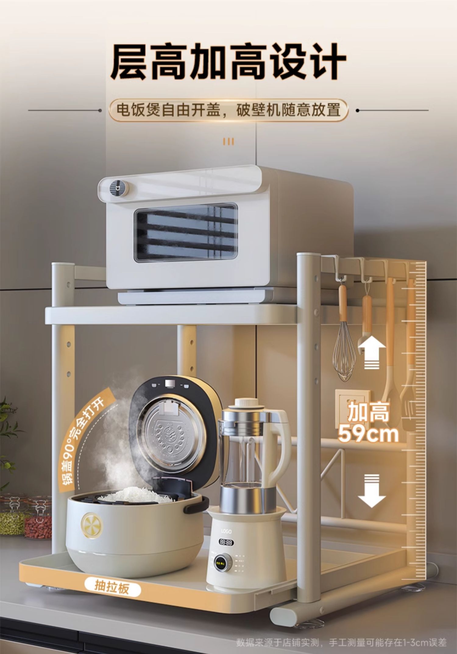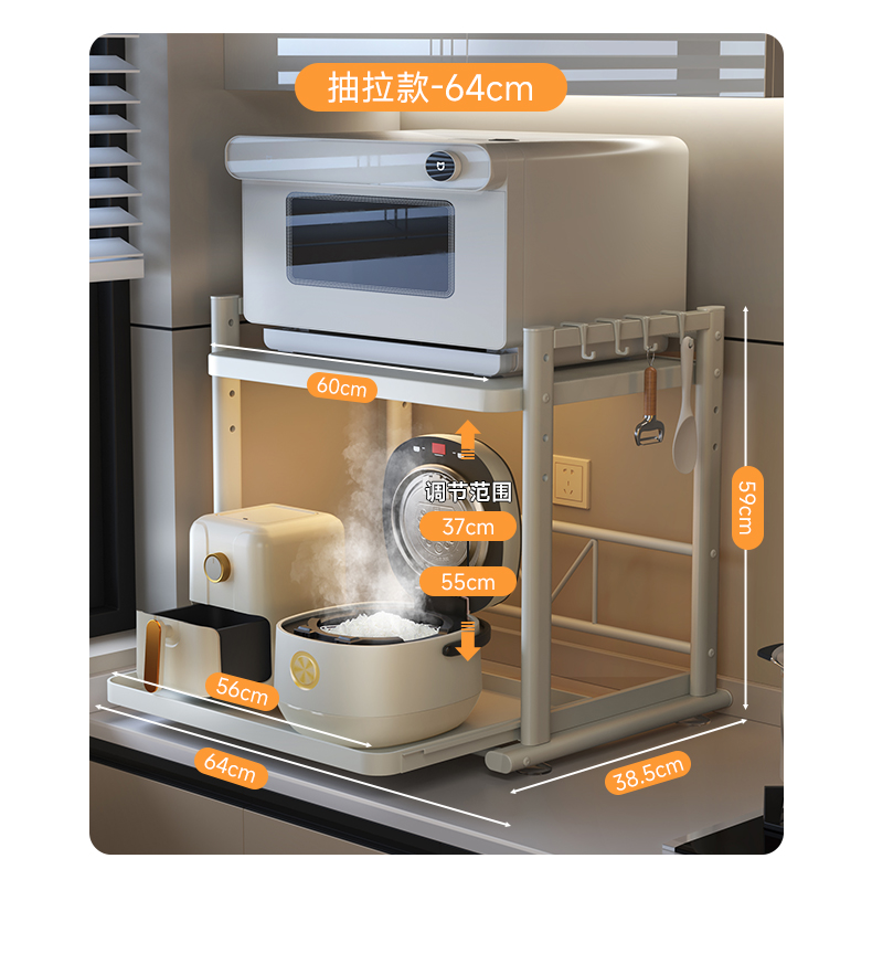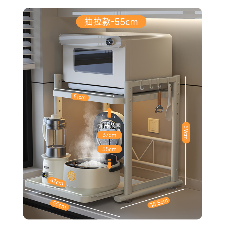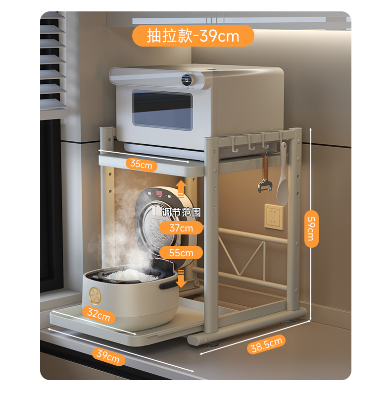 德国品质可抽拉电饭煲置物架厨房微波炉支架台面多锅烤箱收纳架子