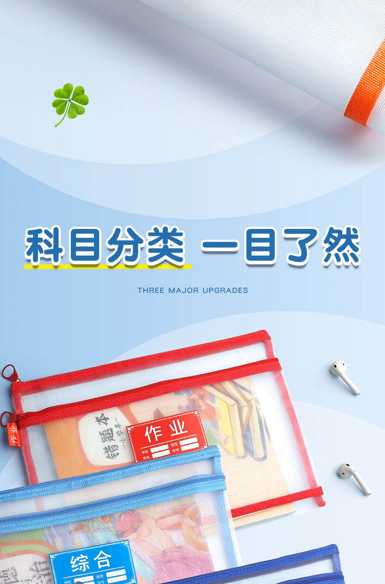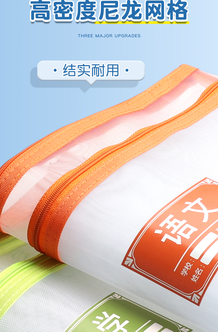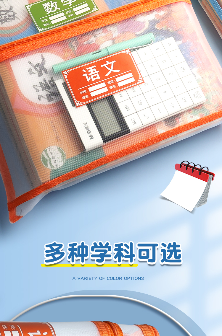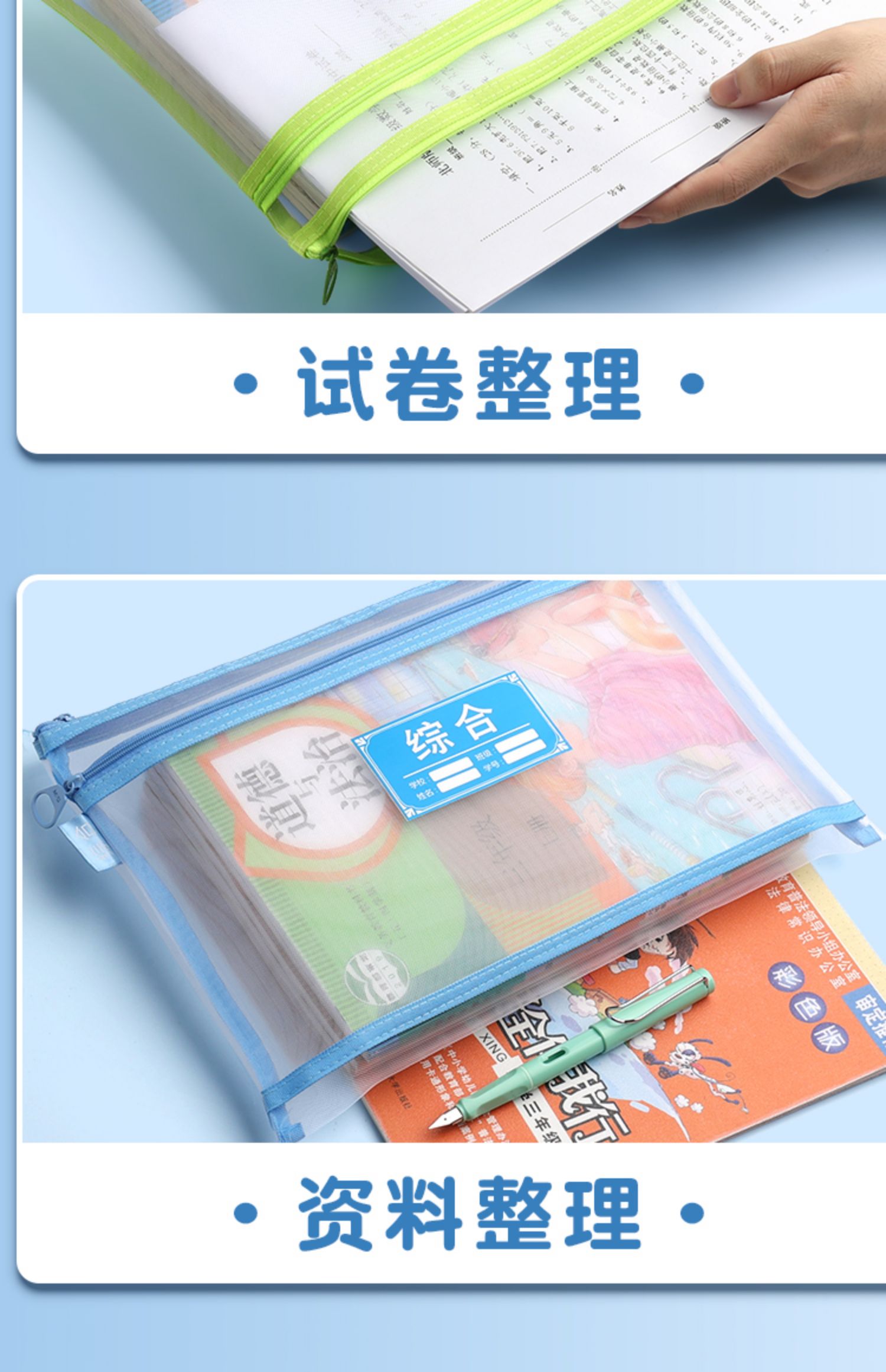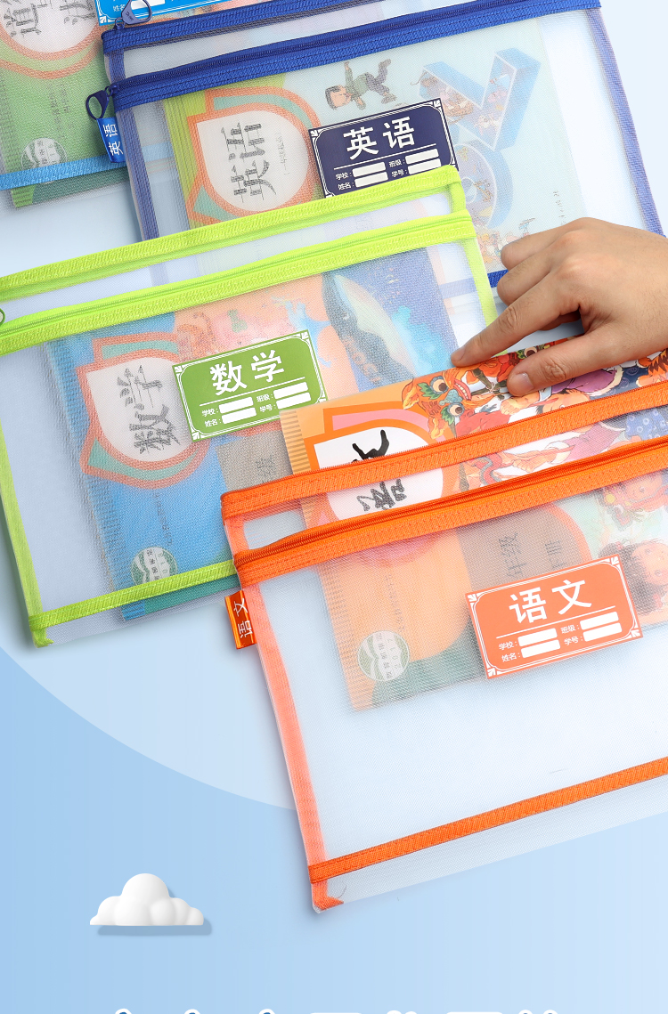 晨光学科科目分类文件袋拉链式双层大容量小学生用资料书本课本分科书袋试卷收纳袋学生装卷子袋子作业A4网纱