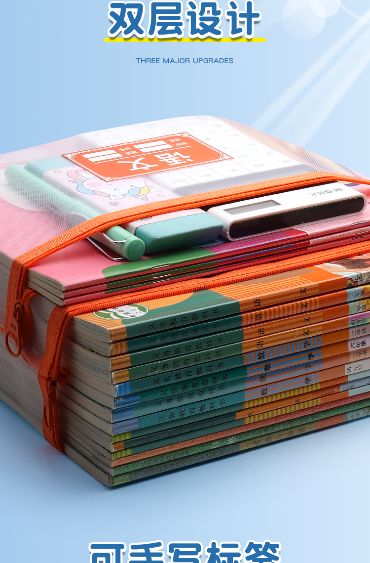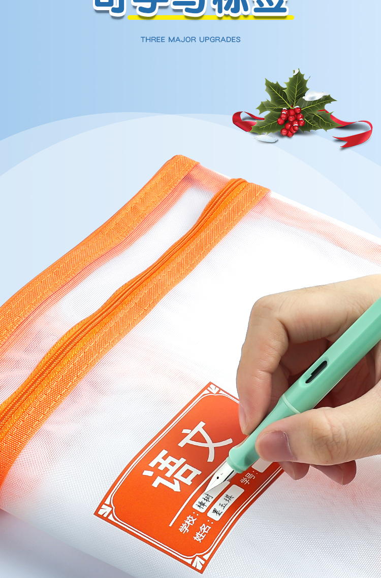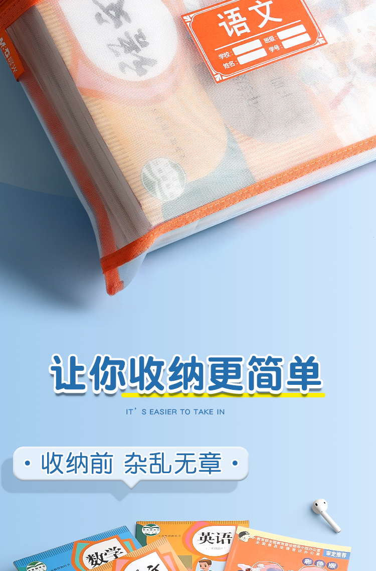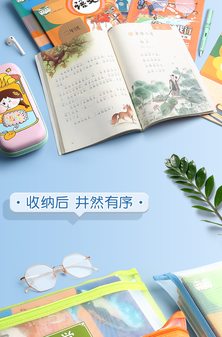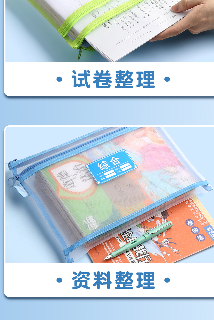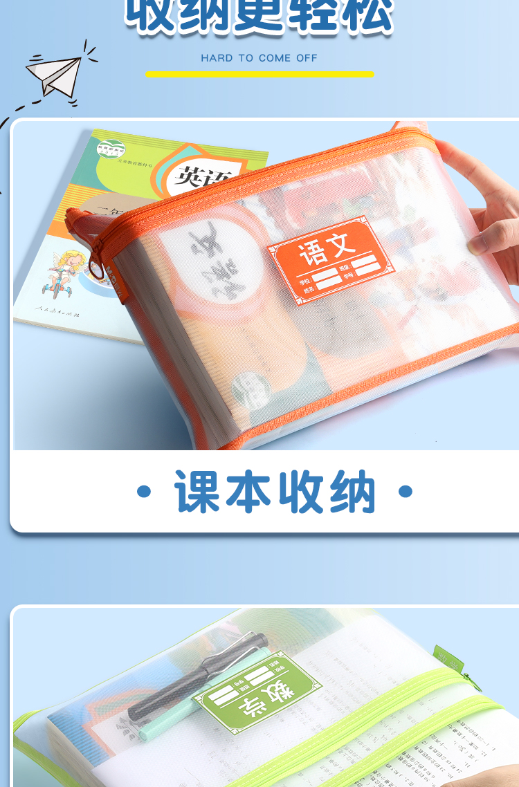 晨光学科科目分类文件袋拉链式双层大容量小学生用资料书本课本分科书袋试卷收纳袋学生装卷子袋子作业A4网纱