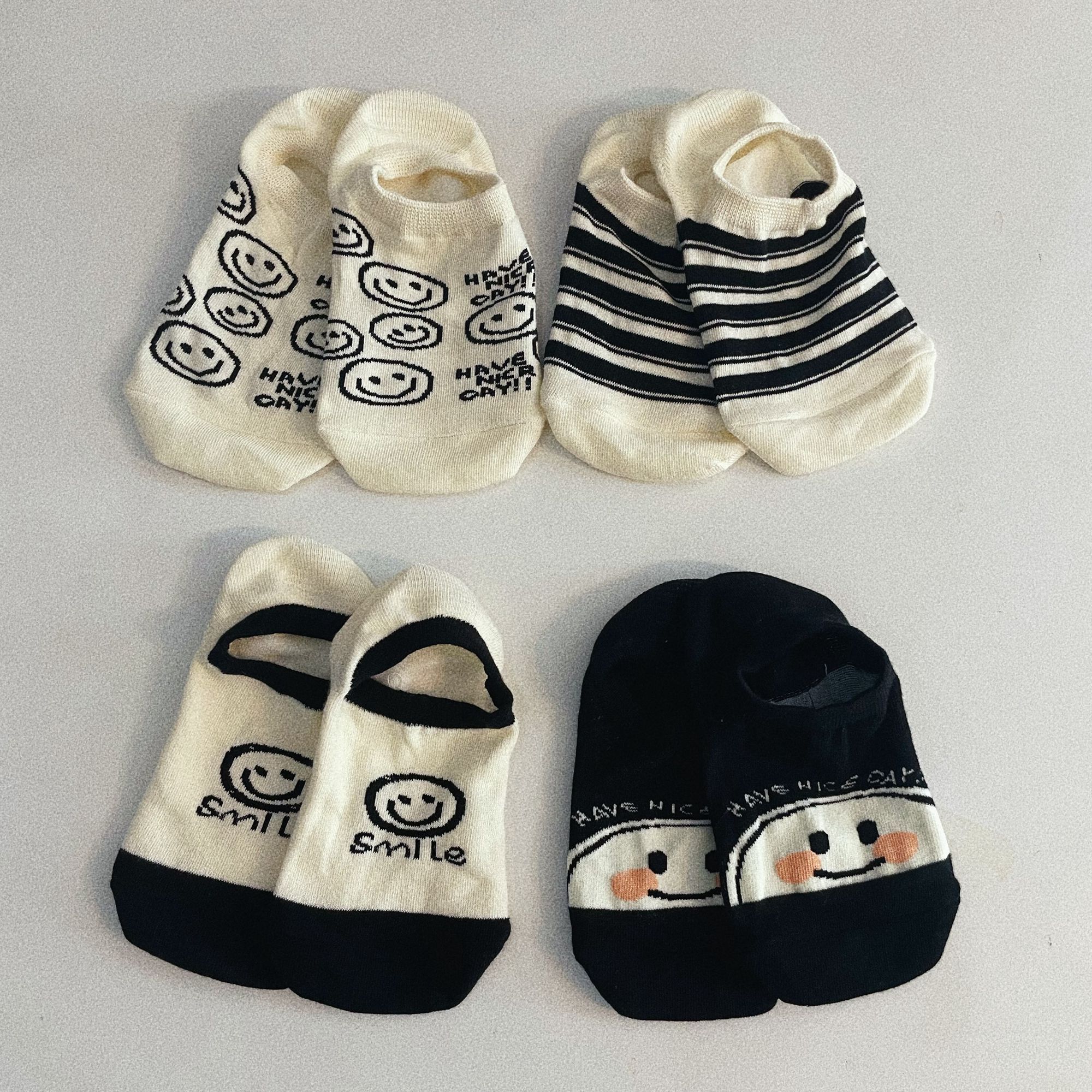袜子女短袜ins薄夏季韩国船袜纯棉隐形浅口薄款可爱笑脸夏天黑色