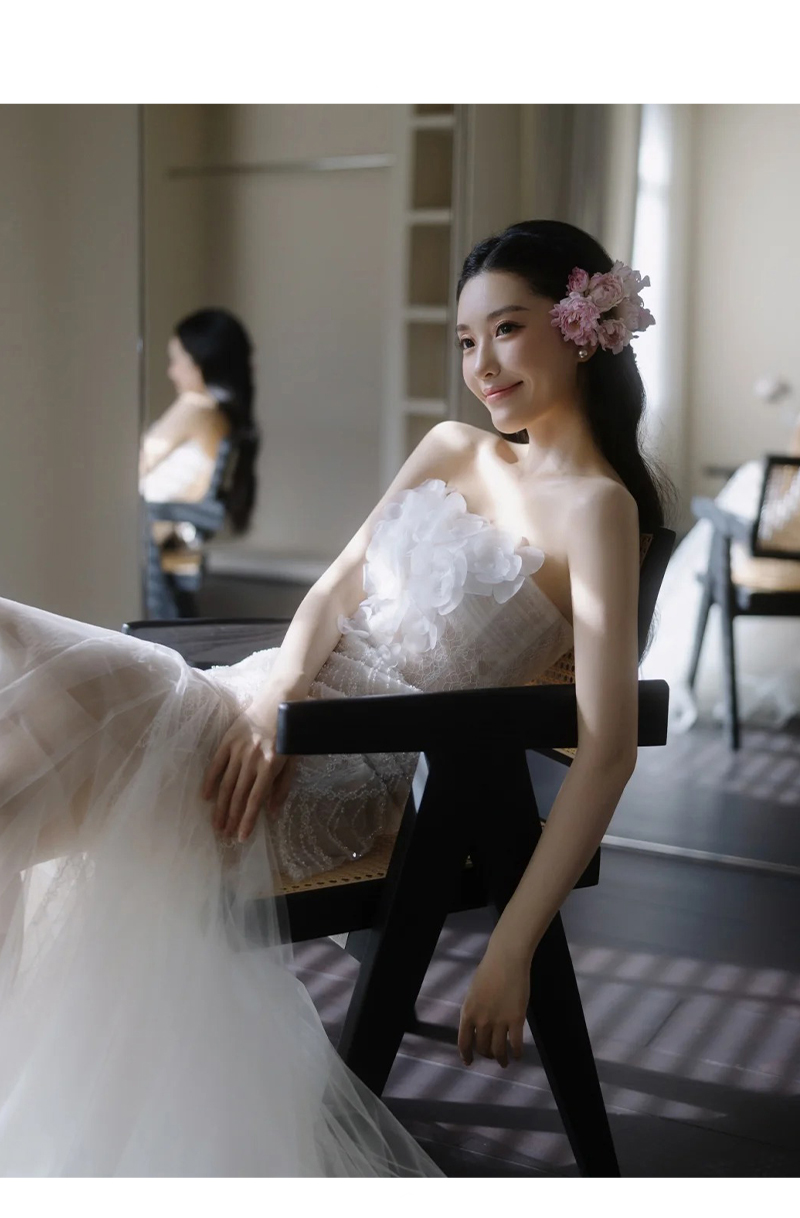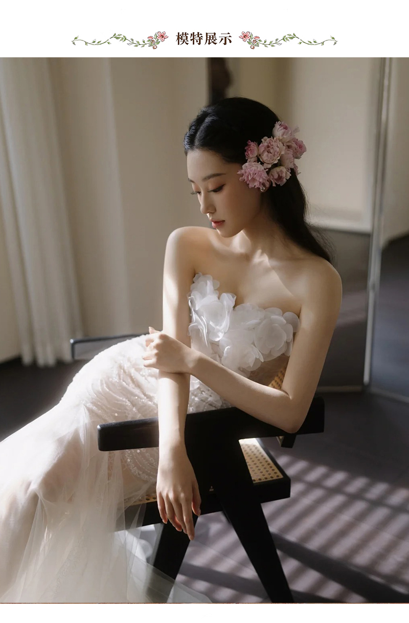2025新款白色抹胸轻婚纱新娘订婚生日晚礼服裙女超仙鱼尾裙高级感