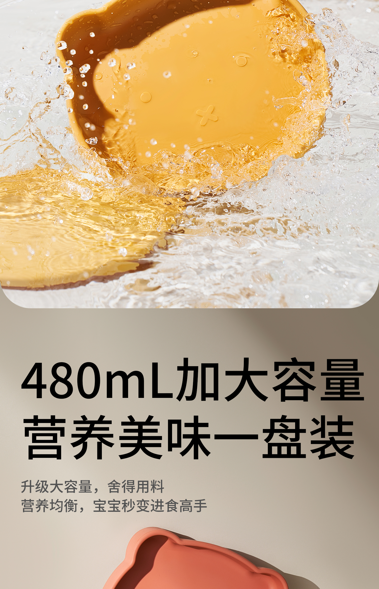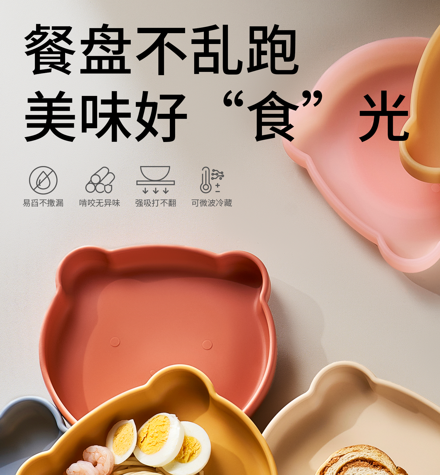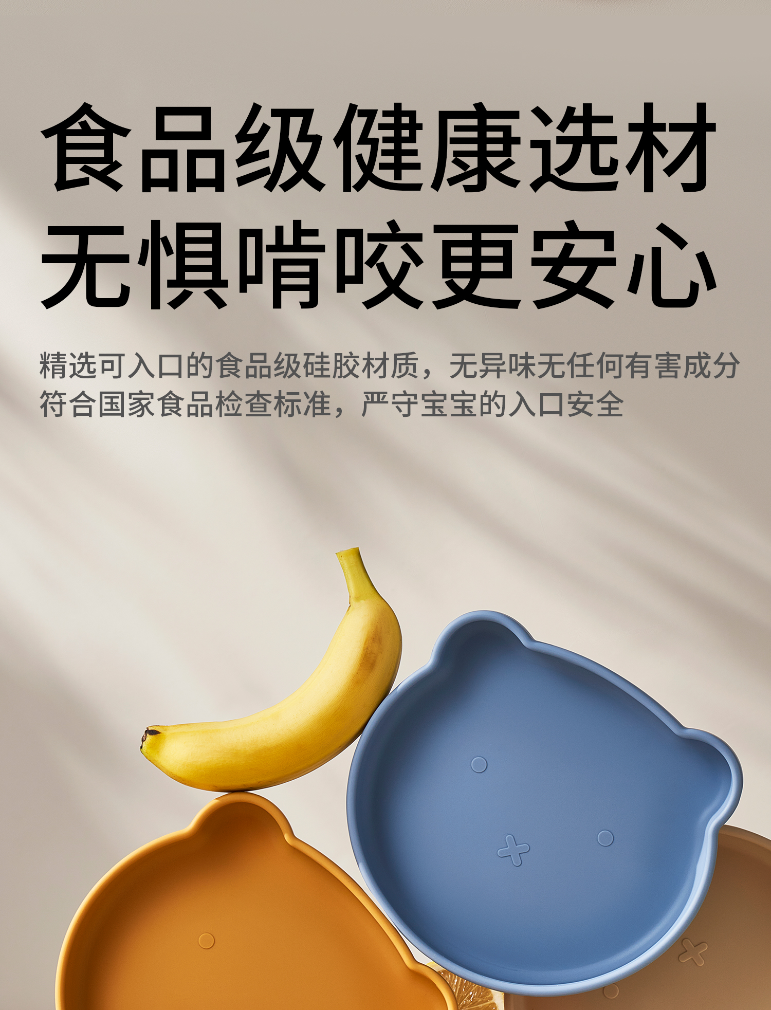 宝宝餐盘硅胶吸盘一体式自主进食防摔儿童小熊餐具辅食碗婴儿专用