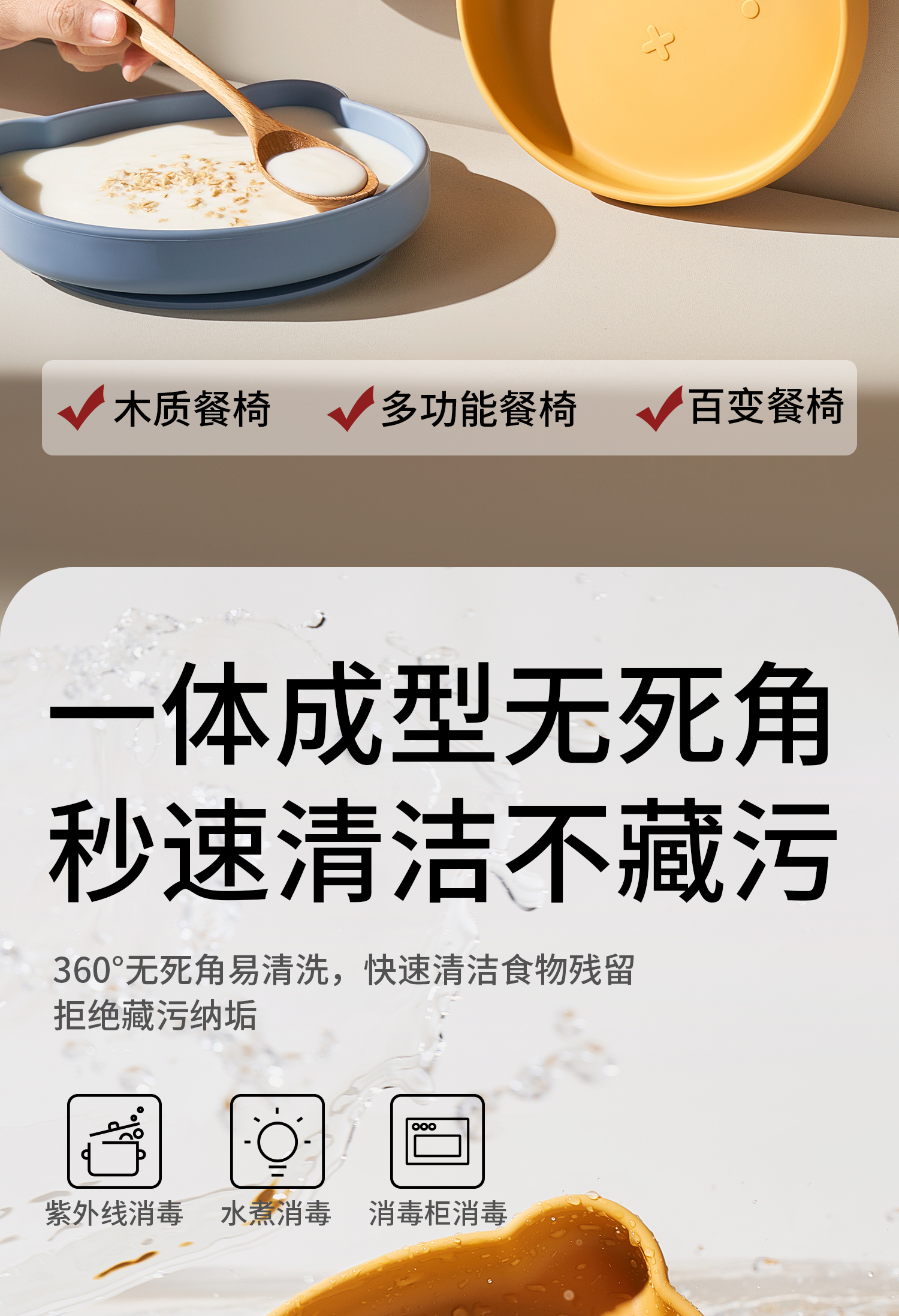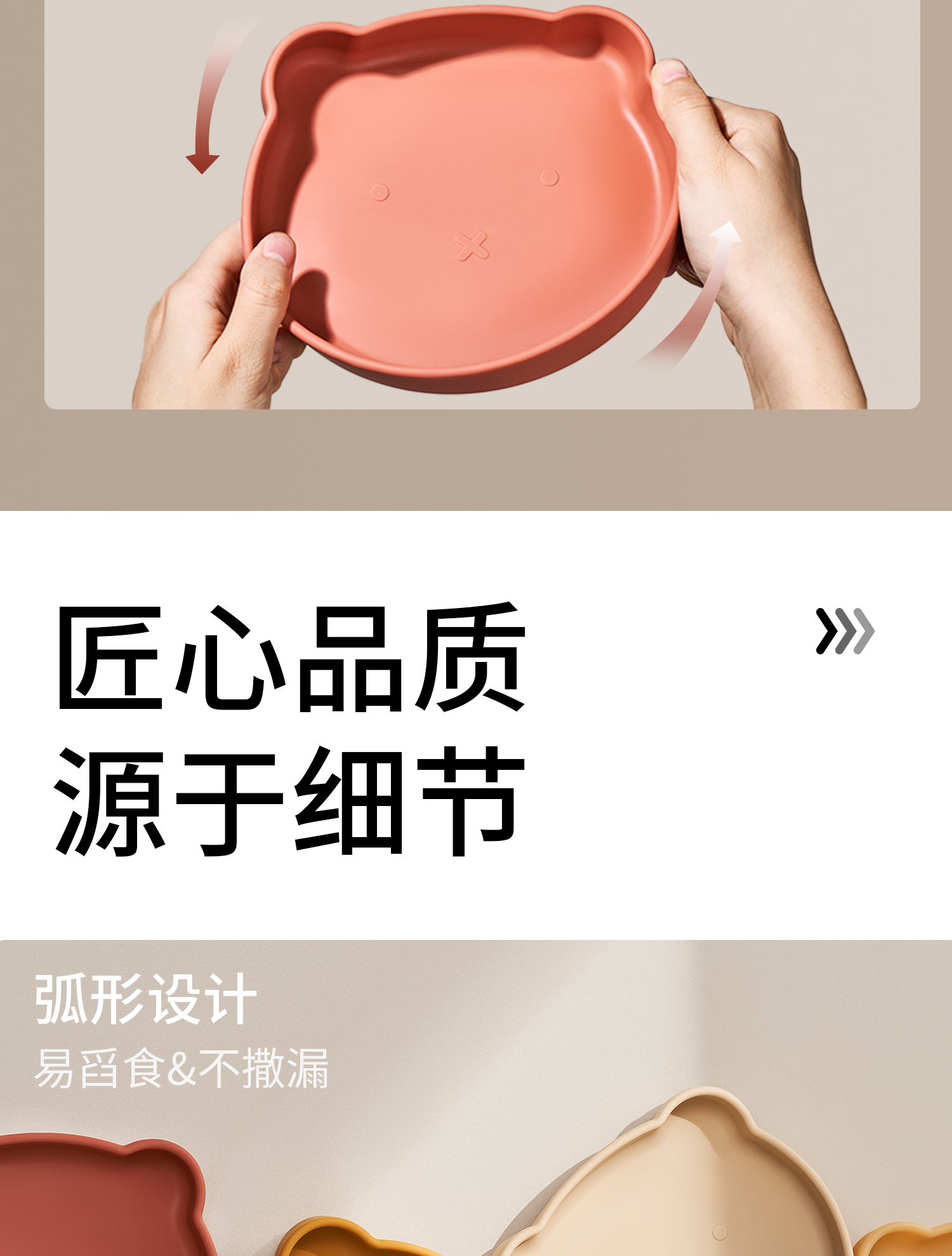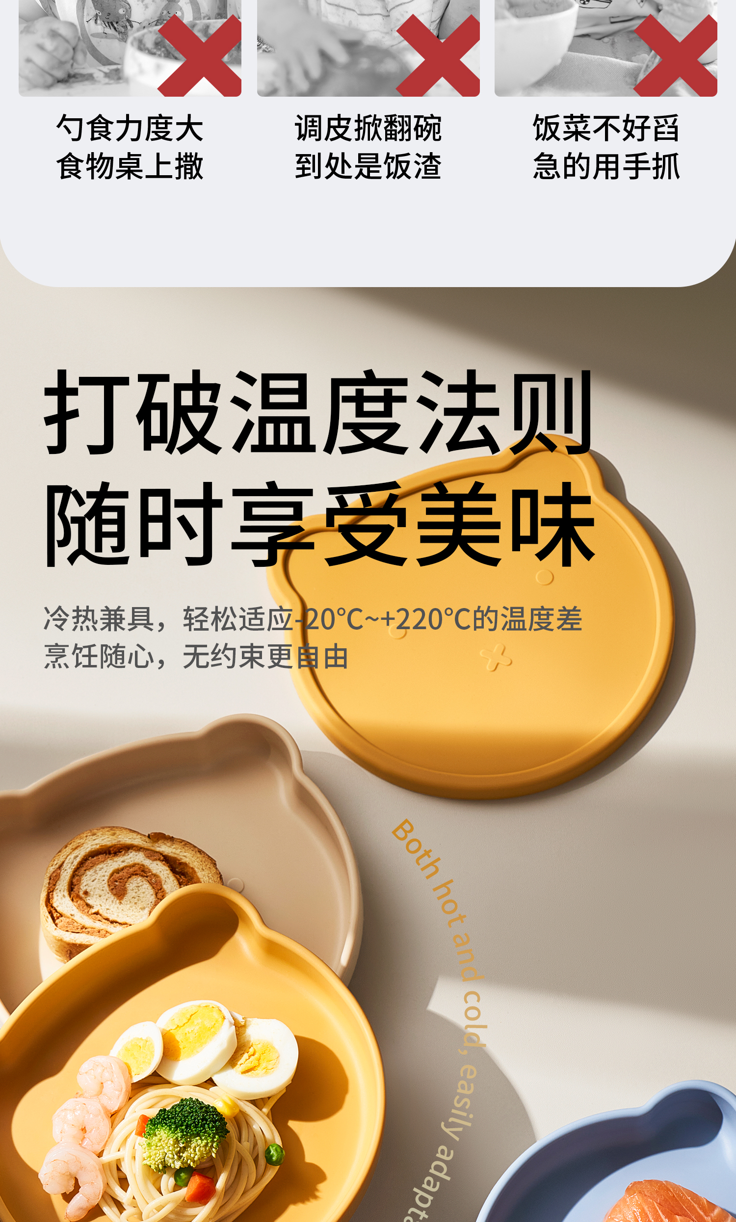 宝宝餐盘硅胶吸盘一体式自主进食防摔儿童小熊餐具辅食碗婴儿专用
