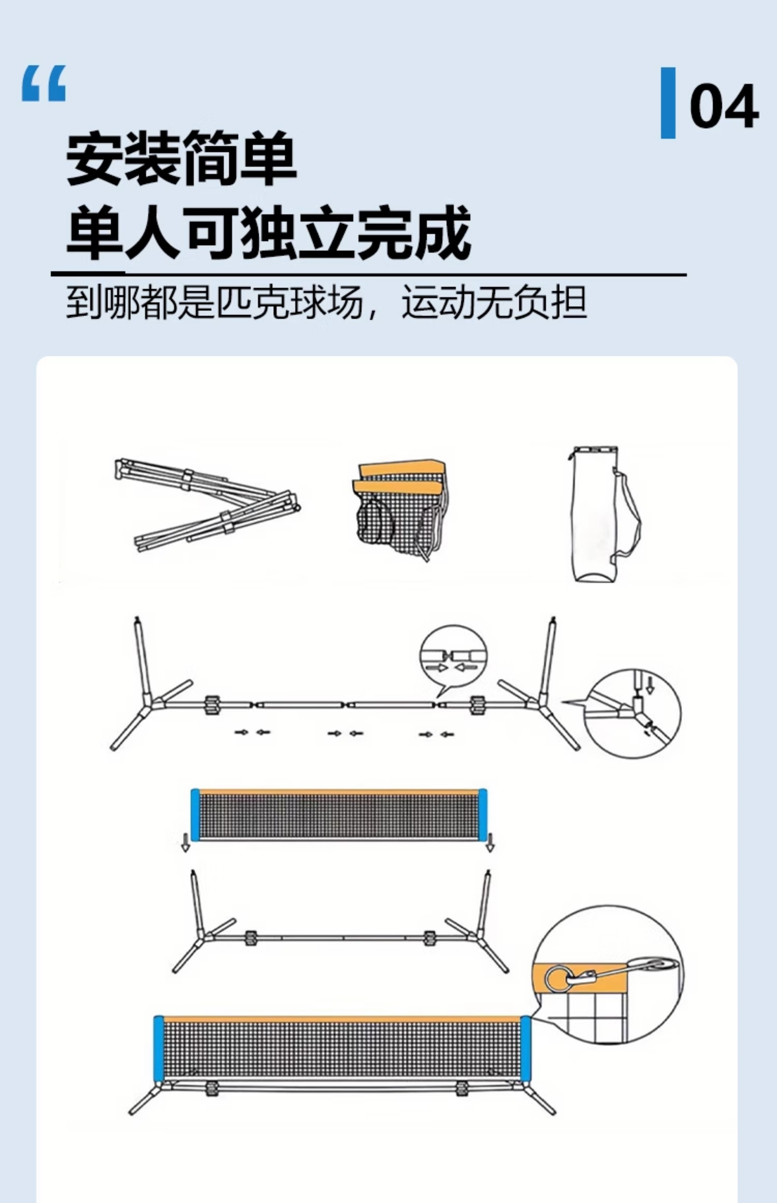 迪维斯匹克球网架便携式pickleball亲子室内户外娱乐训练球网全套