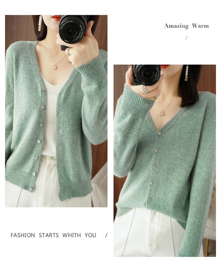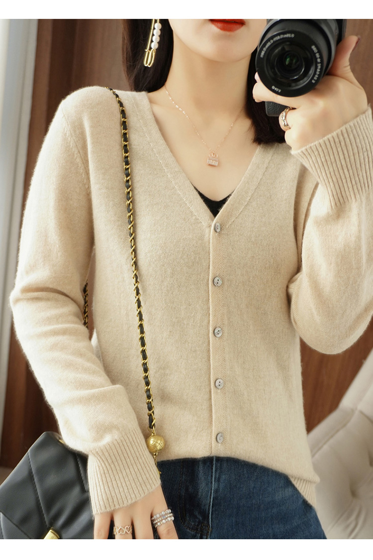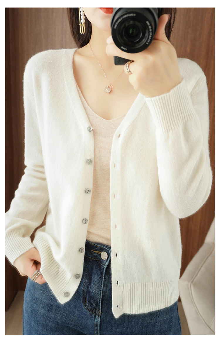 秋季新款开衫女V领羊绒上衣宽松百搭纯色毛衣薄款针织空调衫外套