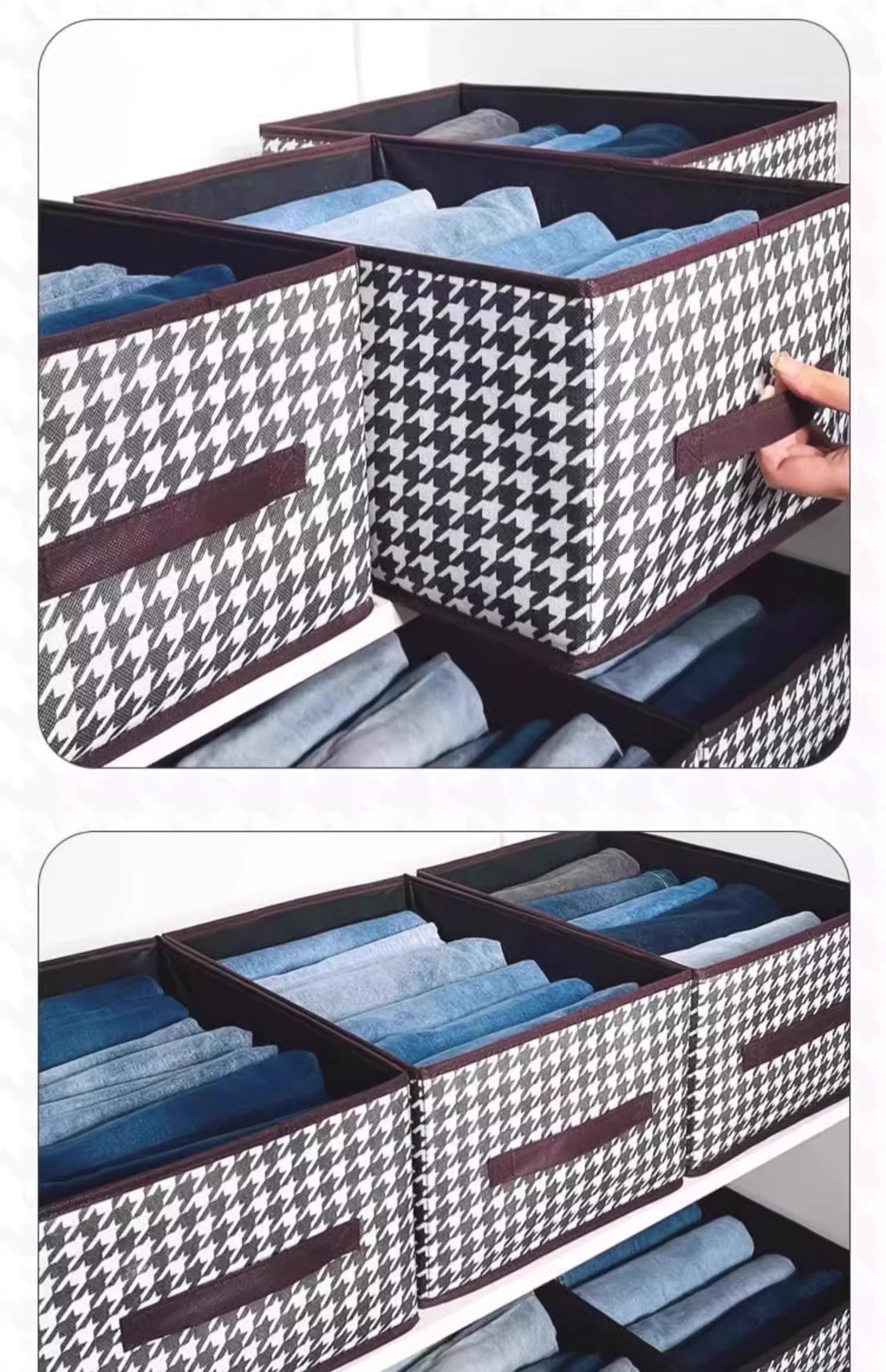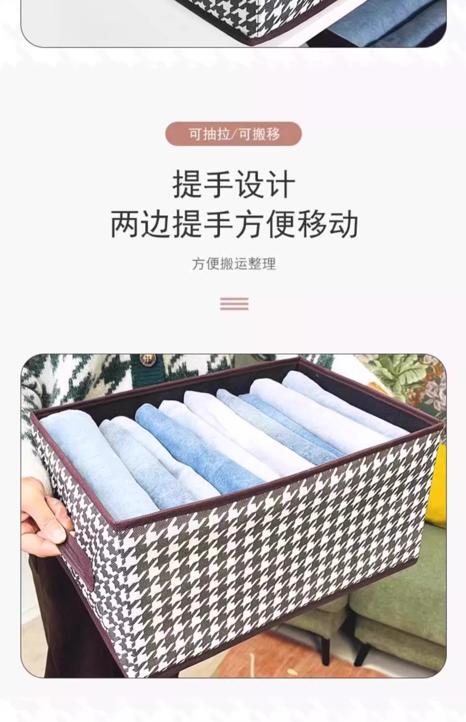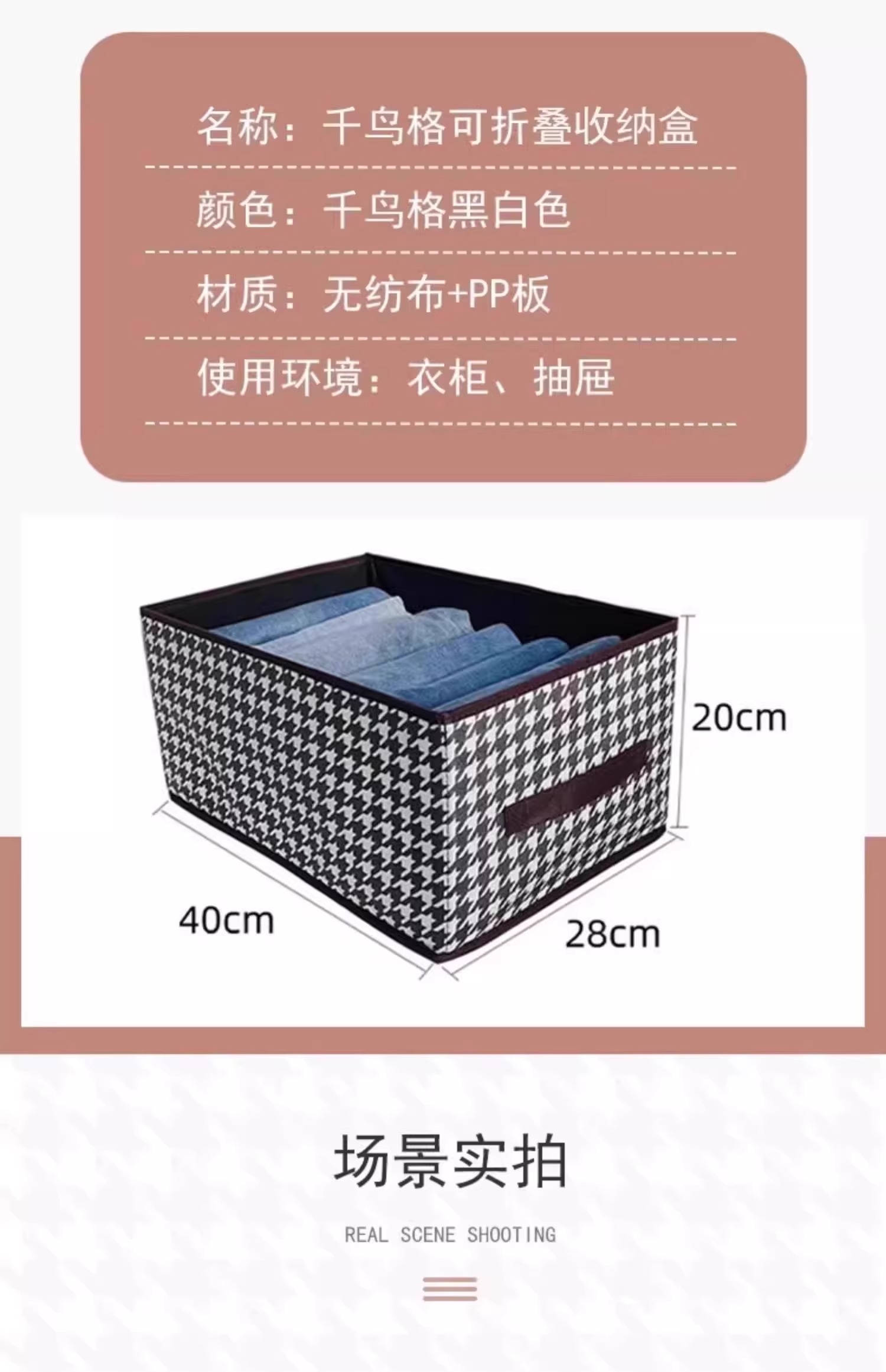 千鸟格布艺收纳盒耐磨家用展柜衣物货架整理防尘折叠服装货架衣箱