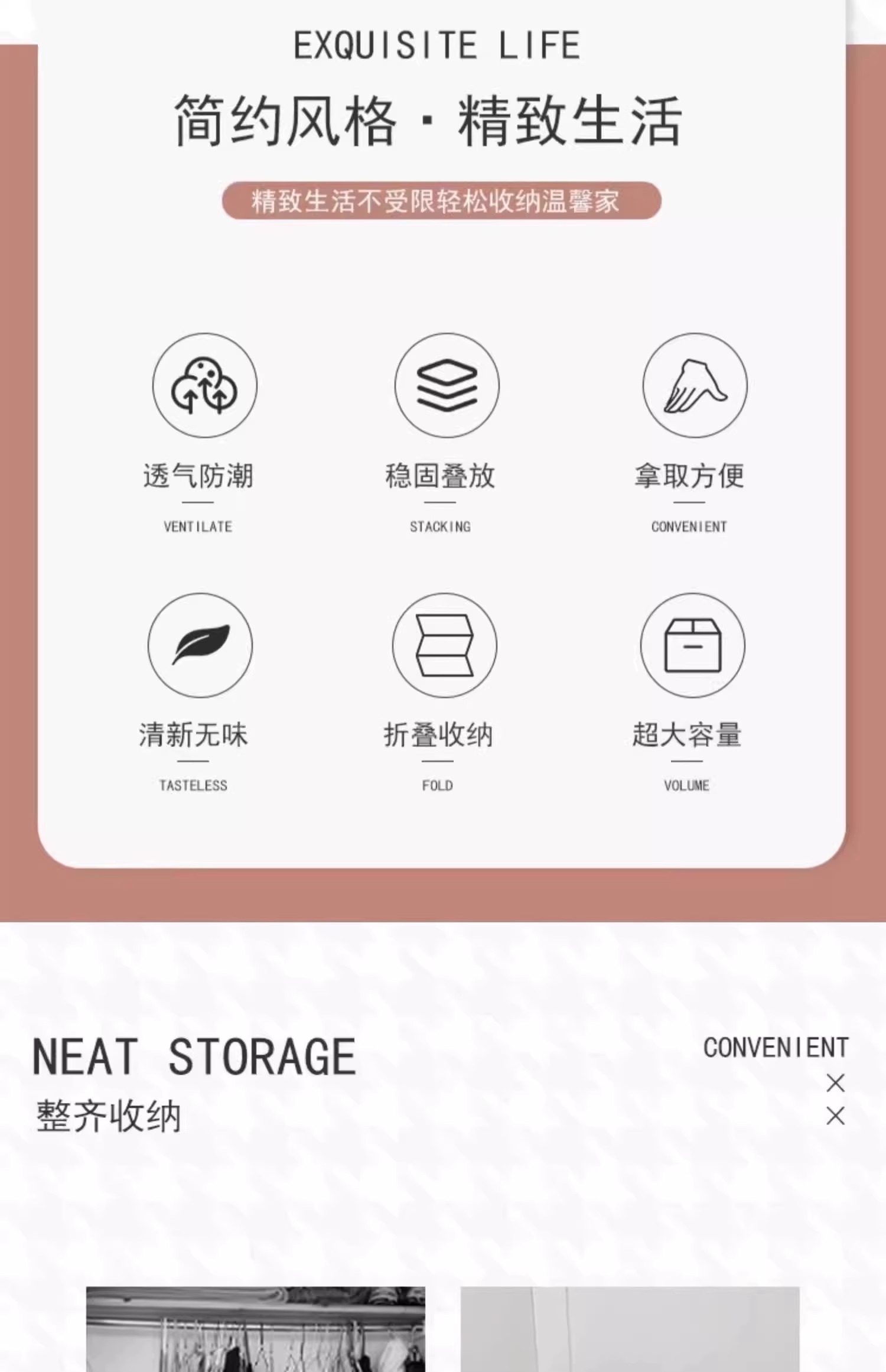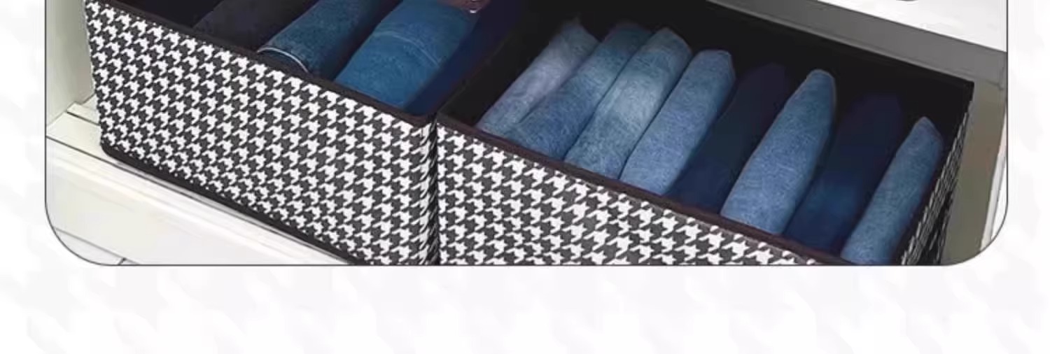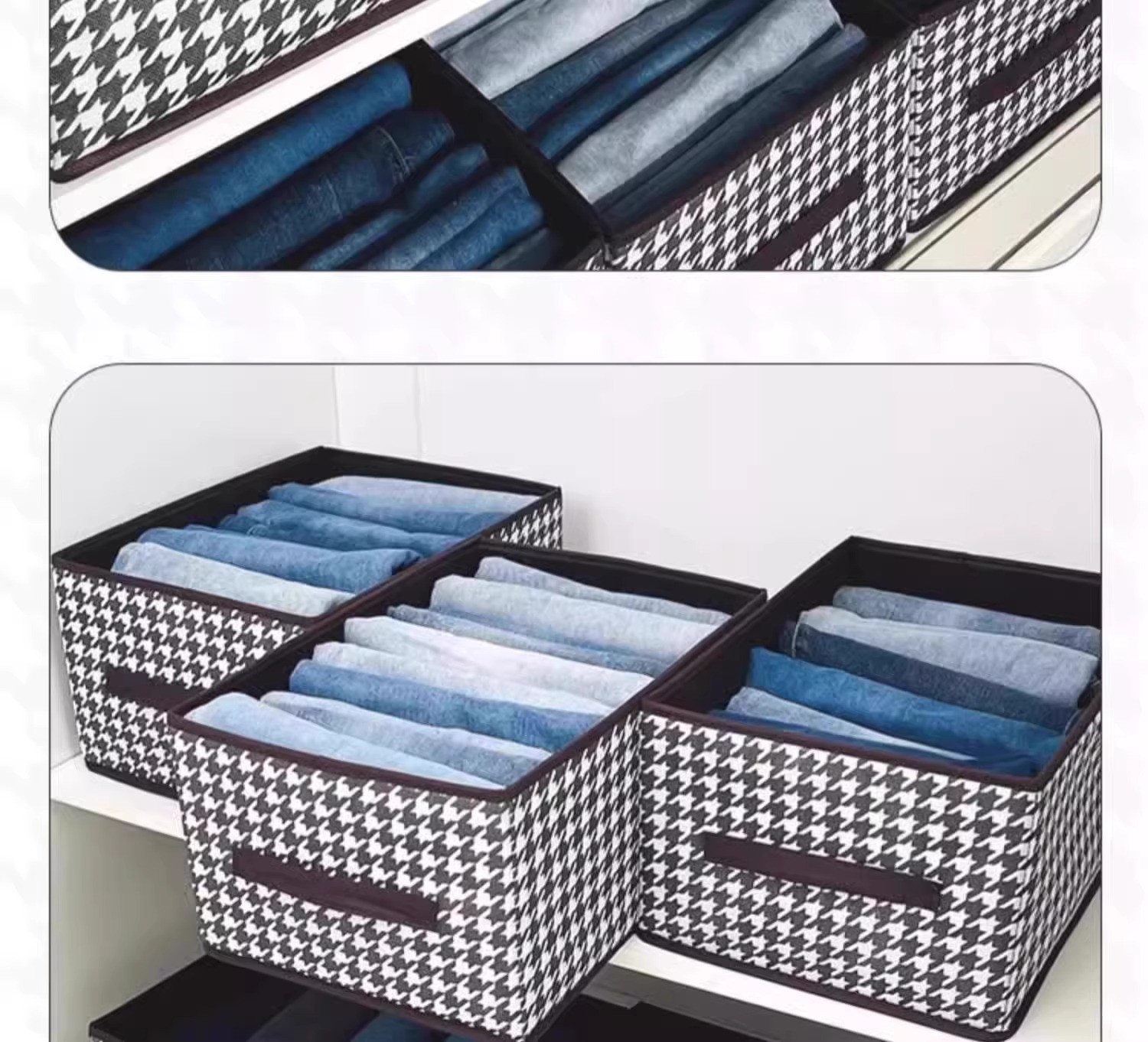 千鸟格布艺收纳盒耐磨家用展柜衣物货架整理防尘折叠服装货架衣箱