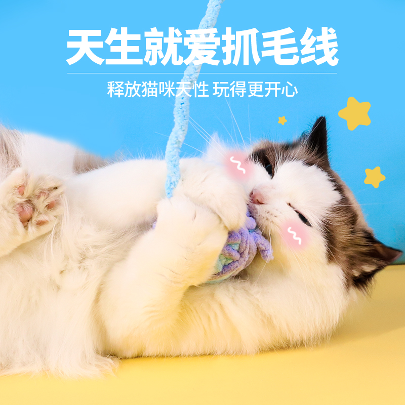 可悬挂猫玩具自嗨解闷毛线球幼猫逗猫棒耐咬宠物猫咪球类用品大全