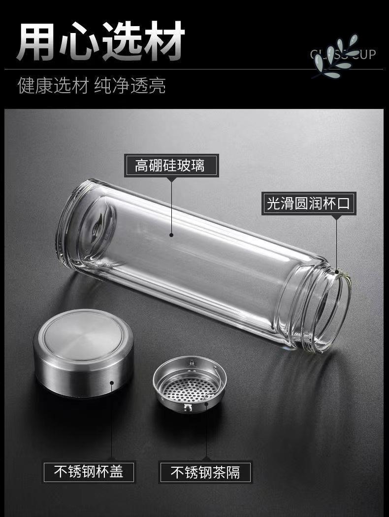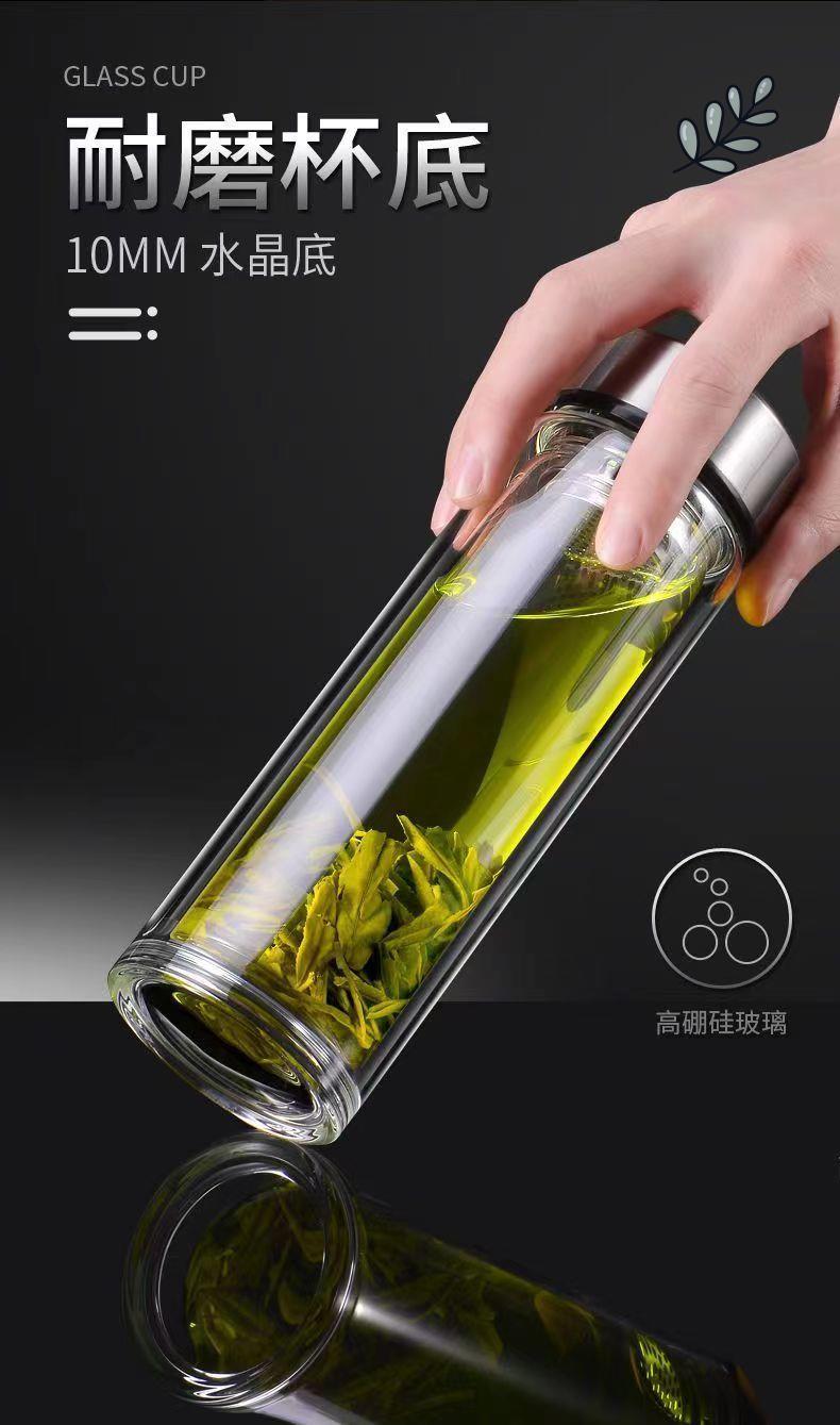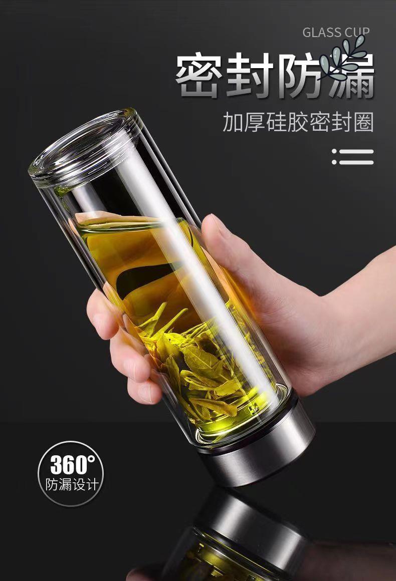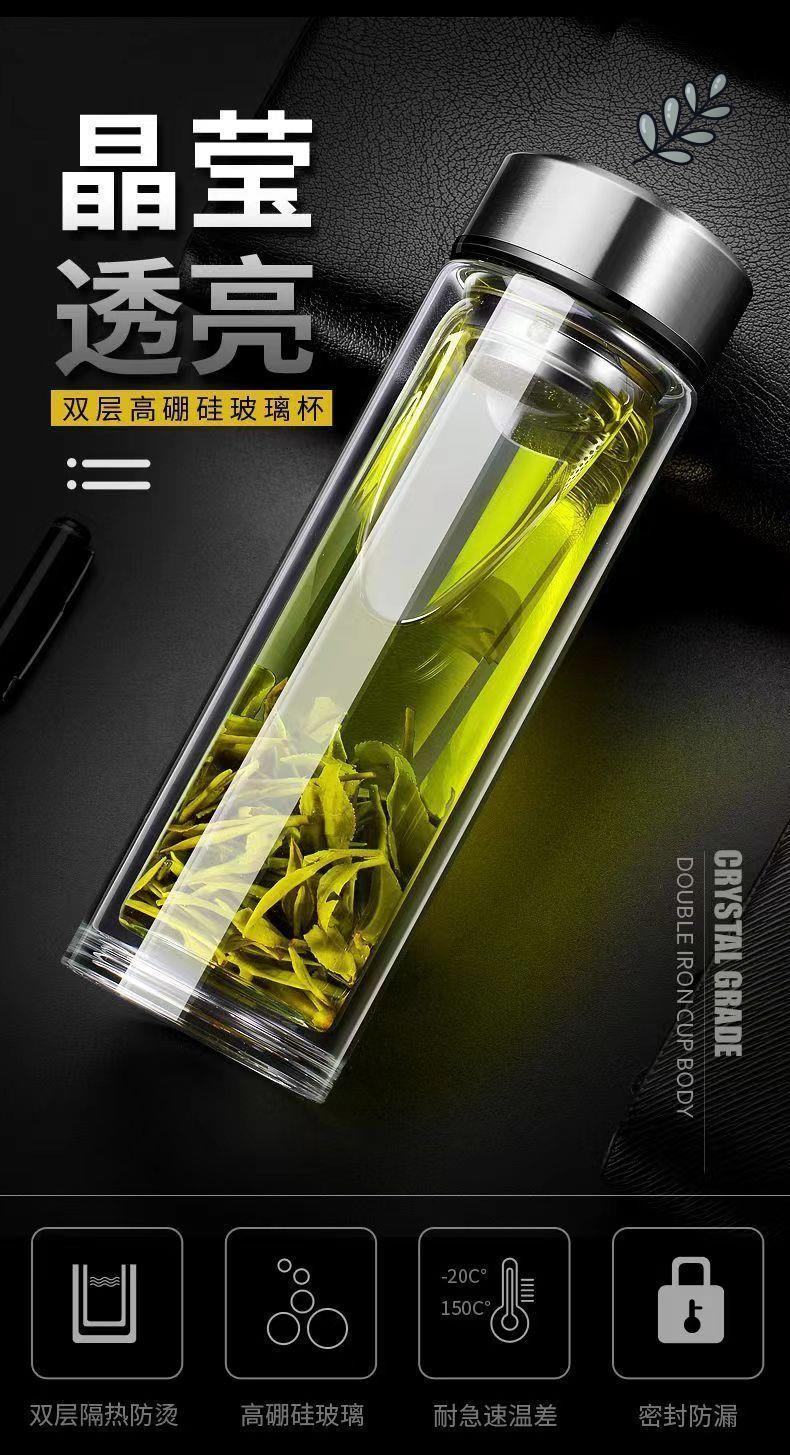 高硼双层硅玻璃杯大号套装防爆男女随手出差过滤泡茶双层车载水杯