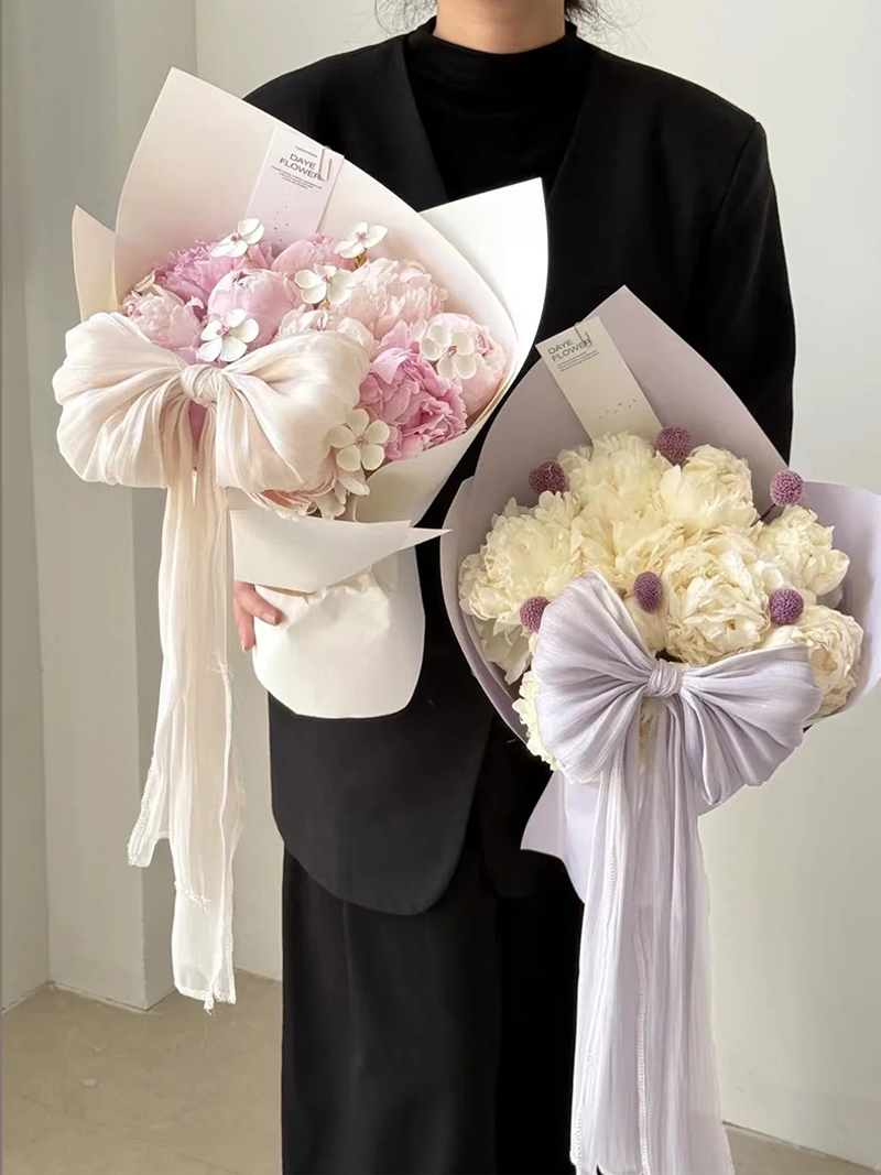 520情人节高级感法式珠光雪缎布料鲜花花束diy蝴蝶结装饰花艺材料