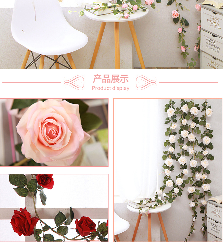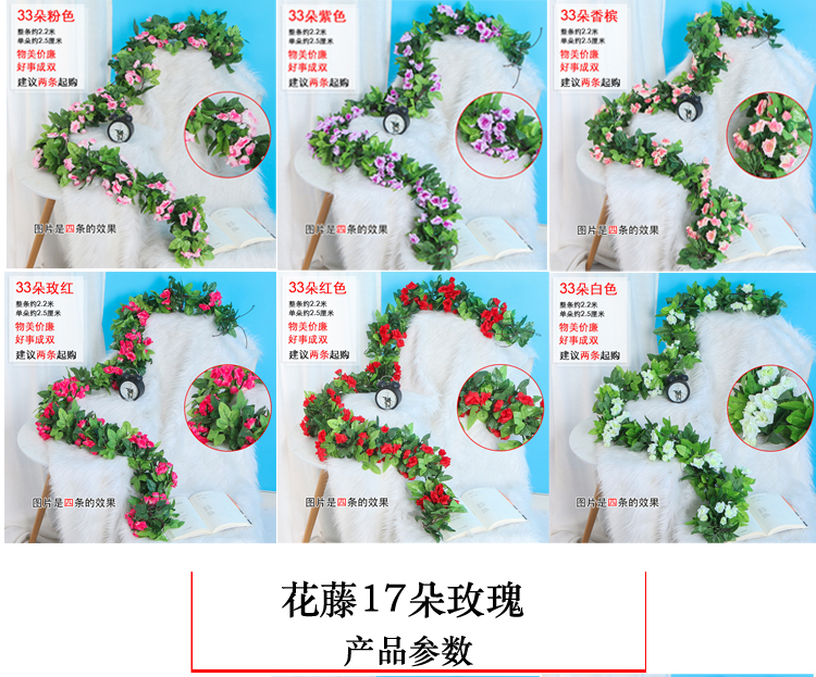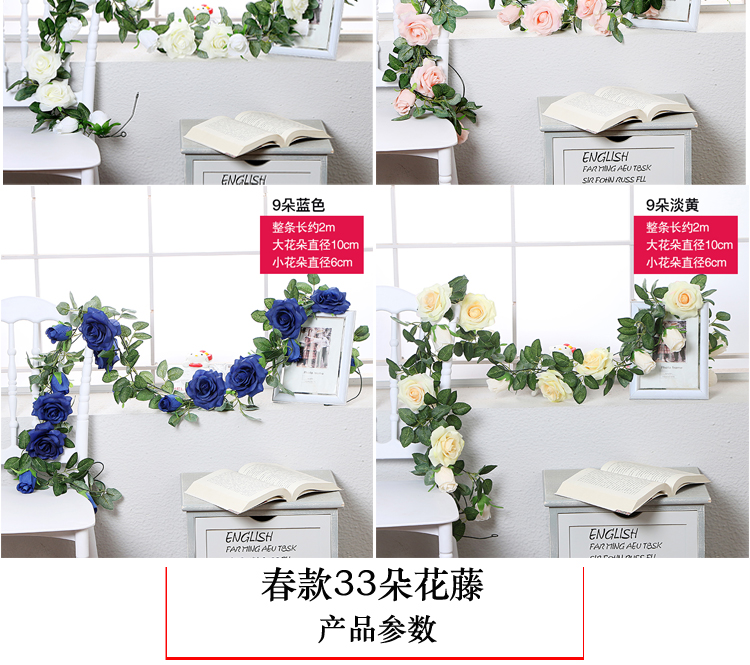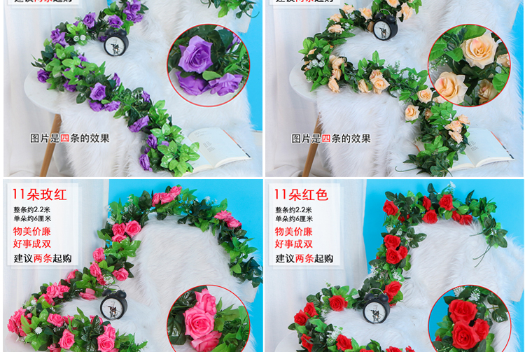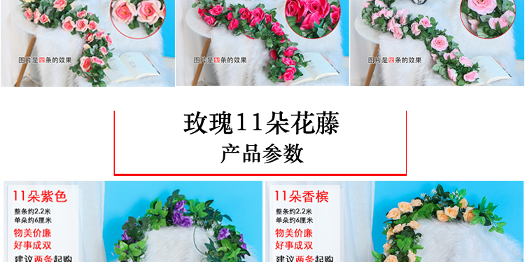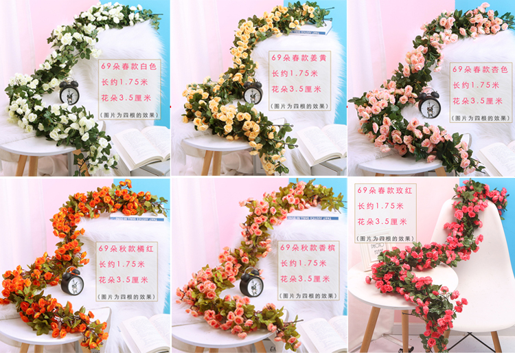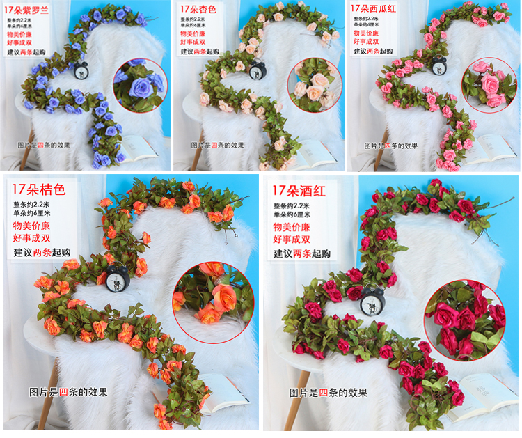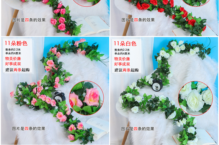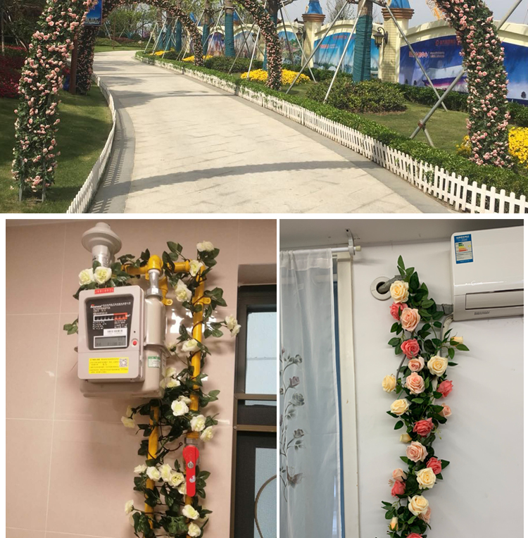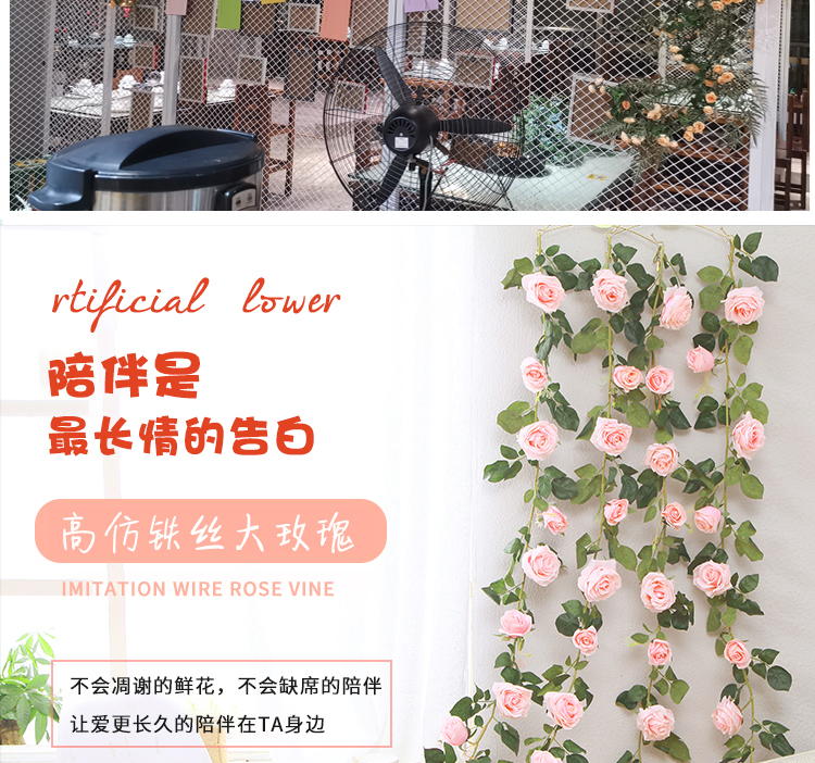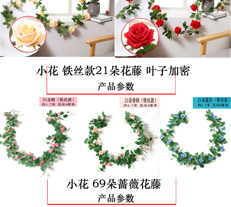 仿真玫瑰假花藤条吊篮秋千拱门装饰假花空调管道遮丑装饰塑料花藤