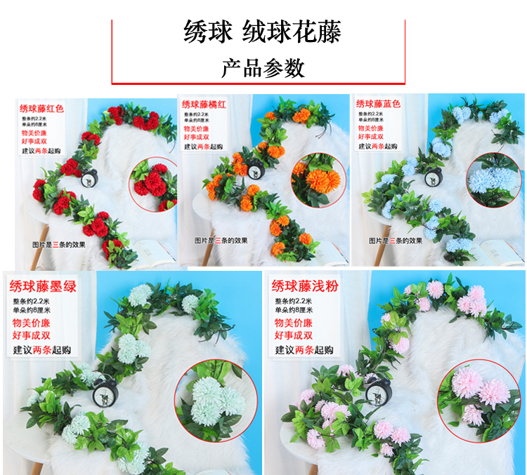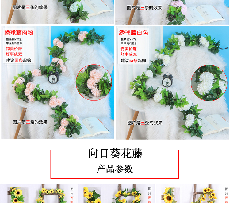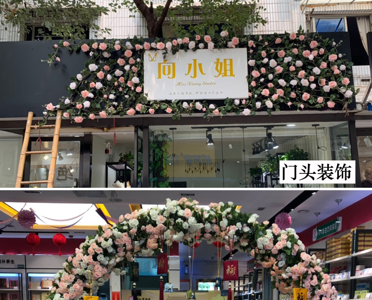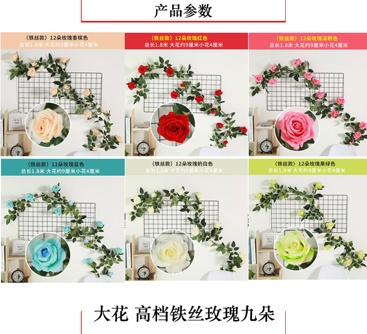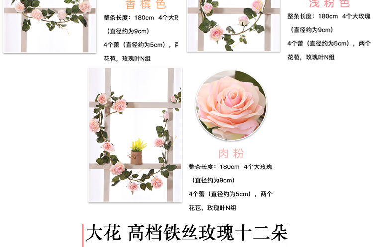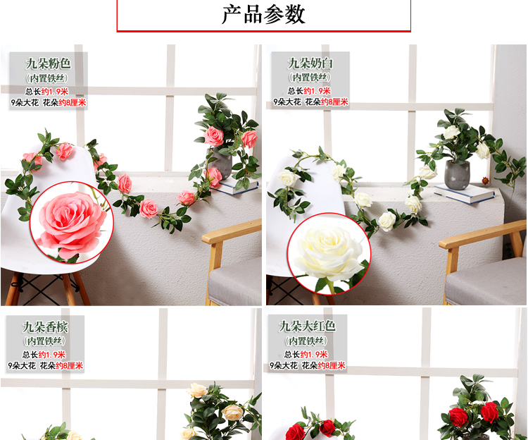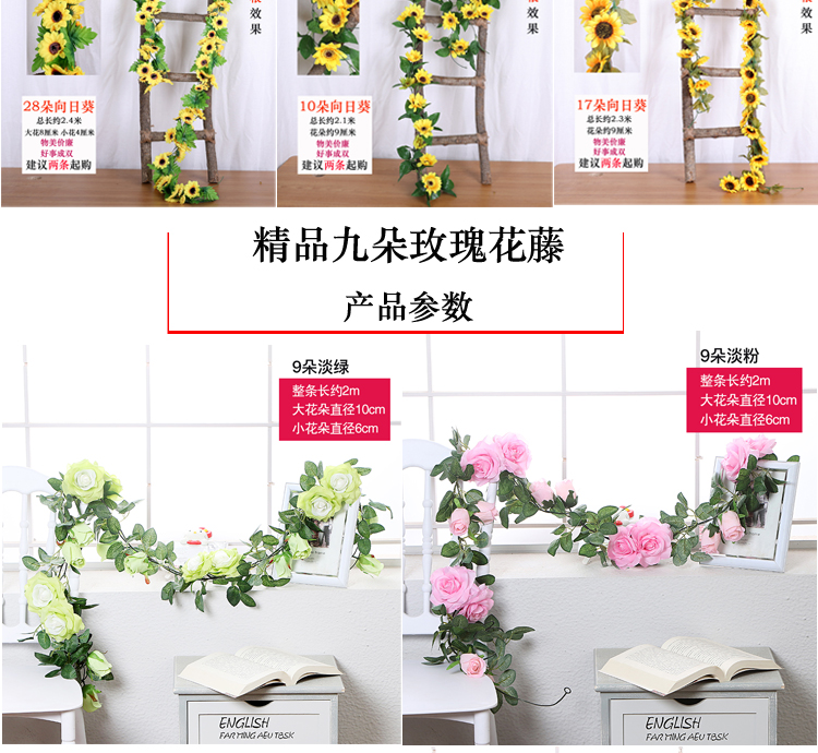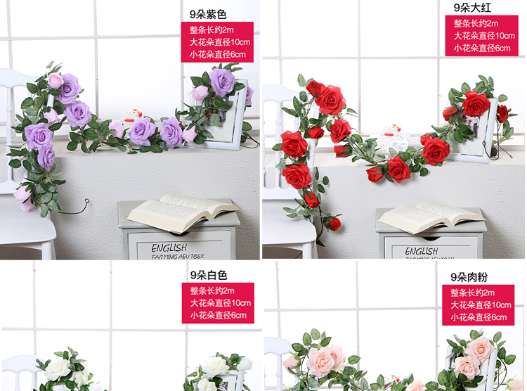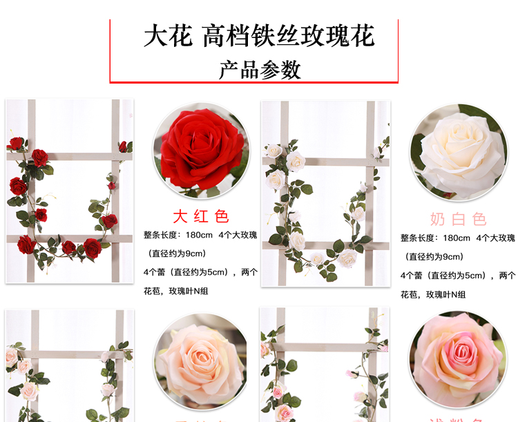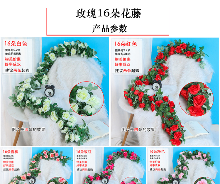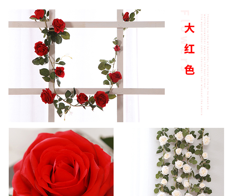 仿真玫瑰假花藤条吊篮秋千拱门装饰假花空调管道遮丑装饰塑料花藤