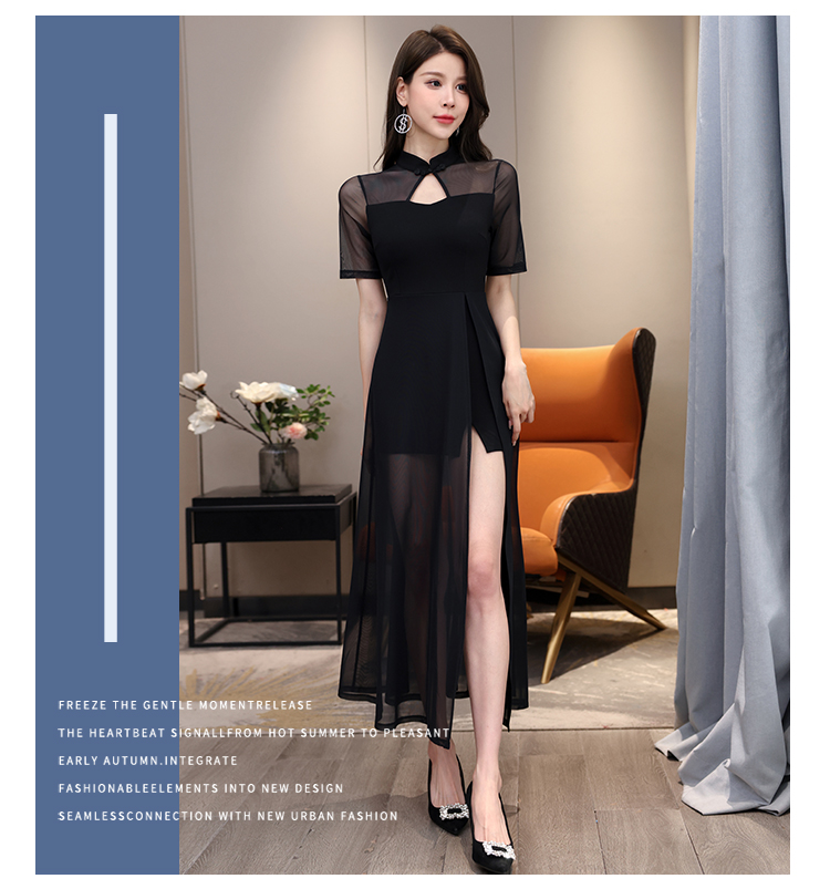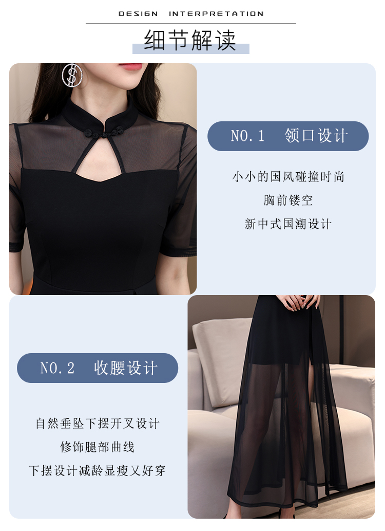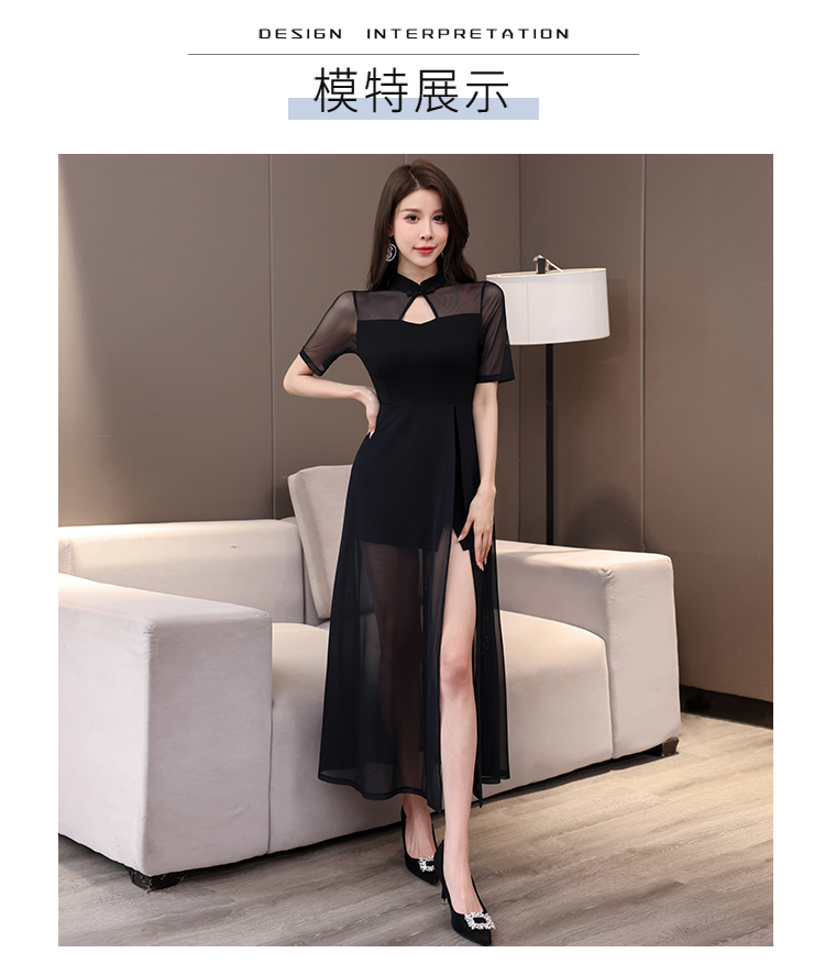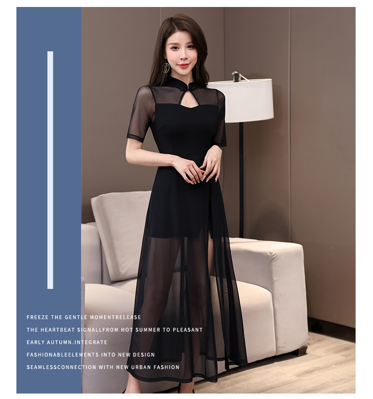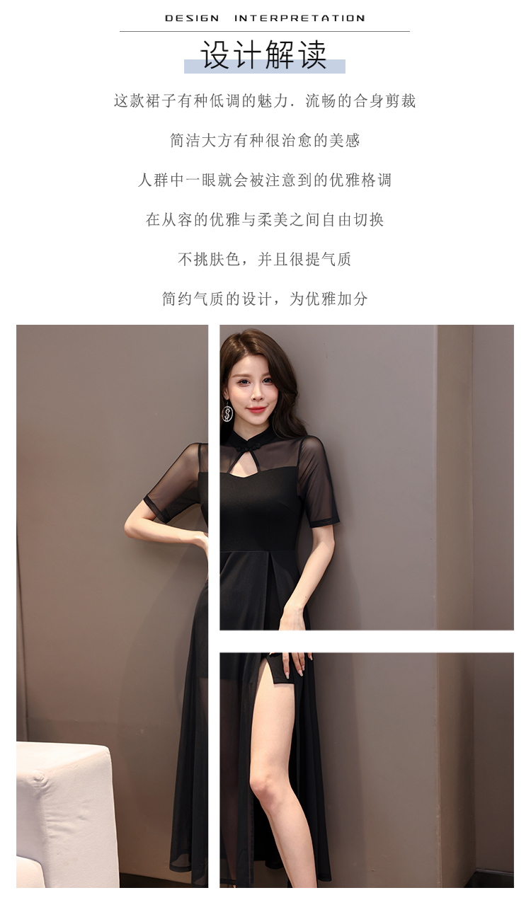 桑拿洗浴按摩spa沐足疗技师工作服气质旗袍长款长裙性感晚礼服女