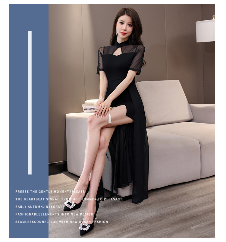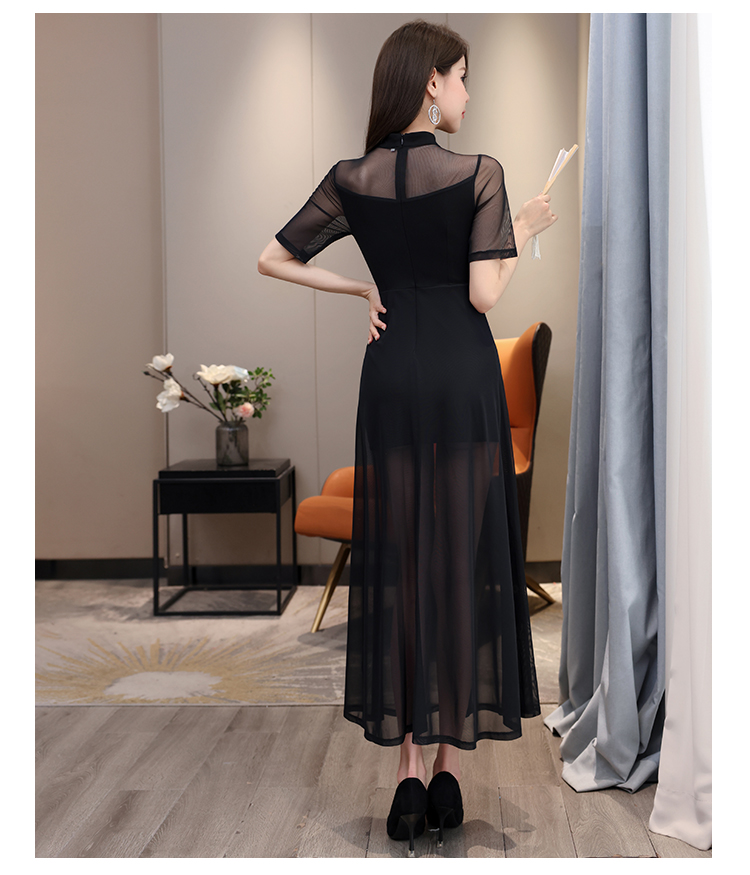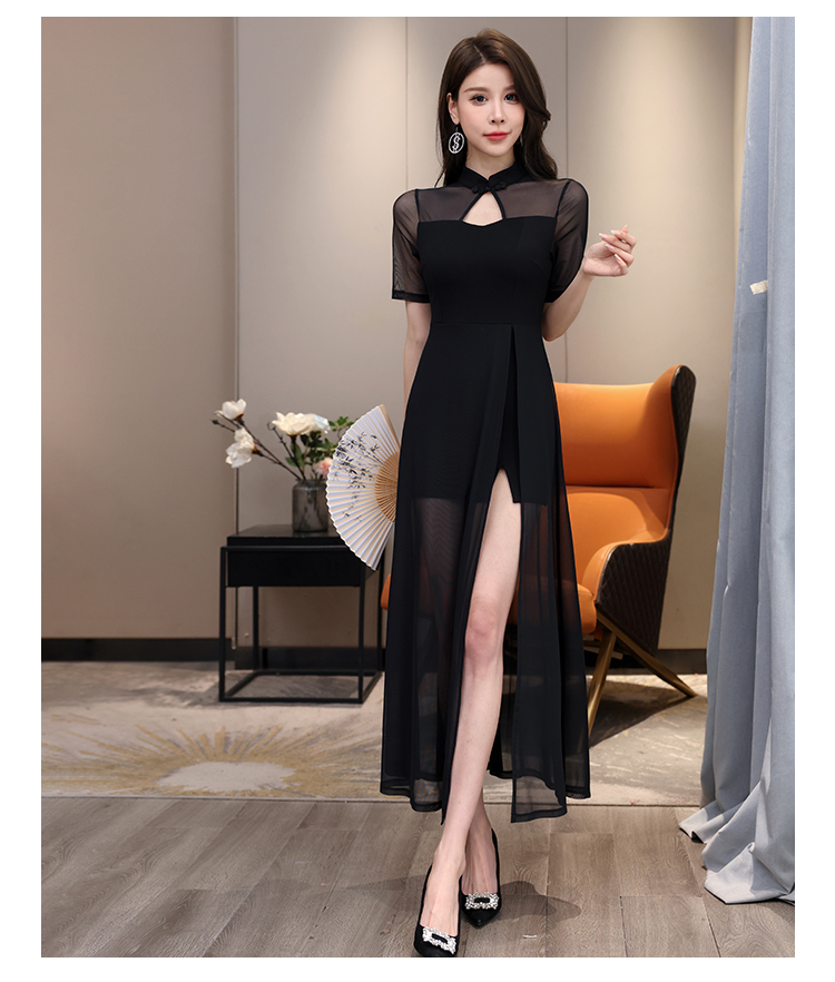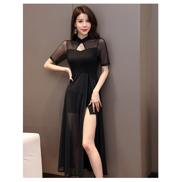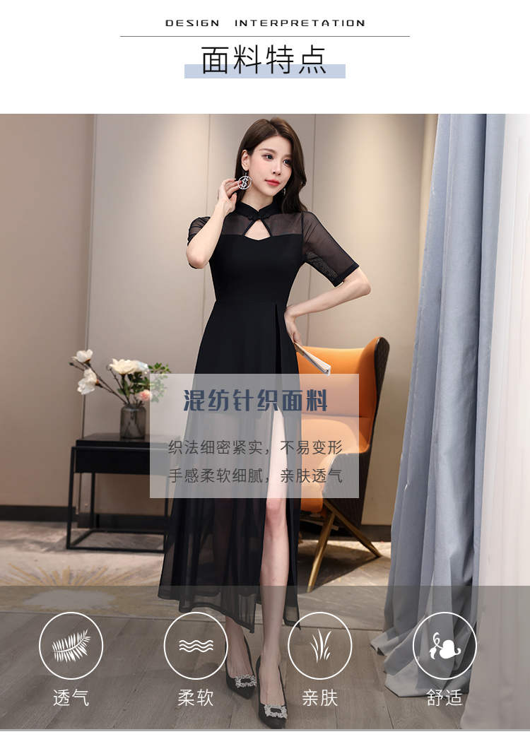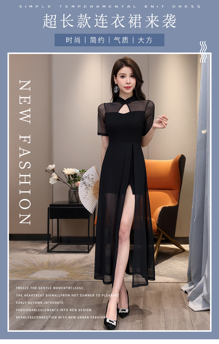 桑拿洗浴按摩spa沐足疗技师工作服气质旗袍长款长裙性感晚礼服女