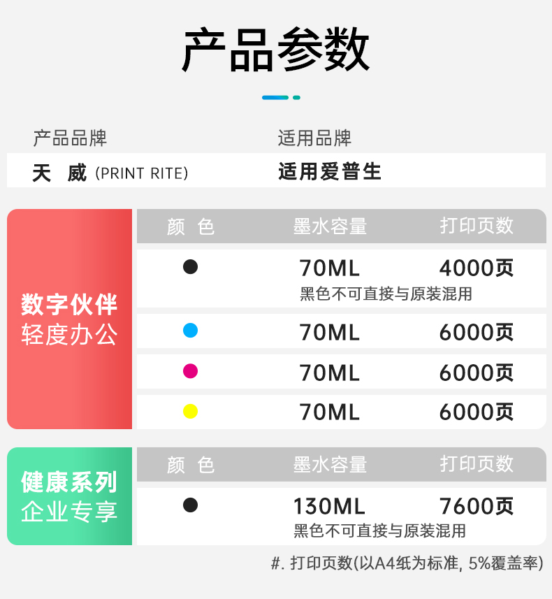 天威适用爱普生002墨水L4158 L4168 L6168 L6178 L4263 L4166 L4266 L4169 L6279 L4269 L4268连供打印机墨水